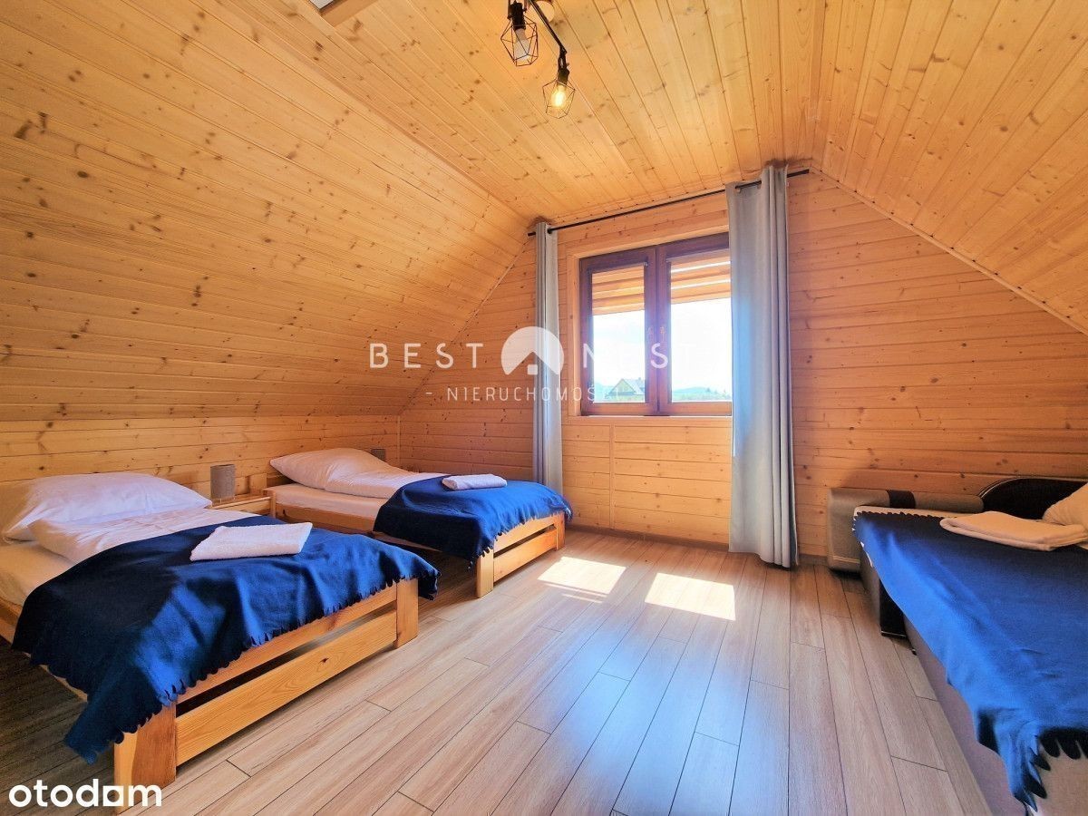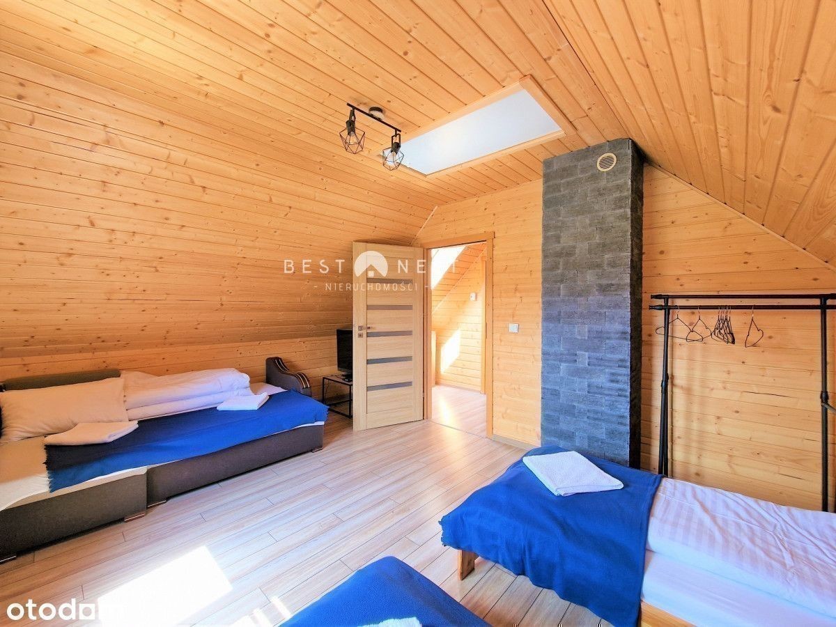 Tylko w Best Nest Mamy przyjemność zaprezentować piętrowy, wolnostojący dom z drewna o powierzchni użytkowej ok 73 m2 w miejscowości Glinka, położony na pięknej, dużej, widokowej działce o powierzchni 2136m2 na szczycie góry Smereków Wielki. Na ogrodzie mamy dostęp do jacuzzi, huśtawki oraz paleniska. Ze względu na powierzchnię działki, istnieje możliwość wybudowania dodatkowych obiektów. W sierpniu 2023 roku, została wyszlifowana i zaimpregnowana elewacja całego budynku, oraz wymieniona kabina prysznicowa. Salon z kominkiem i podwójną rozkładaną sofą, Jadalnia Kuchnia Łazienka Pokój 4 osobowy - 2 pojedyncze łóżka, 1 podwójna, rozkładana sofa Pokój 3 osobowy - 1 podwójne łóżko małżeńskie, 1 łóżko pojedyncze + wyjście na balkon Prąd, woda ze studni głębinowej, szambo Fotowoltaika 7,9kW Piec na pelet oraz kaloryfery elektryczne Jeśli zainteresowała Cię ta oferta to zapraszamy do kontaktu oraz na prezentację. Bierzemy odpowiedzialność za bezpieczeństwo transakcji, doradzamy, pomagamy w załatwianiu wszelkich formalności z zakupem nieruchomości. Skontaktujemy Państwa z ekspertem finansowym, który pomoże wybrać najkorzystniejszy kredyt hipoteczny. Niniejsze ogłoszenie pełni funkcję informacyjną i nie stanowi oferty handlowej w rozumieniu przepisów Kodeksu Cywilnego w myśl art. 66, paragraf 1.