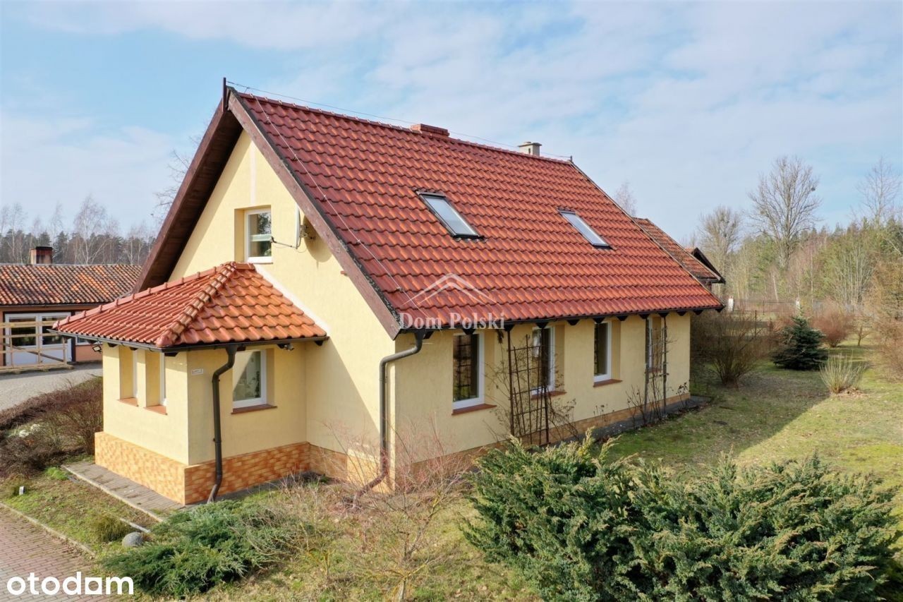Na sprzedaż urokliwy dom o powierzchni użytkowej około 121 m2, położony na Mazurach "Garbatych" w miejscowości Możne, gmina Olecko - jedynie 900 metrów od Jeziora Oleckiego Wielkiego. Dom posadowiony jest na dużej działce o powierzchni 7531 m2, posesja zabudowana jest również zespołem budynków przeznaczonych do prowadzenia działalności gospodarczej. Dom jednorodzinny, wybudowany z czerwonej cegły w 1930 roku, ocieplony, podpiwniczony. Dach dwuspadowy, pokryty nową dachówką. Budynek ogrzewany jest piecem C.O. na pellet z podajnikiem. Dom jest czysty i zadbany, nie wymaga wkładu finansowego, gotowy do zamieszkania. Budynek jest w dobrym stanie technicznym, przeszedł kapitalny remont. Wszystkie okna zostały wymienione w lutym 2024 na nowe trzy szybowe PCV. Podłogi w pokojach wyłożone są panelami, w pozostałych pomieszczeniach terakotą. Schody wykonane zostały z drewna bukowego oraz dębowego. Dom jest częściowo podpiwniczony składa się z parteru oraz poddasza. W piwnicy budynku mieści się kotłownia oraz spiżarnia. Zamontowany jest filtr uzdatniający wodę. Na parterze znajduje się przestronny salon (29 m2), przedpokój (15,5 m2), łazienka (7 m2), WC (1 m2), kuchnia (20 m2) oraz pokój (5,5 m2). Na poddaszu znajdują się dwa duże pokoje (25 m2, 25 m2). Obok domu znajdują się budynki produkcyjno-usługowe z pomieszczeniem biurowym o łącznej powierzchni użytkowej 738 m2. Budynki można wykorzystać w do prowadzenia działalności gospodarczej ( handel, usługi, produkcja, magazyn). Można je również przekształcić na funkcję agroturystyczną lub mieszkalną. Do budynków jest swobodny dojazd dla samochodów ciężarowych. Działka o powierzchni 7531 m2 jest w całości ogrodzona i zagospodarowana. Na działce znajduje się mały sad, istnieje możliwość zabudowy działki kolejnymi budynkami. Kolejnym atutem jest dojazd do działki drogą asfaltową. Nieruchomość zlokalizowana jest w cichej, spokojnej mazurskiej wsi - Możne. Jest to ciekawe miejsce do zamieszkania i cieszenia się urokami wsi, bliskością jeziora Oleckie Wielkie, lasami, punktami widokowymi, szlakami pieszymi oraz rowerowymi. W okolicy jest wiele terenów zielonych, które zachęcają do spędzania aktywnego czasu na świeżym powietrzu. Odległość do najbliższej plaży Jeziora Oleckie Wielkie wynosi jedynie 900 m, odległość do Olecka zaledwie 4 km. Media: energia elektryczna, własna studnia głębinowa, przydomowa oczyszczalnia ścieków. Istnieje możliwość podłączenia do sieci wodociągowej oraz kanalizacyjnej Kontakt - Wojciech Zackiewicz tel.