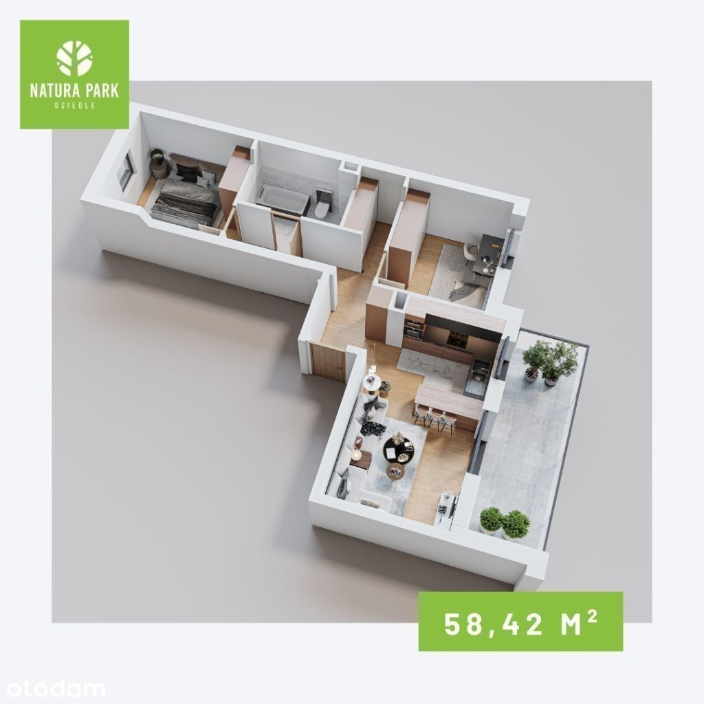 Biuro Stoprocent Nieruchomości prezentuje: wyłącznie w naszej ofercie duże, trzypokojowe mieszkanie o powierzchni 55,25 m2 z balkonem, mieszczącą się na parterze niskiego, czteropiętrowego bloku z windą. Nieruchomość znajduje się na nowo powstającym osiedlu przy ul. Staroniwskiej w Rzeszowie. Mieszkanie jest bardzo funkcjonalne i dobrze doświetlone. W kuchni jest zamontowane okno. - przedpokój: 9,09 m2, - łazienka: 4,25 m2, - sypialnia: 8,84 m2, - sypialnia: 7,79 m2 - salon z aneksem: 25,28 m2, + balkon: 8,39 m2. ul. Staroniwska, osiedle zlokalizowane na obrzeżach miasta oferuje cichą, spokojną i zieloną okolicę idealną dla rodzin i osób szukających wytchnienia od miejskiego zgiełku. Dzięki doskonałej komunikacji mieszkańcy mają łatwy dostęp do centrum Rzeszowa, a także. nowoczesny, bardzo przemyślany projekt, charakteryzującym się minimalistycznymi liniami i eleganckimi fasadami. Zastosowano energooszczędne rozwiązania w postaci paneli fotowoltaicznych, oraz miejsc do ładowania samochodów i rowerów elektrycznych. Osiedle otoczone zielenią z doskonałą infrastrukturą. Cicha, spokojna okolica. Lokale usługowe na osiedlu. Blisko m.in: sklepy, szkoła, przedszkole, przychodnia lekarska, Kościół oraz przystanek MPK. * rowerowania w każdym bloku, * komórki lokatorskie na piętrach oraz w hali garażowej, * plac zabaw na osiedlu, * altana grillowa, * winda osobowa. * komórki lokatorskiej: 3 000 zł/m2 (powierzchnia od 2,45 m2 do 5,48 m2), * miejsca postojowego naziemnego: 15 000 zł, * miejsca w hali garażowej: 30 000 zł. II kwartał 2026. W ofercie dostępne również Zdjęcia w ogłoszeniu mają charakter poglądowy i dotyczą wcześniejszego etapu inwestycji (blok numer 1, 2). Specjalista ds.Nieruchomości Stoprocent Nieruchomości 35-005 Rzeszów Pl. Jana Kilińskiego 6