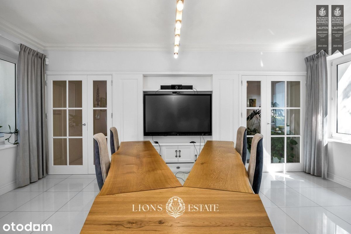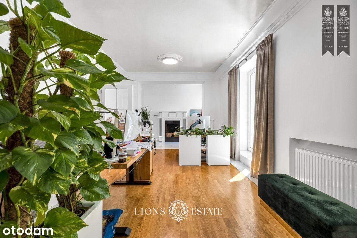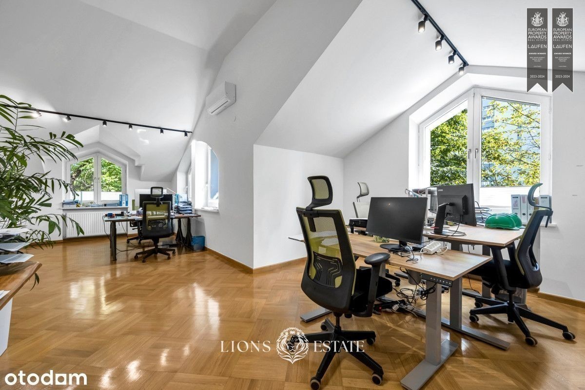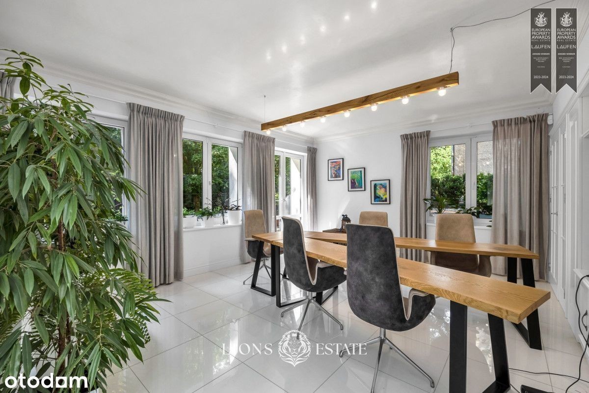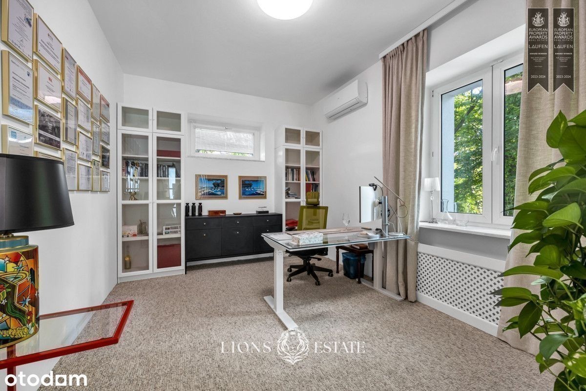 Mamy przyjemność zaprezentować Państwu dom położony pośród starodrzewia na mokotowskim Służewiu, 5 min pieszo od stacji metra Służew. Duża powierzchnia domu, dogodna lokalizacja sprawiają oraz przystosowanie do działalności biurowej sprawiają, że jest to idealne miejsce na siedzibę firmy, gabinety, czy inne zastosowania komercyjne. Prezentowany dom ma 4 kondygnacje, a jego powierzchnia wynosi aż 434 m2. Dom został wykończony w bardzo wysokim standardzie, a w 2022 roku przeszedł gruntowny remont elewacji zewnętrznej, części wnętrz oraz zagospodarowania ogrodu. Najbardziej charakterystyczne atuty tego domu to obszerna łazienka z sauną, obszerne tarasy na dwóch kondygnacjach, otoczona zielenią oranżeria oraz podjazd na 6 samochodów. Ponadto dom jest podpiwniczony, wyposażony w instalacje klimatyzacji i jednostanowiskowy garaż. Aktualnie dom pełni funkcje biurową i jest przystosowany do prowadzenia działalności przez małe i średnie firmy. Dodatkowe udogodnienia w tym zakresie to centrala teletechniczna w piwnicy, rozprowadzona po całym domu instalacji Ethernet, instalacja alarmowa oraz monitoring. Dom znajduje się na mokotowskim Służewiu, co zapewnia doskonałe połączenie z centrum Warszawy, a jednocześnie jest zlokalizowany w cichej i spokojnej okolicy, otoczonej zielenią. Dzięki kilku miejscom parkingowym nie ma problemu z parkowaniem na ulicy.