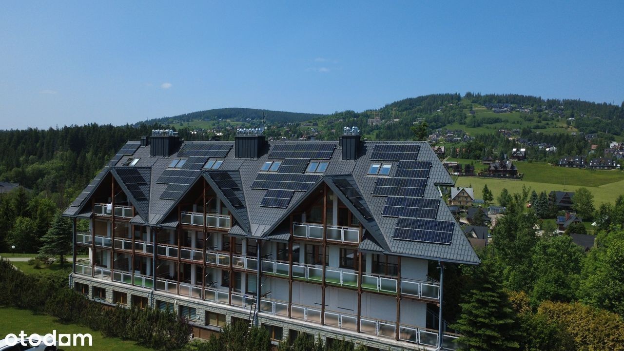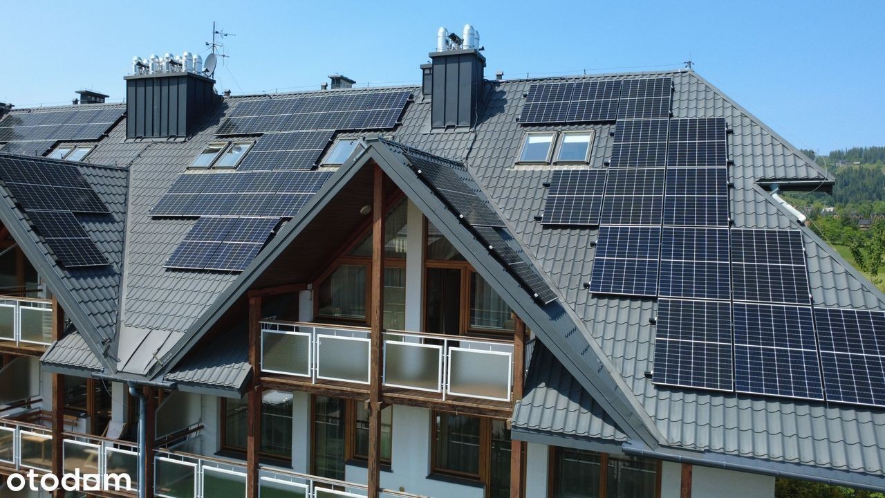 Agencja Nieruchomości Unlimited Sky prezentuje na sprzedaż wyjątkowy, dwupoziomowy apartament zlokalizowany w kompleksie "Viva Maria", położonym w zacisznej części Zakopanego - przy ul. Przewodnika Józefa Krzeptowskiego 42B. Nieruchomość zachwyca panoramicznym widokiem na Tatry, zapewniając komfort i spokój w otoczeniu górskiej przyrody.
