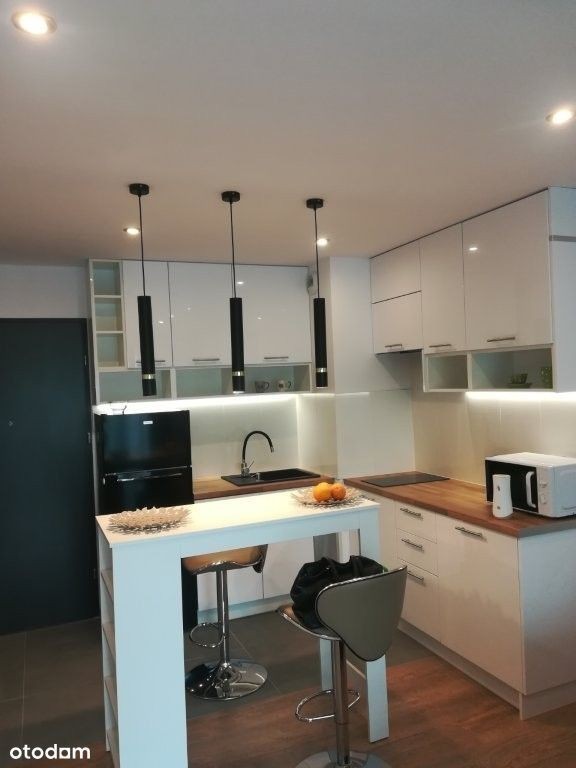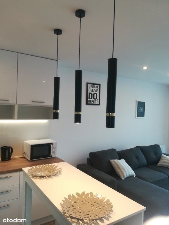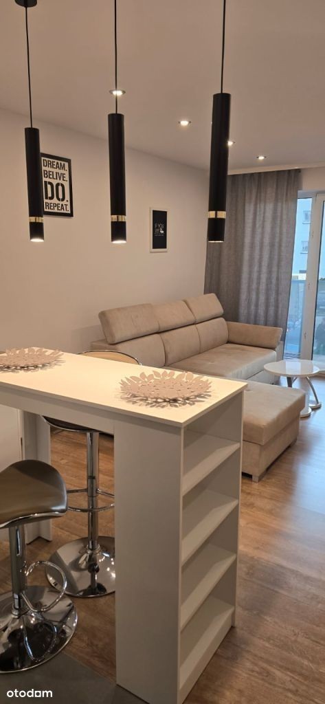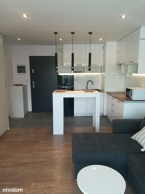 Oferujemy do wynajęcia przytulny apartament dla singla lub pary. W skład mieszkania wchodzi kuchnia otwarta na pokój z bezpośrednim wyjściem na taras, łazienki i przedpokoju. Mieszkanie jest na pierwszym piętrze w nowoczesnym apartamentowcu Jest winda. Lokal jest umeblowany i wyposażony w niezbędne przedmioty. Za dodatkową opłatą miejsce garażowe w podziemiu. Cena najmu 1600 zł plus opłaty do wspólnoty plus prąd i ewentualnie garaż. Obowiązuje NAJEM OKAZJONALNY! Kaucja 3000 zł. Zapraszam zainteresowanych Elżbieta Dubrowska