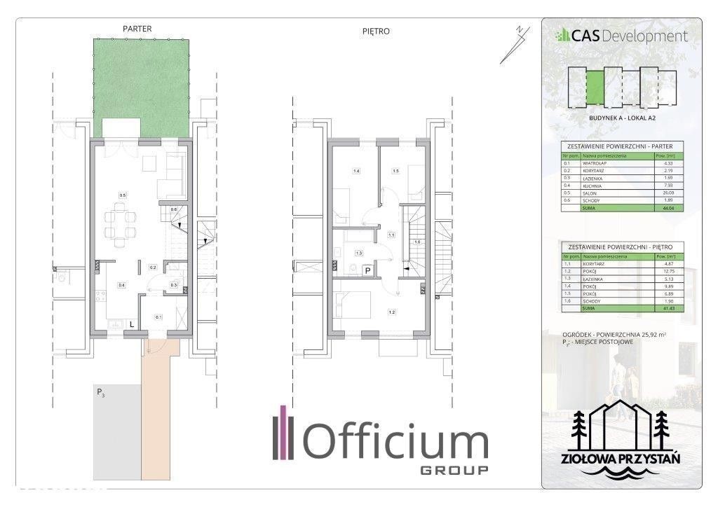 Nowa niższa cena tylko d *********r. Na sprzedaż środkowy segment w inwestycji deweloperskiej „Ziołowa Przystań” - zlokalizowanej w Żyrardowie obok Zalewu Żyrardowskiego. Przedmiotem sprzedaży jest skrajny segment o łącznej powierzchni użytkowej: 85,47 m2, wraz z przyległym ogródkiem o powierzchni 25,92 m2 jednym miejscem postojowym (naziemnym -przed budynkiem). Układ pomieszczeń: Parter ( 44,04 m²) : wiatrołap, korytarz, kuchnia, łazienka, salon, schody; Piętro (41,43 m²) : 3 pokoje, łazienka, korytarz schody. Dodatkowo możliwość wydzielenia miejsca do przechowywania na strychu. Dane techniczne: -ściany zewnętrzne (pustak gazobetonowy i tynk gipsowy, styropian 20cm, tynk sylikonowy); - ogrzewanie podłogowe; - okna PCV (trzy szybowe - sześciokomorowe) - pompa ciepła wraz z przyłączami pod instalację fotowoltaiczną; - dach - blacha płaska na rąbek stojąca. Budynek o ciekawej i nowoczesnej architekturze zaprojektowany dla 4-5 osobowej rodziny, oferuje przestronne i funkcjonalne wnętrza, w tym aż trzy komfortowe sypialnie na piętrze. Jasne, dobrze doświetlone pomieszczenia z dużymi oknami tworzącymi harmonijne połączenie nowoczesności z bliskością natury. Oddanie do użytkowania planowane na III kwartał 2026 roku. Budynek położony na nowoprojektowanym kameralnym osiedlu „Ziołowa Przystań” składającym się z sześciu domów w zabudowie szeregowej, położony w malowniczej okolicy Żyrardowa, blisko Zalewu Żyrardowskiego, ścieżki rowerowej oraz nowej drewnianej ścieżki przyrodniczej biegnącej wzdłuż rzeki Pisi Gągoliny. W pobliżu: przystanek autobusowy (linie: 5,10) z bezpośrednim dojazdem do dworca PKP, stacja rowerowa, kąpielisko miejskie, sklepy i punkty usługowe. Zapraszam na prezentację i zapoznanie się ze szczegółami oferty. Niniejsze ogłoszenie ma charakter wyłącznie informacyjny i nie stanowi oferty handlowej w rozumieniu art. 66 §1 Kodeksu cywilnego.