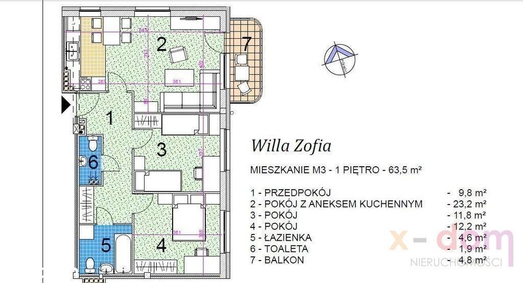 Na sprzedaż 3-pokojowe mieszkanie o powierzchni 63.7 m2 usytuowane na 1 piętrze nowoczesnego apartamentowca Willa Zofia. UKŁAD: - salon - oddzielna kuchnia otwarta na salon - sypialnia - pokój - łazienka - osobna toaleta - komunikacja : - Stan deweloperski -> idealne do własnej aranżacji ! - Ogrzewanie -> dwufunkcyjny piec gazowy z zamknięta komorą spalania - Ogrzewanie podłogowe mieszane - Możliwość podłączenia fotowoltaiki na życzenie klienta - Dwustronna ekspozycja okien -> wschód/północ - Parking -> miejsce parkingowe w hali garażowej (+50 000 zł) lub naziemne (+ 15 000 zł) - Komórka lokatorska (+ 10 000 zł) Willa Zofia to kameralna inwestycja, w której znajduje się jedynie 9 mieszkań. Mieszkania zostały zaprojektowane w sposób zapewniający dobre nasłonecznienie i przewietrzanie. Rozplanowano je tak, aby umożliwić mieszkańcom ich aranżację w sposób maksymalnie wykorzystujący dostępną przestrzeń. Każde mieszkanie posiadać będzie balkon lub loggię, które usytuowano w sposób zapewniający kameralne odosobnienie. Wjazd na teren posesji zamknięty będzie szlabanem. Inwestycja zlokalizowana jest przy zbiegu ulic Ludwiki Wawrzyńskiej i Kujawskiej, w cichej i spokojnej okolicy. W otoczeniu Willi Zofia nie ma budynków wysokich i innych obiektów przesłaniających ani budynków o charakterze przemysłowym. Ulice sąsiadujące z Willą Zofia są ulicami osiedlowymi o małym natężeniu ruchu kołowego. W pobliżu dostępna pełna infrastruktura usługowo-handlowa (sklepy spożywcze, supermarkety, apteka, poczta, przychodnia, siłownia, pływalnia, paczkomat) oraz placówki edukacyjne (przedszkole, szkoła podstawowa, liceum, uczelnie wyższe).