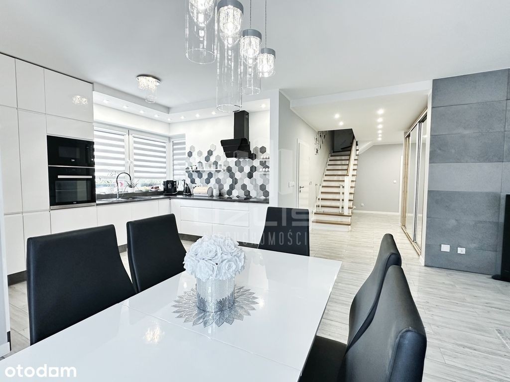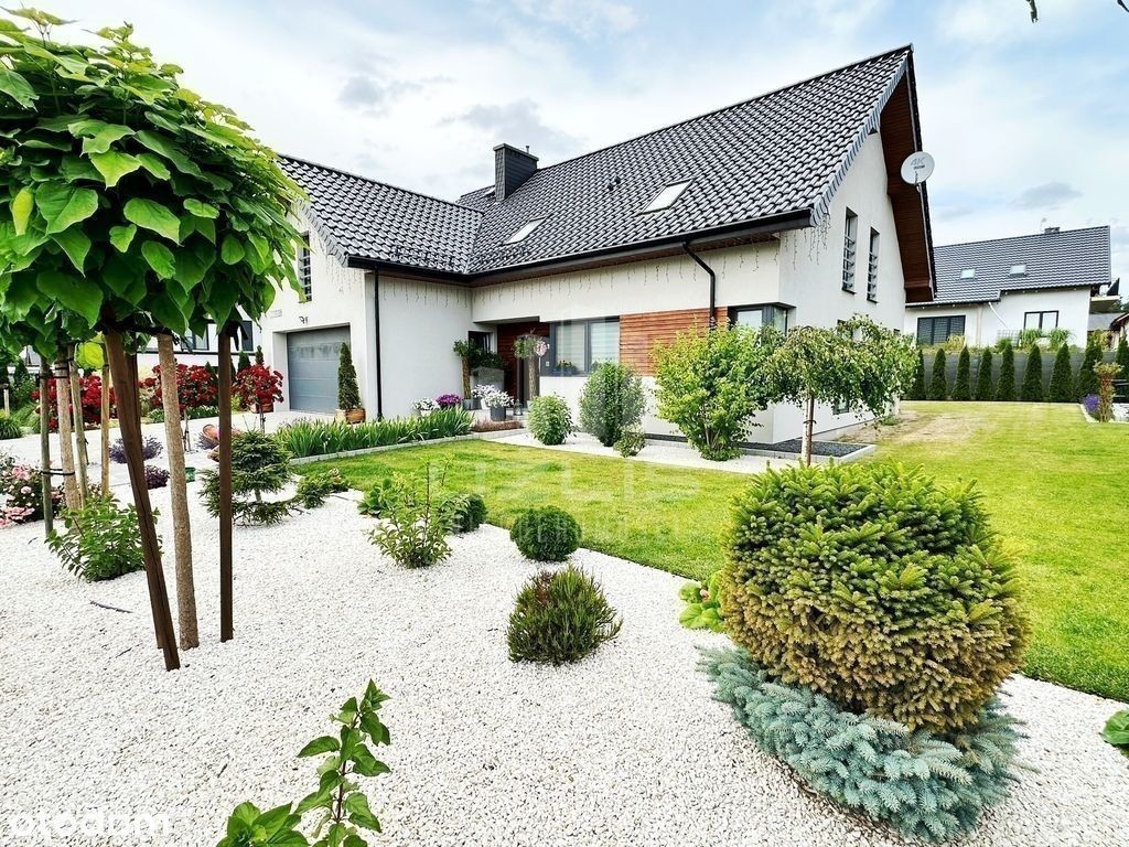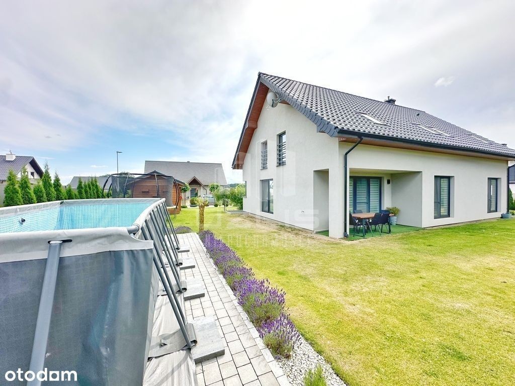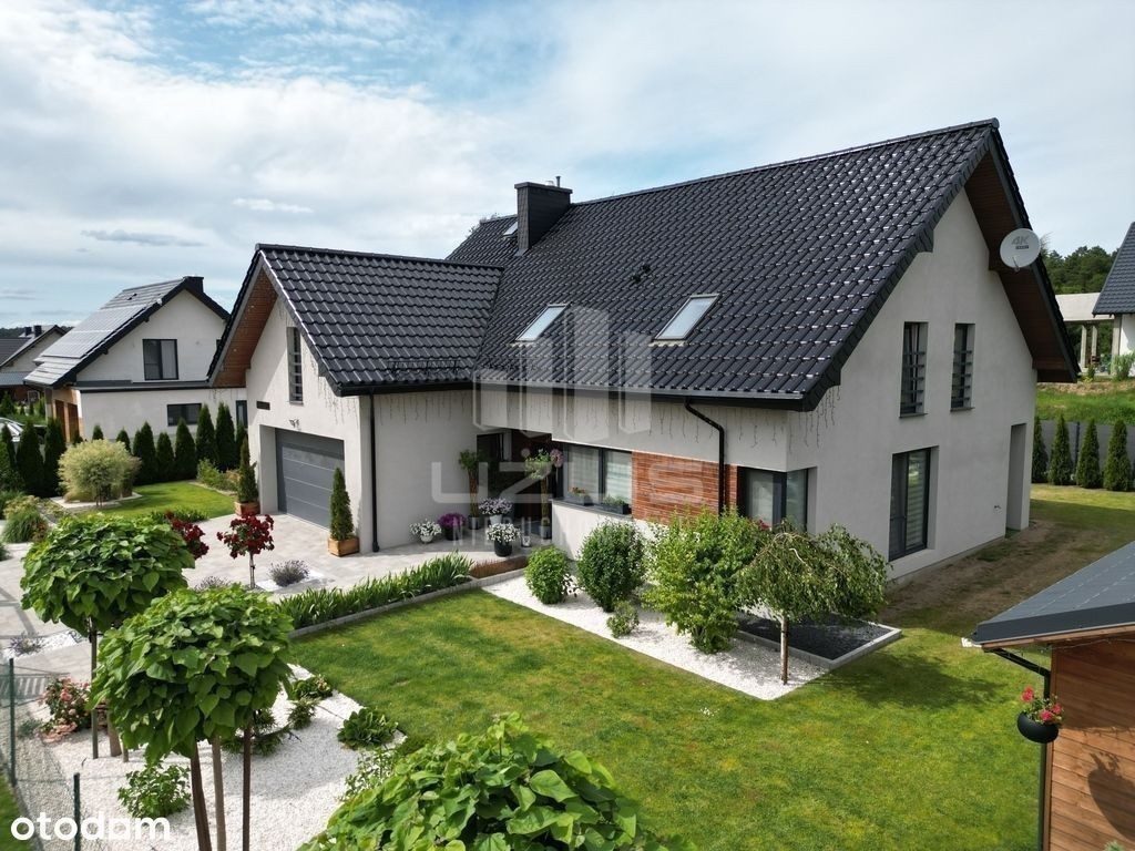 Biuro Użlis Nieruchomości ma przyjemność przedstawić Państwu dom z pięknym ogrodem ! Przedmiotem oferty jest sprzedaż domu wolnostojącego o powierzchni użytkowej 240 m2 mieszczącego się na działce o obszarze 1096 m2, w miejscowości Wielgłowy, powiat tczewski, gmina Subkowy. Budynek wolnostojący, jednorodzinny o łącznej powierzchni ok. 240 m2 (143 m2 na poziomie parteru i 100 m2 na poddaszu). Zastosowano wiele przemyślanych, ciekawych rozwiązań tworząc unikalny, nowoczesny charakter nieruchomości. Bryła budynku zwraca uwagę oryginalną formą. Cechuje go dbałość o każdy szczegół oraz nowoczesny charakter. Niezwykle funkcjonalne wnętrze z wyraźnym podziałem na strefę dzienną i nocną. Niewątpliwym atutem tej nieruchomości jest pięknie urządzony ogród, na jego terenie wiele nasadzeń ozdobnych drzew i krzewów oraz basen. Nieruchomość otaczają tereny zielone zapewniające intymność i ciszę. Nieruchomość wybudowana w roku według gotowego projektu budowlanego o nazwie E184. Całość domu wykonana z wysokiej jakości klasy materiałów wykończeniowych. Budynek murowany z gazobetonu, ocieplony styropianem i pokryty strukturą elewacyjną. Dach kryty dachówką ceramiczną, ogrzewanie dwufunkcyjnym piecem na pelet, dodatkowo we wszystkich pomieszczeniach ogrzewanie podłogowe. Stolarka okienna 3-szybowa, wykonana z profili PCV. Okna wewnętrzne w białym kolorze, zewnętrzne antracytowym. Wjazd na posesję z drogi wewnętrznej (sprzedaż nieruchomości wraz z udziałem w drodze). Na jej terenie znajdują się liczne nasadzenia ozdobnych drzew oraz krzewów ozdobnych. Działka wyposażona w automatyczne systemy nawadniania terenu. Ciągi komunikacyjne oraz miejsce na basen wyłożone kostką brukową. Dodatkowo na terenie posesji znajduje się drewniany budynek gospodarczy, szklarnia oraz warzywniak. Dostępne media: - prąd, -woda - zmiękczacz i filtr do wody w kotłowni, - szambo. o powierzchni użytkowej 143 m2 - składa się z salonu z aneksem kuchennym wraz z jadalnią oraz wyjściem na ogród, kuchni wraz z jadalnią, 2 sypialni, spiżarni, łazienki, korytarza, wiatrołapu, dwustanowiskowego garażu oraz kotłowni. Wszystkie pomieszczenia w domu są przestronne i dobrze doświetlone. Łazienka wyłożona płytkami ceramicznymi, w pozostałych pomieszczeniach na podłodze trudnościeralne panele szwedzkie. Ściany w gładzi szpachlowej i pomalowane na jasny kolor. Kuchnia w zabudowie meblowej wraz z funkcjonalnym sprzętem AGD. W jadali duży stół. o powierzchni użytkowej 100 m2 - składa się z 3 sypialni, jedna z nich posiada garderobę, łazienki do indywidualnej aranżacji, przedpokój, pralni oraz strychu. Łazienka wyłożona płytkami ceramicznymi, w pozostałych pomieszczeniach na podłodze panele szwedzkie. Ściany w gładzi szpachlowej i pomalowane. Nieruchomość 10 minut oddalona jazdy samochodem od Tczewa, 5 minut od Subkowy, 25 minut od Starogardu i 40 minut od Gdańska. na zakup nieruchomości. Wszelkie formalności załatwiamy na miejscu. Dobór do indywidualnych potrzeb klienta. Więcej informacji pod numerem telefonu: