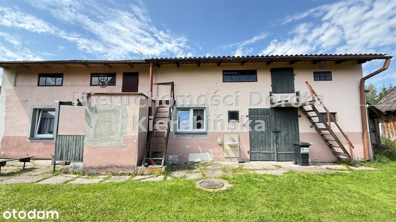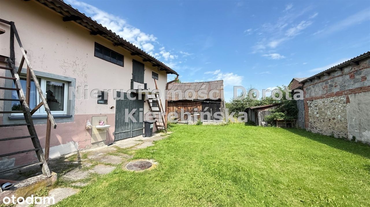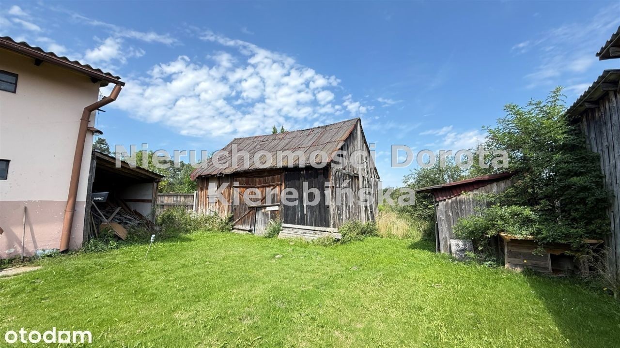 Tylko u nas ! Na sprzedaż przytulny, umeblowany dom o powierzchni 50 m² (plus ganek), położony na dużej, ogrodzonej działce o powierzchni 4358 m². Nieruchomość znajduje się w spokojnej, zielonej okolicy z szybkim dojazdem do centrum - zaledwie 8 minut drogi. Dom składa się z dwóch pokoi, kuchni, łazienki oraz ganku. Wszystkie pomieszczenia są umeblowane, a dom został częściowo wyremontowany. Na posesji znajdują się również budynki gospodarcze: garaż, stodoła, dwie komórki oraz dodatkowy domek przy ulicy, przeznaczony do rozbiórki.