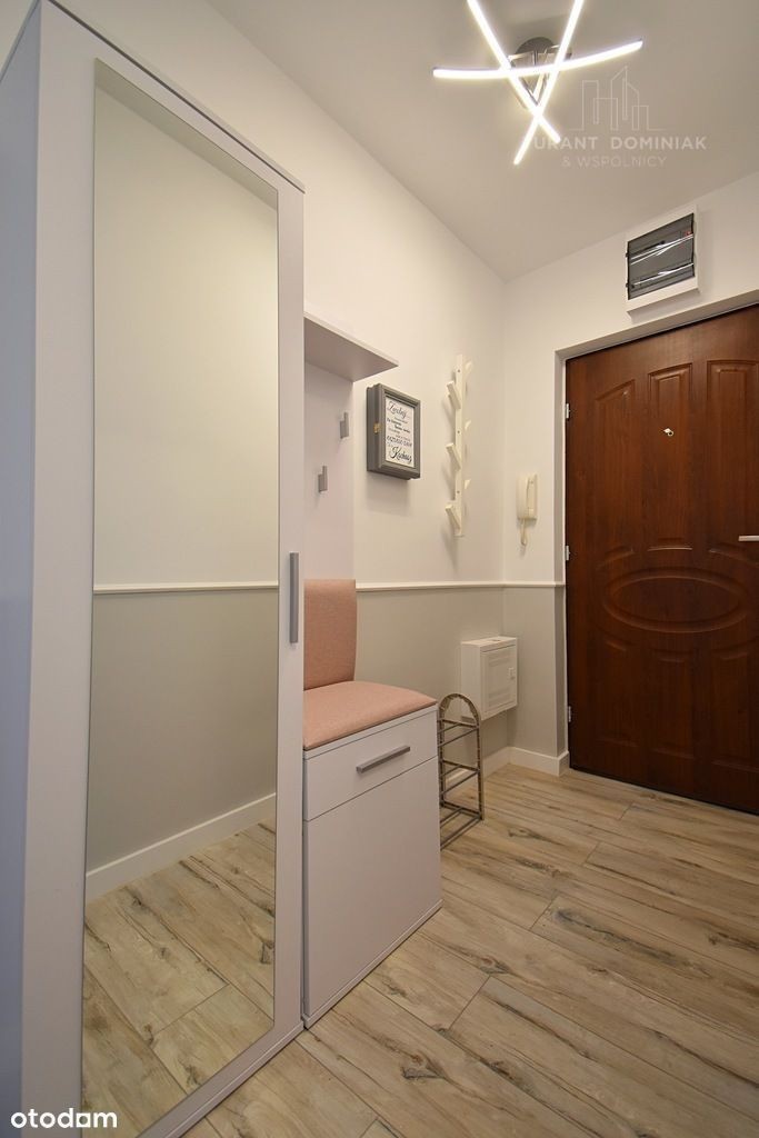 Dwupokojowe mieszkanie z balkonem po kapitalnym remoncie, położone na drugim piętrze w niskim czteropiętrowym budynku, w centrum Szczecina. Budynek, w którym znajduje się mieszkanie jest docieplony, posiada kontrolę dostępu oraz ogrodzony teren przed budynkiem. Powierzchnia użytkowa mieszkania to 44 m2 i składa się z salonu, sypialni, oddzielnej i widnej kuchni, łazienki oraz przedpokoju. W pokojach ściany gładkie i malowane na biało, na podłogach parkiet dębowy oraz panele. Łazienka w glazurze i terakocie wraz z kabiną prysznicową, umywalką, pralką i wc. W kuchni znajduje się nowoczesna zabudowa mebli wraz z sprzętem AGD takim jak: lodówka z zamrażarką, piekarnik elektryczny, płyta indukcyjna, zmywarka i okap. Dodatkowo całe widoczne umeblowanie na zdjęciach pozostaje w wynajmowanym lokalu. Ekspozycja okien z dwóch stron świata, kuchnia i sypialnia od strony północnej natomiast salon z balkonem od strony południowej. Ogrzewanie w lokalu i ciepła woda użytkowa z sieci miejskiej. Dodatkowe koszty eksploatacyjne to czynsz do spółdzielni mieszkaniowej w wysokości około 800 zł (zawiera już zaliczkę na zimną i ciepłą wodę, zaliczkę na ogrzewanie, wywóz nieczystości, opłaty administracyjne, części wspólne, fundusz remontowy) oraz energia elektryczna według indywidualnego zużycia. W budynku istnieje możliwość podłączenia usług teleinformatycznych z firmy UPC. W bliskiej odległości znajdują przystanki komunikacji miejskiej, centra handlowe, sklepy, szkoły, uniwersytety itp. Mieszkanie dostępne od 1 października. Zapraszam na prezentację.