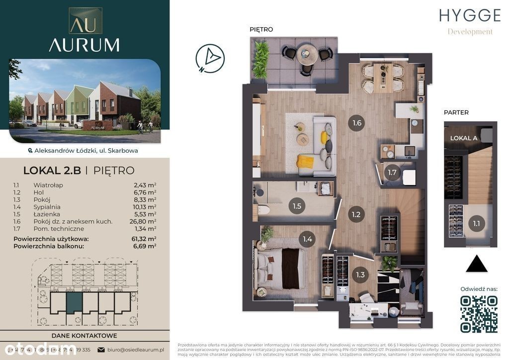 Nowe mieszkanie z przestronnym ogrodem w zielonym centrum Aleksandrowa Łódzkiego! Cenisz ciszę, zieleń i prywatność, ale nie chcesz rezygnować z miejskich wygód? To mieszkanie jest dla Ciebie! Osiedle Aurum to kameralna inwestycja - tylko- w wyjątkowej lokalizacji. Wokół lasy i łąki, a jednocześnie w kilka minut dotrzesz pieszo do wszelkich niezbędnych miejskich udogodnień jak: sklepy, szkoły, przystanki, kluby fitness czy przychodnie. Do Łodzi dojedziesz w zaledwie około 20 minut! - idealny na relaks, rodzinne spotkania czy zabawę dzieci. Osiedle Aurum znajduje się przy ul. Skarbowej - w samym sercu Aleksandrowa Łódzkiego, a jednocześnie w zielonej enklawie otoczonej lasami i łąkami. To idealna lokalizacja dla osób, które chcą cieszyć się ciszą i zielenią, nie rezygnując z miejskiego stylu życia. Nie zwlekaj - - chętnie odpowiemy na wszelkie pytania i opowiemy Ci więcej o naszym osiedlu przy filiżance dobrej kawy.) Strona internetowa: ww w. osiedle aurum. pl tel.: