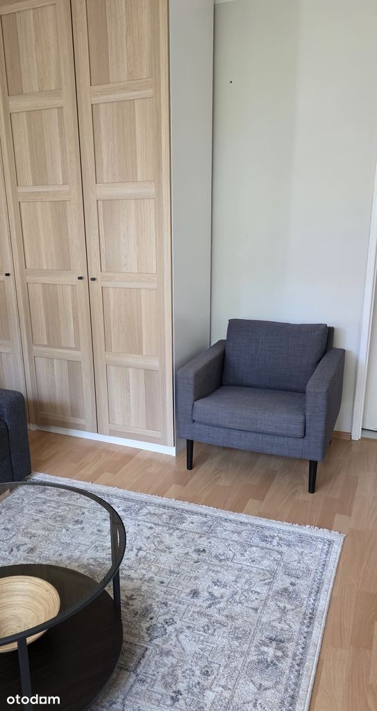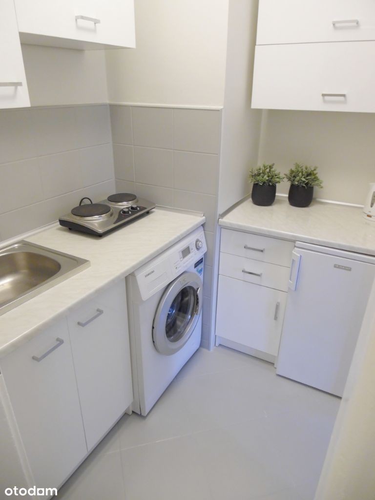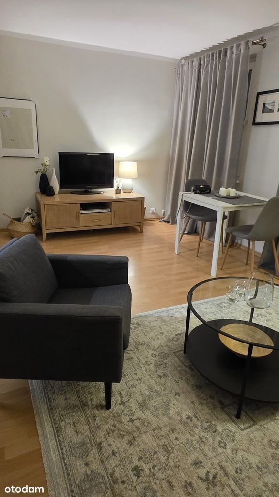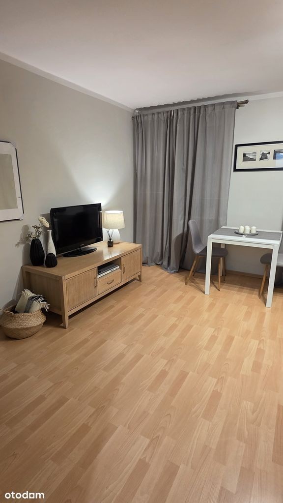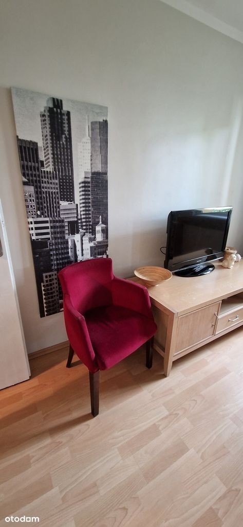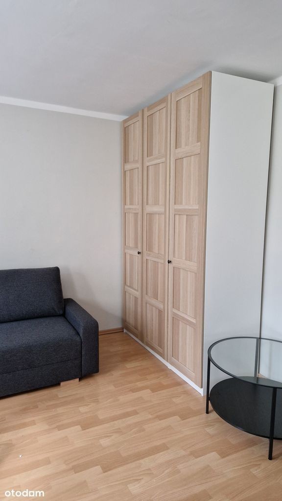 Do wynajęcia komfortowe mieszkanie jednopokojowe z pełnym umeblowaniem oraz niezbędnym wyposażeniem. Mieszkanie składa się z przestronnego salonu, osobnej kuchni, łazienki z wc oraz przedpokoju. W kuchni podstawowe naczynia takie jak talerze, kubki, sztućce i garnki. W przedpokoju szafka na buty oraz szafa na sprzęty domowe, które są na wyposażeniu - deska do prasowania, mop oraz żelazko. Wszystkie meble w mieszkaniu są nowe.