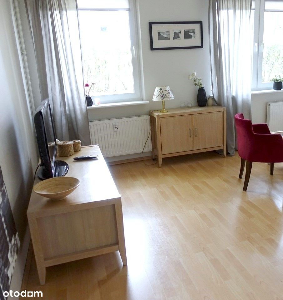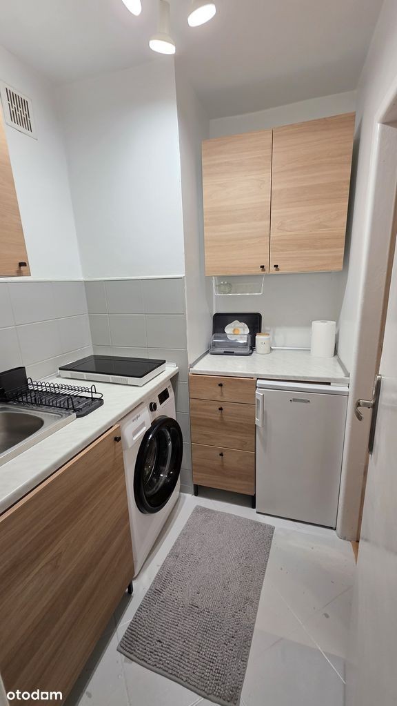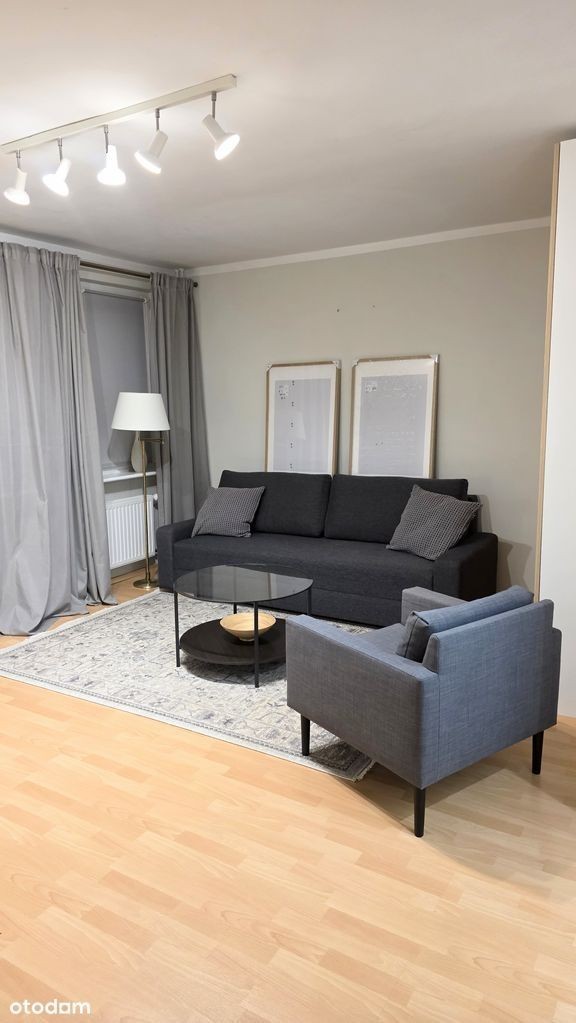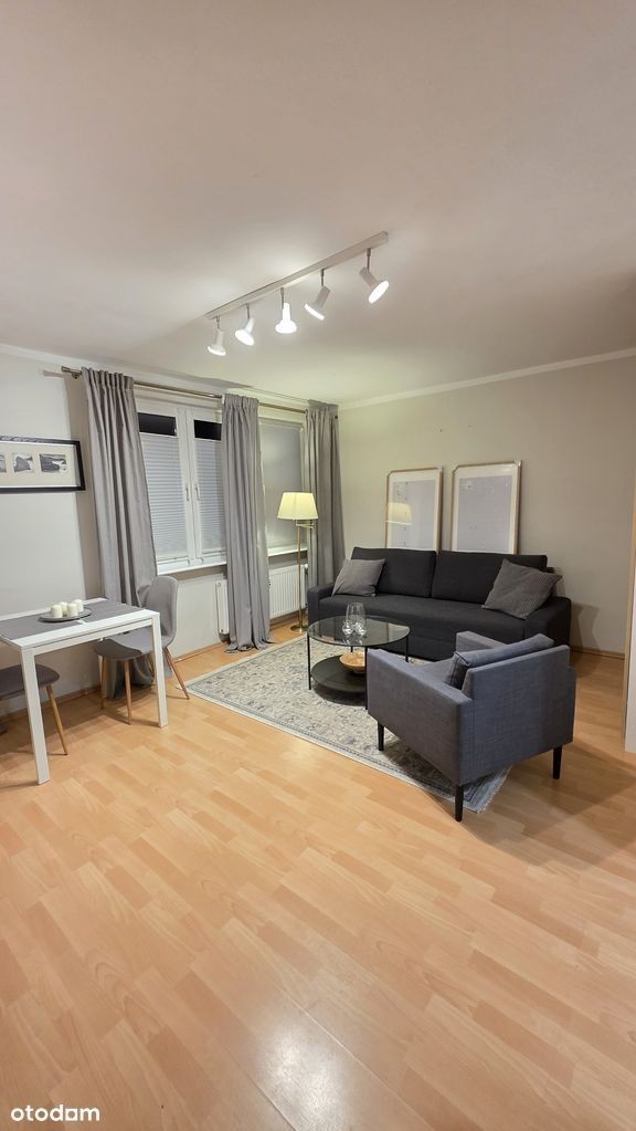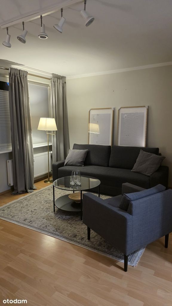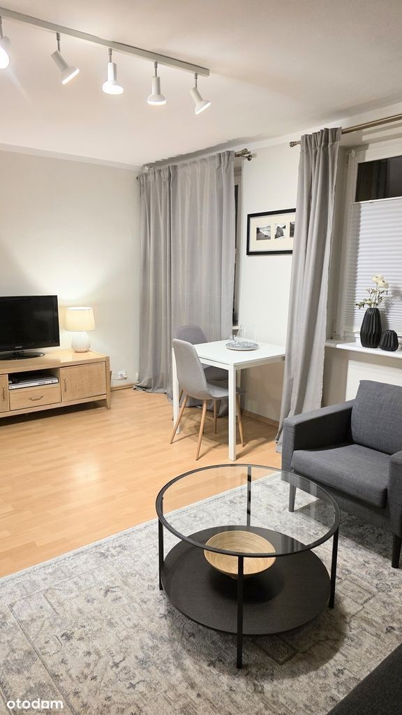 Do wynajęcia komfortowe mieszkanie jednopokojowe z pełnym umeblowaniem oraz niezbędnym wyposażeniem. Mieszkanie składa się z przestronnego salonu, osobnej kuchni, łazienki z wc oraz przedpokoju. W kuchni podstawowe naczynia takie jak talerze, kubki, sztućce i garnki. W przedpokoju szafka na buty oraz szafa na sprzęty domowe, które są na wyposażeniu - deska do prasowania, mop oraz żelazko. Wszystkie meble w mieszkaniu są nowe.