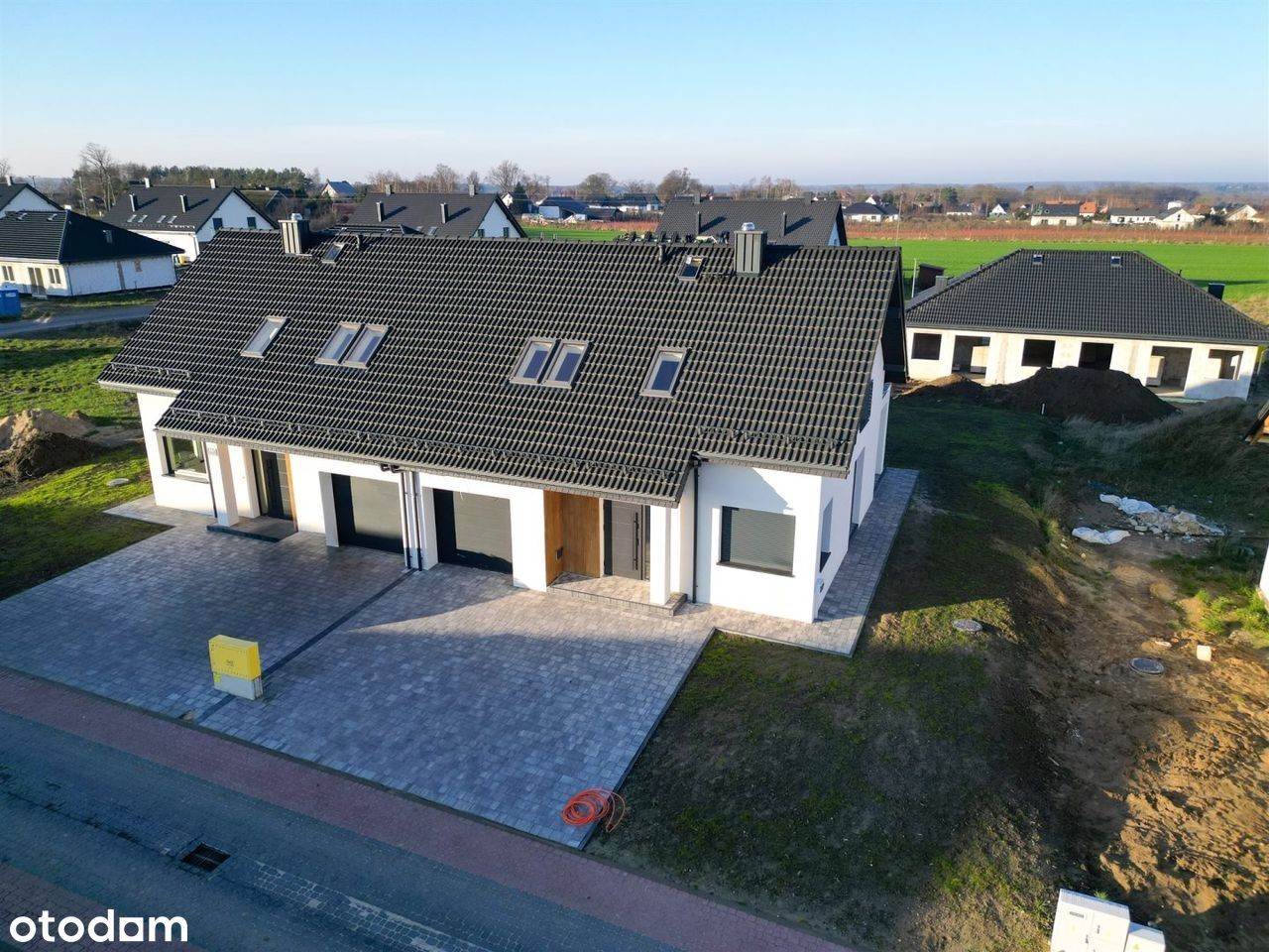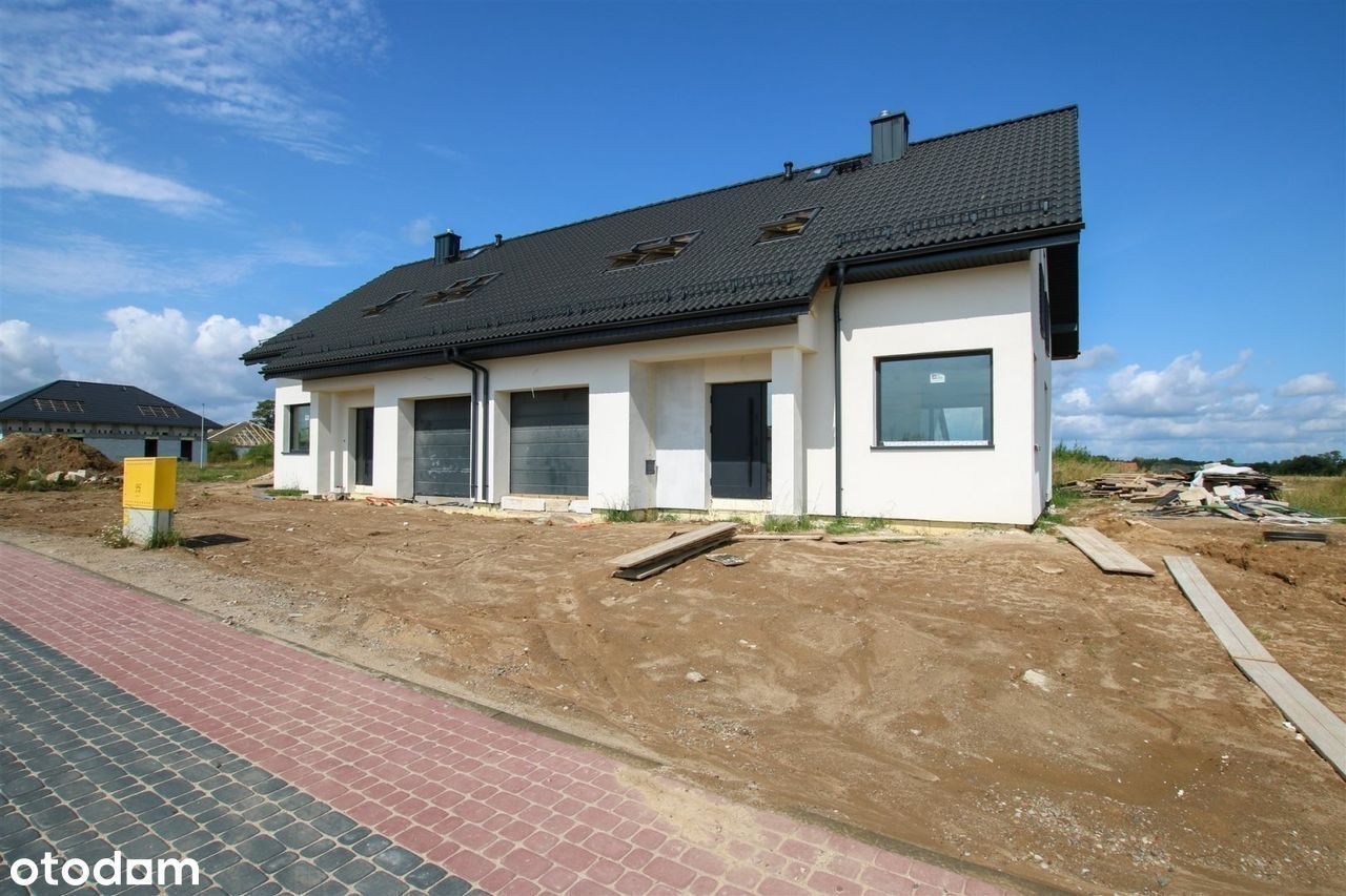 Nowoczesny dom jednorodzinny w zabudowie bliźniaczej w Głobinie przy ulicy Poziomkowej! Szukasz domu w spokojnej okolicy, który możesz wykończyć według własnych upodobań? Ta oferta to doskonała okazja do stworzenia wymarzonego miejsca do życia! Działka - przestrzeń pełna możliwości Dom w zabudowie bliźniaczej usytuowany jest na dużej działce o powierzchni 480 m², co zapewnia szerokie możliwości aranżacyjne. To idealne miejsce do stworzenia pięknego ogrodu, strefy relaksu lub placu zabaw dla dzieci. Dom - funkcjonalność i przemyślany układ pomieszczeń Piętrowy dom jednorodzinny w zabudowie bliźniaczej o powierzchni 124,50 m² wraz z garażem w bryle budynku (21,30 m2), został zaprojektowany z myślą o wygodzie mieszkańców. Przestronne wnętrza oferują dużą swobodę aranżacyjną, a stan deweloperski pozwala na indywidualne dostosowanie wykończenia. Wyjątkowy dom dwulokalowy (składający się z dwóch bliźniaczych segmentów), przeznaczony dla 4-5 osobowej rodziny. Oba segmenty połączone garażami. Zwarta bryła domu zawiera na parterze część dzienną z wygodną kuchnią i zgrabnym salonem. Taras na przedłużeniu salonu jest osłonięty balkonem. Schody połączone z przestrzenią salonu prowadzą na poddasze, które zawiera trzy wyjątkowo przestronne sypialnie z balkonami i dużą łazienkę. Parter (53,40 m²) : Piętro (52,40 m²) : Solidny wykonawca - jakość, która robi różnicę Dom został wykonany z najwyższej jakości materiałów budowlanych, z dbałością o każdy szczegół - od fundamentów po więźbę dachową. To nie jest kolejna "taśmowa" inwestycja - tu postawiono na solidność, trwałość i estetykę. Dzięki temu możesz mieć pewność, że budujesz na mocnych fundamentach, które posłużą przez długie lata. Lokalizacja Głobino to miejscowość, która od lat cieszy się popularnością wśród rodzin z dziećmi. Bliskość natury, cisza i bezpieczeństwo tworzą idealne warunki do życia i wychowywania dzieci. W sąsiedztwie znajdują się tereny zielone, plac zabaw, szkoła oraz przedszkole - wszystko, czego potrzebujesz na co dzień, znajduje się na wyciągnięcie ręki. Dodatkowe informacje: - projekt domu APS 254 wariant 3 dwulokalowy, - dwukondygnacyjny, - wysokość budynku 8,15 m, - pokrycie dachu: dachówka, - dach dwuspadowy, - budynek niepodpiwniczony, - działka o powierzchni 480 m2, - stropy gęstożebrowe, - materiały wysokiej jakości, - rok budowy 2025. Cena: 729 000 PLN Wynagrodzenie pośrednika pokrywa strona Kupująca. Więcej informacji uzyskasz kontaktując się z nami: