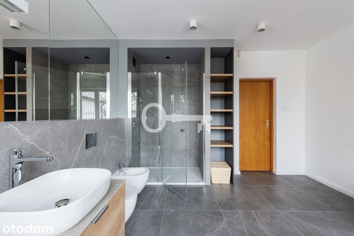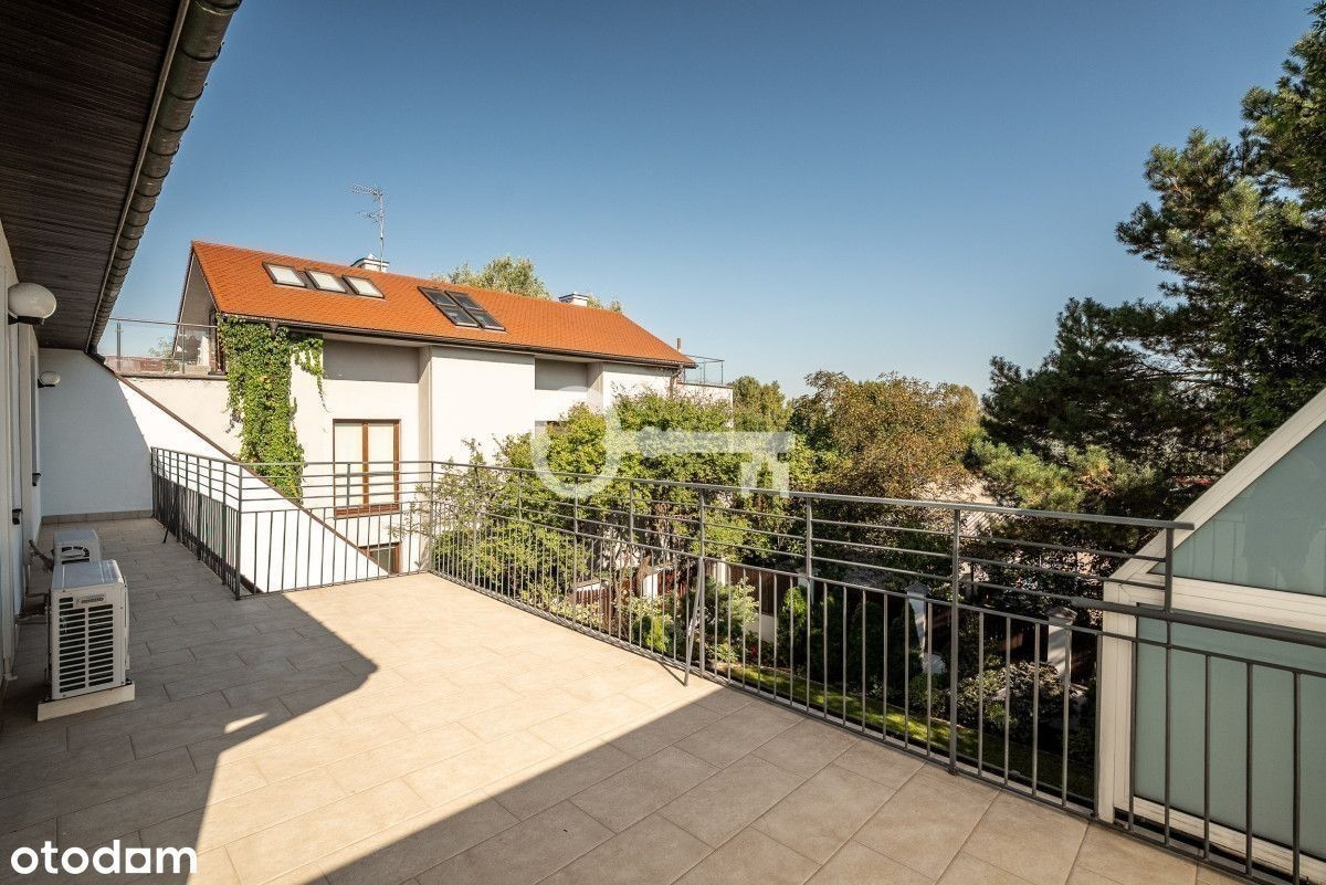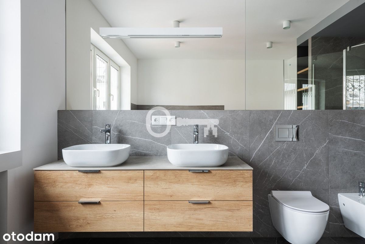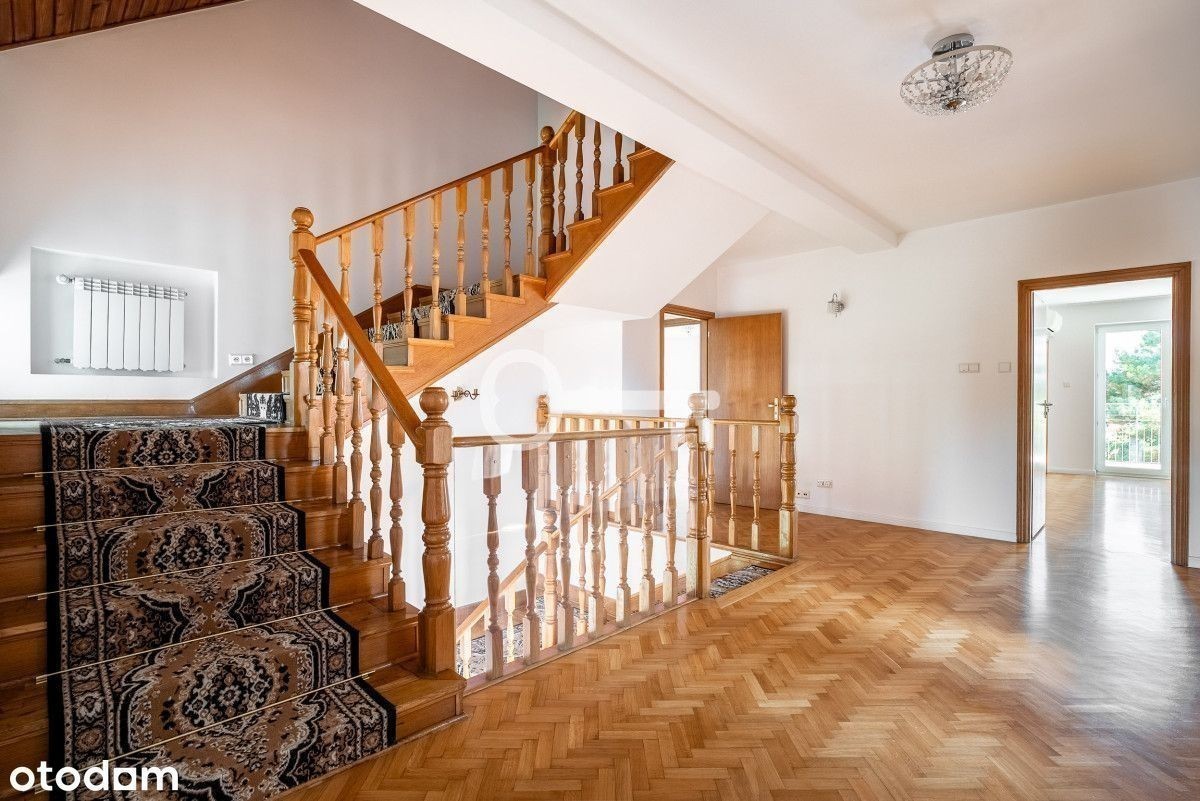 REZYDENCJA NA WYNAJEM W WILANOWIE! 8 sypialni | 4 łazienki + 2 toalety | Powierzchnia recepcyjna 192 m² | Klimatyzacja | Sauna i gym | Garaż na 2 auta + 3 miejsca parkingowe na posesji | Bezpieczeństwo Konsalnet | Ogród ekreacyjny | Kapitalny remont w 2020 r. Parter (192 m² powierzchni recepcyjnej): * przestronny hall wejściowy, * elegancki salon z biało-czarnym marmurowym kominkiem, * jadalnia, * kuchnia po generalnym remoncie (nowe szafki, sprzęt AGD: zmywarka, lodówka, piekarnik, mikrofalówka, płyta indukcyjna), * spiżarnia / magazyn przy kuchni, * gabinet / biuro domowe, * toaleta dla gości. Piętro I: * 4 sypialnie jedno- lub dwuosobowe, każda z garderobą, * 2 łazienki w całości wyłożone glazurą, * pralnia. Piętro II: * 3 pokoje (w tym pokój rekreacyjny dla dzieci), * łazienka, * dwa tarasy z widokiem na ogród. Piwnica: * pokój rekreacyjny/bankietowy z dębową klepką, * pomieszczenie przygotowane pod saunę i gym, * pralnia, * pomieszczenia techniczne, * garaż na 2 samochody. Dom przeszedł kapitalny remont w 2020 roku, podczas którego wymieniono instalacje wodne, elektryczne i sanitarne. Posiada światłowodowy internet Orange oraz rozprowadzone kable telewizyjne. W głównych pokojach na parterze i pierwszym piętrze zainstalowano klimatyzację. Bezpieczeństwo zapewnia system alarmowy Konsalnet z ochroną i czasem reakcji do 3 minut, a także nowe okna antywłamaniowe ze specjalnymi szybami i okuciami. Wykończenie wnętrz obejmuje parkiet dębowy, elegancką mozaikę dębowo-mahoniową, marmurowe parapety oraz dębowe schody i balustrady. Komfort codziennego użytkowania podnoszą wideodomofon, automatyczna brama wjazdowa i drzwi garażowe. Ogrzewanie zapewnia system gazowy Junkers/Bosch wraz z instalacją wodną Hydroterm i miedzianymi rurami wyposażonymi w filtry. Dach oraz orynnowanie wykonane są z miedzi. od frontu reprezentacyjne wejście dla gości pieszych, dwie bramy wjazdowe - jedna do garażu (2 auta), druga na wewnętrzny parking dla gości (3 auta), od strony ogrodu część rekreacyjna w stylu kaskadowym - tarasy, trawnik i kwietniki, system automatycznego podlewania, oświetlenie bezpieczeństwa wokół posesji. Prestiżowa część Wilanowa, w otoczeniu zieleni i rezydencji. Doskonała propozycja dla rodziny, dyplomatów lub jako elegancka rezydencja reprezentacyjna. W pobliżu liczne prestiżowe szkoły i przedszkola. Szybki dojazd do centrum. * Nieruchomość gotowa do wynajmu. * Dodatkowo płatny prąd, gaz, wywóz odpadów.