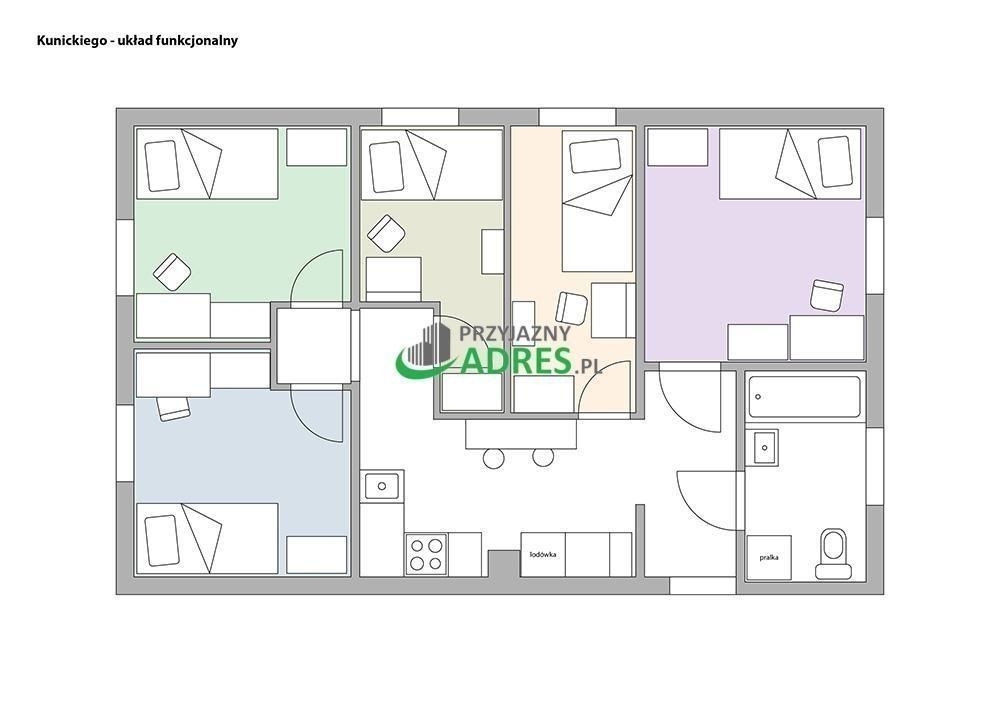 Mieszkanie 5 pokojowe przy ul. Kunickiego 7, na 3 piętrze w 3 piętrowej kamienicy. Spokojna okolica. Dostępne od 11.10. Po remoncie klatka schodowa. Pokoje zamykane na klucz - 10m2, 9m2 x2, 7m2 x2. Miejsca parkingowe ogólnodostępne na podwórzu.