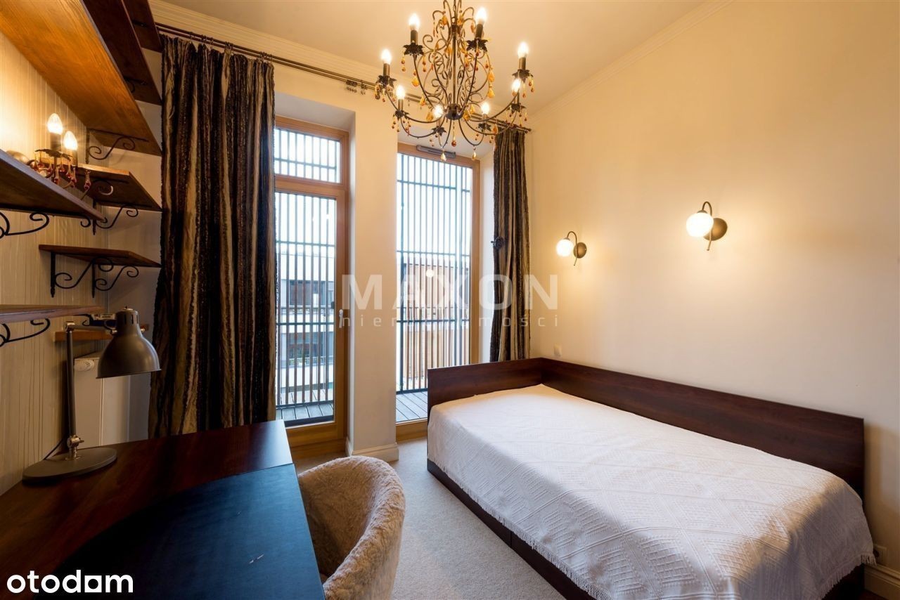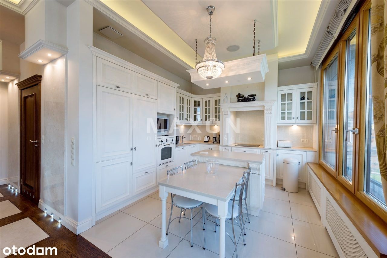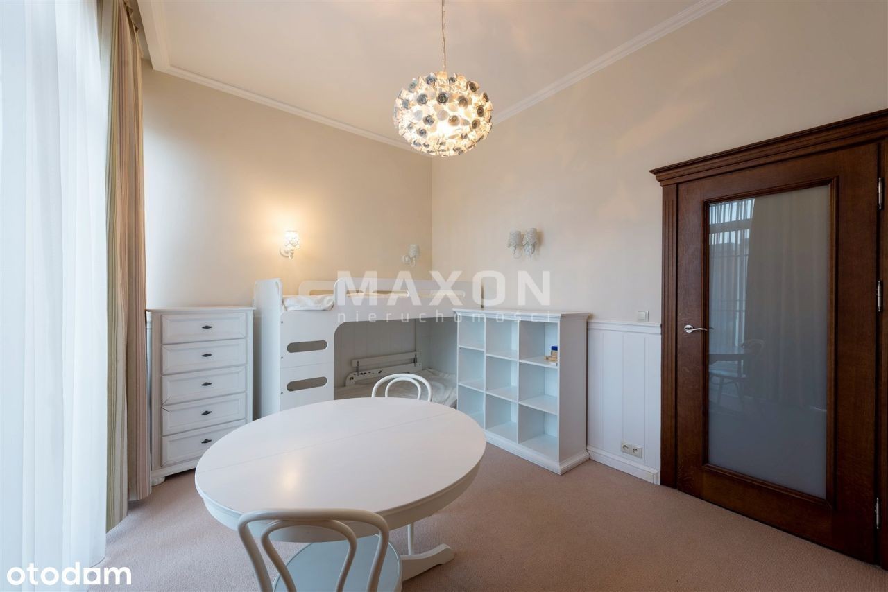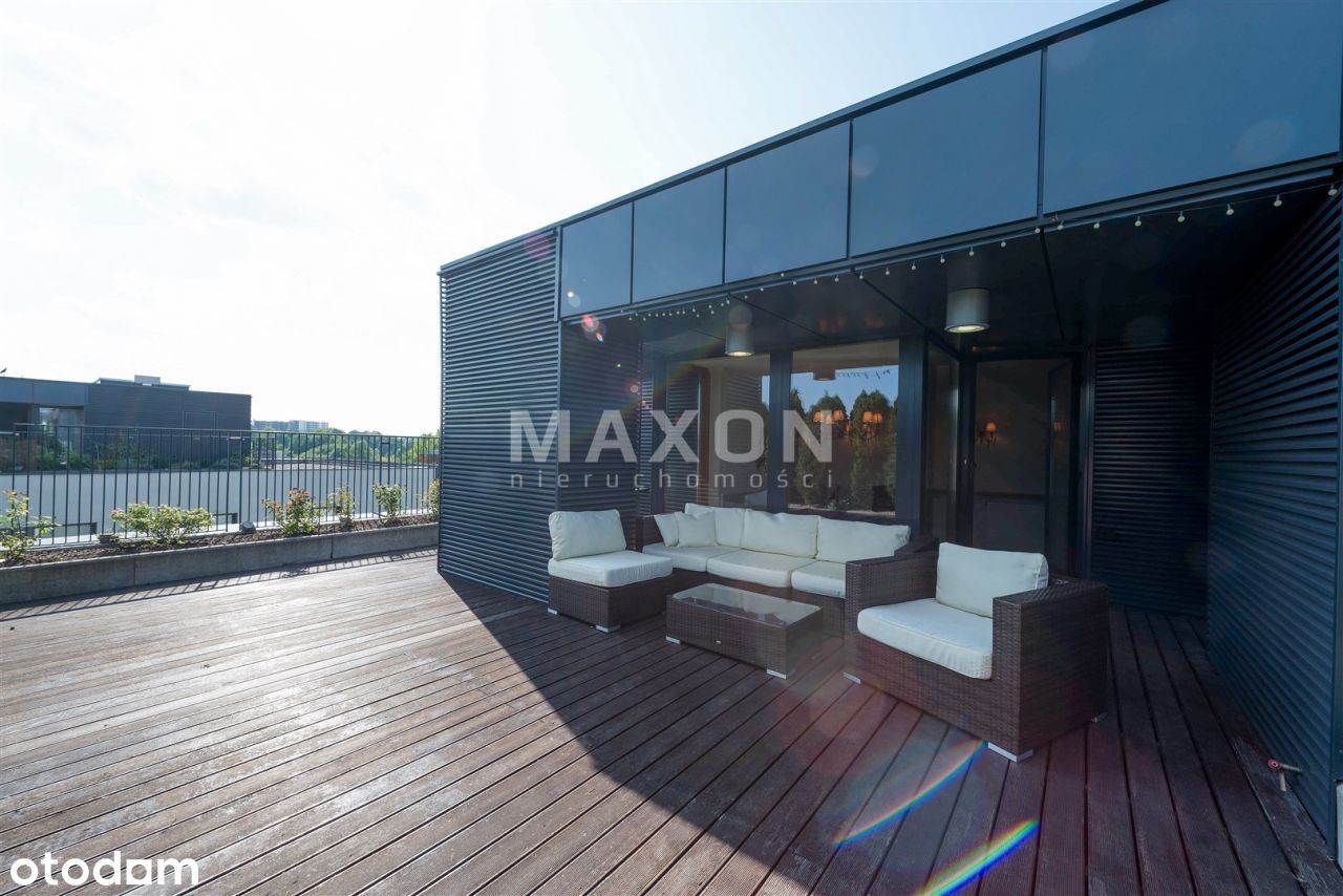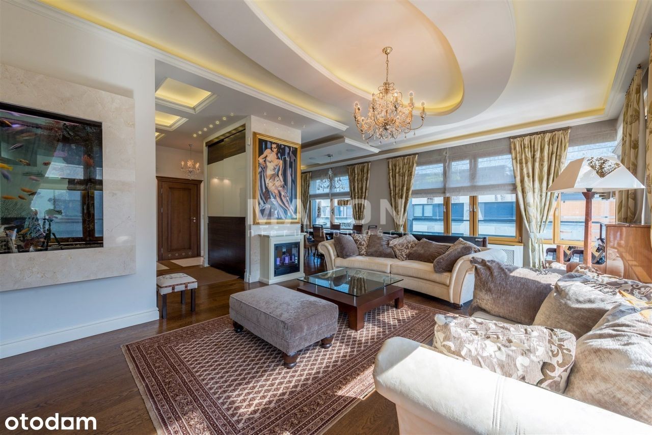 Ekskluzywny penthouse o powierzchni 175 mkw., z balkonem oraz dużym, 110 mkw. tarasem i ogrodem na dachu budynku zlokalizowanego na granicy dzielnic Mokotowa i Wilanowa. Na IV piętrze, dobrze doświetlony, słoneczny. W świetnej lokalizacji, w bezpośrednim sąsiedztwie rezerwatu przyrody. Apartament z widokiem na trzy strony świata, wykończony w. Podłogi z naturalnego kamienia oraz desek z dębu w kolorze orzecha. W salonie kominek z białego marmuru. Kuchnia w pełni wyposażona w sprzęt AGD, z wyspą, blat z kamienia. W ścianie dzielącej hol od salonu, olbrzymie, widoczne z obu stron i całkowicie zautomatyzowane akwarium. We wszystkich oknach rolety zewnętrzne, moskitiery, rolety wewnętrzne rzymskie i zasłony. Apartament wyposażony w ogrzewanie podłogowe, systemy: automatycznej klimatyzacji, podtynkowy system audio i TV, instalacje: domofonową, internetową, kablową, telefoniczną, satelitarną oraz centralny wyłącznik światła. Wysokość pomieszczeń 3,2 m. Rozkład pomieszczeń: - reprezentacyjny połączony z oraz wyjściem na, - duża, pięknie rozplanowana, - główna z ponadwymiarowym prysznicem oraz wyjściem na, - ze stylową, robioną na zamówienie biblioteką i kanapą, - dla dzieci z piętrowym łóżkiem, - łazienka z wanną i naściennym tv, - oddzielna toaleta z pisuarem i umywalką, - pomieszczenie gospodarcze i pralnia. Czynsz administracyjny: Ogrzewanie: Woda: Prąd: Gaz: Internet: TV kablowa/sat.: Miejsce postojowe: Kaucja : Czynsz adm. Woda : Prąd : Ogrzewanie : Gaz : Internet : TV Kablowa / sat. Miejsce postojowe : Rodzaj : Stan lokalu : Umeblowanie : Salon : Kuchnia : Liczba łazienek : Lb. oddzielnych toalet : Rok budowy : Stan budynku : Winda : Udog. dla niepełnosprawnych : Teren ogrodzony : Ochrona : Liczba balkonów : Balkon : Liczba tarasów : Piwnica : Komórka : Ogród : Klimatyzacja : Ogrzewanie : Ciepła woda : Gaz : Wyposażenie łazienek : Wyposażenie kuchni : Parking podziemny : Dostępne w okolicy : Transport publiczny : Nasze usługi świadczymy w oparciu o umowę pośrednictwa, która gwarantuje Państwu. Za wykonaną usługę pobieramy wynagrodzenie zgodnie z warunkami uzgodnionymi w zawartej umowie (za wyjątkiem umów zawartych w programie 0%). Prezentowane oferty nie stanowią oferty w rozumieniu Kodeksu Cywilnego. Staramy się, aby informacje dotyczące oferowanych obiektów były możliwie dokładne, kompletne i aktualne. Ze względu na okoliczności, iż informacje te pochodzą od osób trzecich i część z nich nie zawsze daje się zweryfikować, MAXON Nieruchomości Sp. z o.o. nie ponosi odpowiedzialności za ich dokładność, kompletność i aktualność