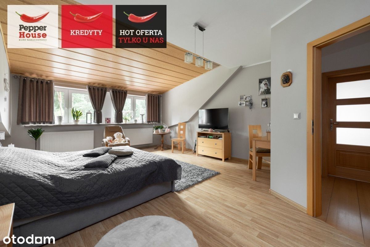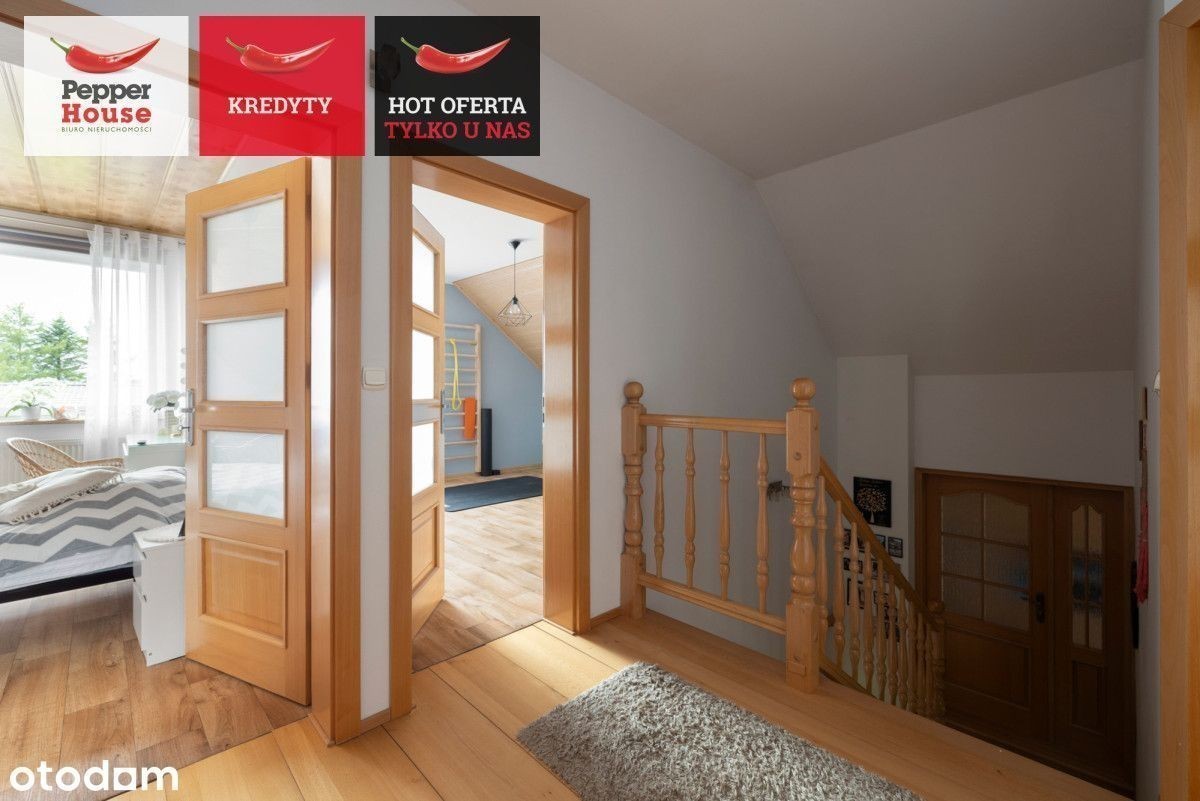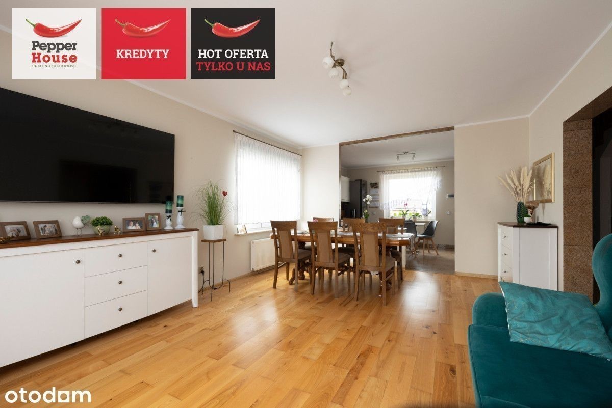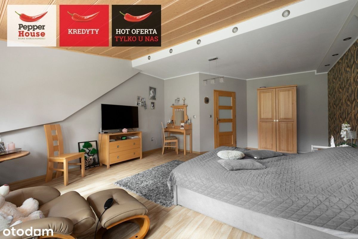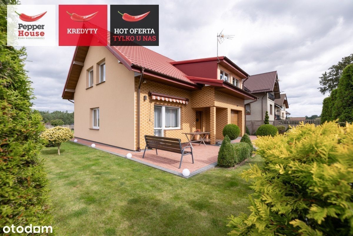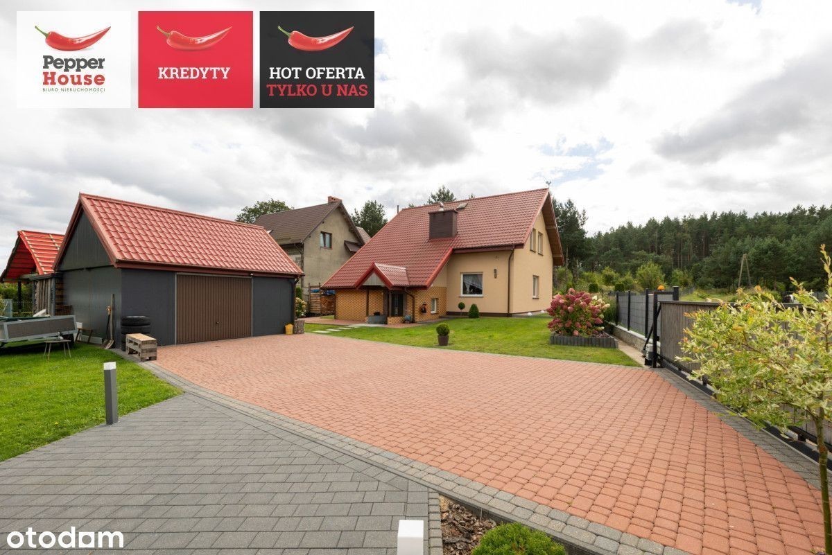 Dom wolnostojący z dużą działką w Robakowie- cisza, natura i komfort codziennego życia Na sprzedaż dom parterowy z użytkowym poddaszem, położony w spokojnej i zielonej części Robakowa. Nieruchomość o powierzchni całkowitej ok. 174 m² usytuowana jest na pięknie zagospodarowanej działce o powierzchni 1 256 m². To propozycja dla osób ceniących prywatność, kontakt z naturą i funkcjonalne rozwiązania, przy jednoczesnym szybkim dojeździe do Luzina (3 km), Wejherowa (9 km) i trasy S6. sąsiedztwo lasów i malowniczych ścieżek spacerowych, dogodny dojazd- asfaltowa droga powiatowa tuż przy posesji, sklepy (Lewiatan, Dino) i przystanki PKS w pobliżu, szybki wyjazd na trasę Kaszubską S6- komfortowy dojazd do Trójmiasta. Parter Salon (21,5 m²) z wyjściem na taras od strony południowej, Kuchnia (12 m²) z pełną zabudową i sprzętem AGD, Pokój (10 m²), Łazienka (ok. 3 m²), Przedsionek (4 m²) i przedpokój (10 m²), Kotłownia (15 m²) z dodatkowym wyjściem na ogród, Garaż w bryle budynku (14 m²). Między kondygnacjami: garderoba zabudowana- ok. 15 m². Poddasze użytkowe Duża sypialnia (26 m²), Dwa ustawne pokoje (po 16 m² każdy), Łazienka z wanną (10 m²). Dodatkowe pomieszczenie gospodarcze- piwniczka/spiżarka przy klatce schodowej. Ściany zewnętrzne i nośne z pustaka ceramicznego Porotherm, Dach dwuspadowy, odeskowany, pokryty blachodachówką, Okna częściowo trzyszybowe, częściowo dwuszybowe - dobre parametry termoizolacyjne, Parapety granitowe- wewnętrzne i zewnętrzne, Ogrzewanie podłogowe w kuchni, przedpokoju i obu łazienkach, Piec na drewno bukowe- zamontowany 2 lata temu, Roczny koszt opału: ok. 1 600-2 000 zł, Woda z sieci, szambo, Kamery i wideodomofon - bezpieczeństwo w standardzie. Przestrzeń zewnętrzna: Duża, zadbana działka od strony północnej z tarasem od strony południowej, Garaż wolnostojący (26 m²), Altana ogrodowa (20 m²) - możliwość zakupu dodatkowo (ok. 60 000 zł), Dwa wjazdy: brama przesuwna (6 m) oraz dwuskrzydłowa (5 m), Utwardzone podjazdy i ścieżki. Dlaczego warto? Dom w doskonałym stanie, gotowy do zamieszkania, Solidne materiały i staranne wykończenie, Niskie koszty utrzymania, Kameralna lokalizacja- cisza, natura i bezpieczeństwo. To propozycja dla osób poszukujących przestrzeni dla rodziny, możliwości rozwijania domu i ogrodu według własnych potrzeb oraz komfortu mieszkania w bliskości natury, ale z wygodnym dojazdem do większych miast.