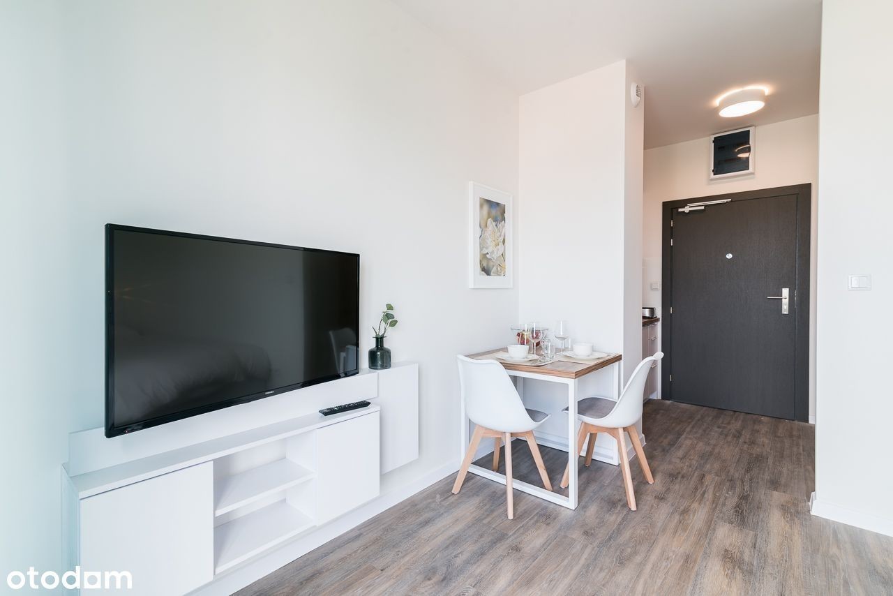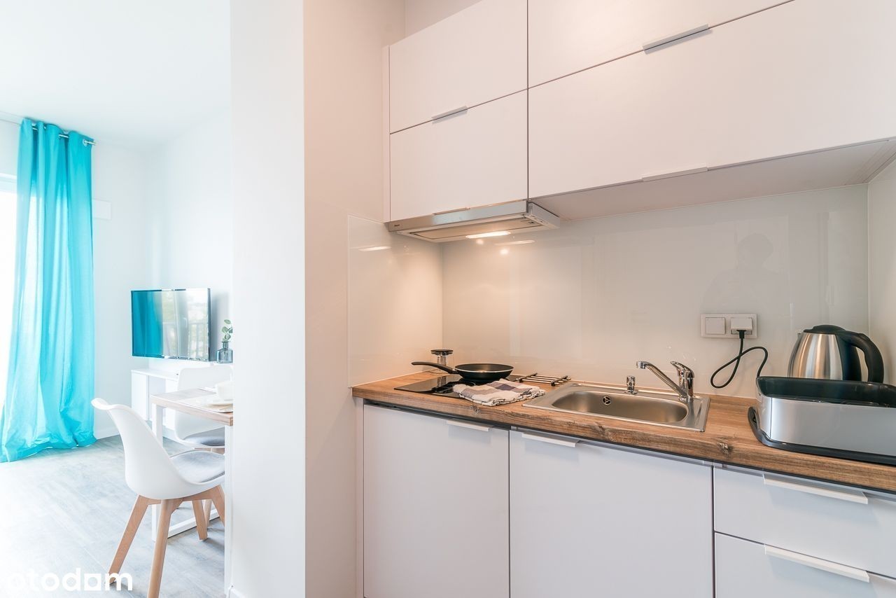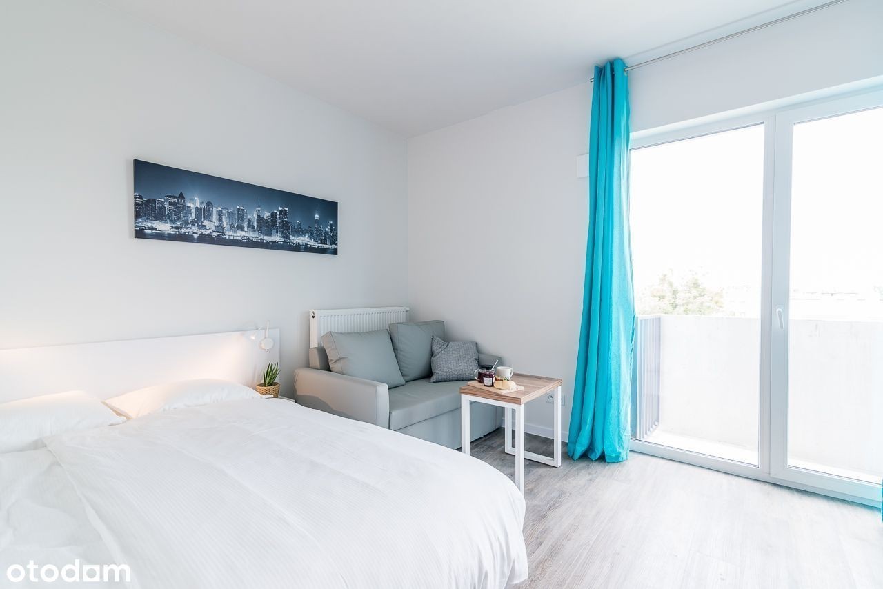 for english scroll down Do wynajęcia od zaraz kawalerka z balkonem. Mieszkanie składa się z salonu wraz z częścią sypialną oraz wydzielonej kuchni. Mieszkanie jest pełni umeblowane. W salonie znajduje się podwójne łóżko, rozkładana kanapa, stół, szafka rtv, telewizor.