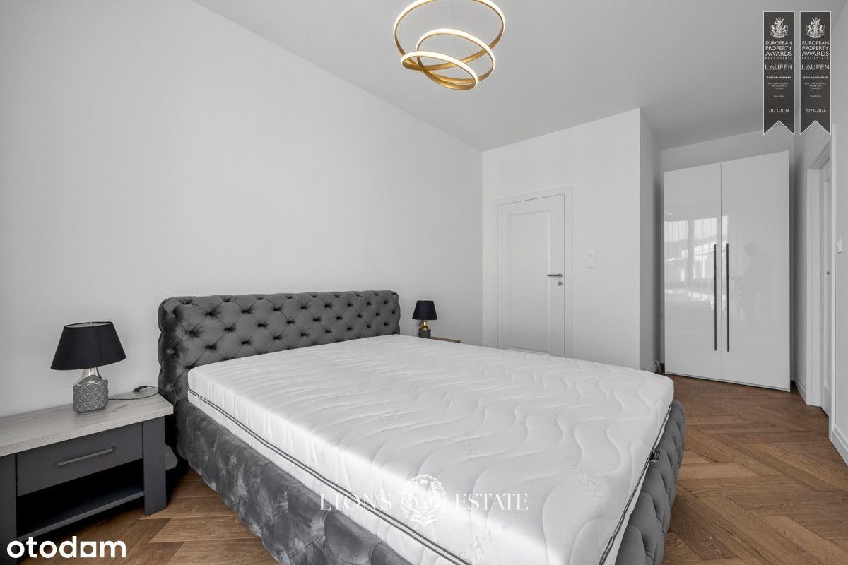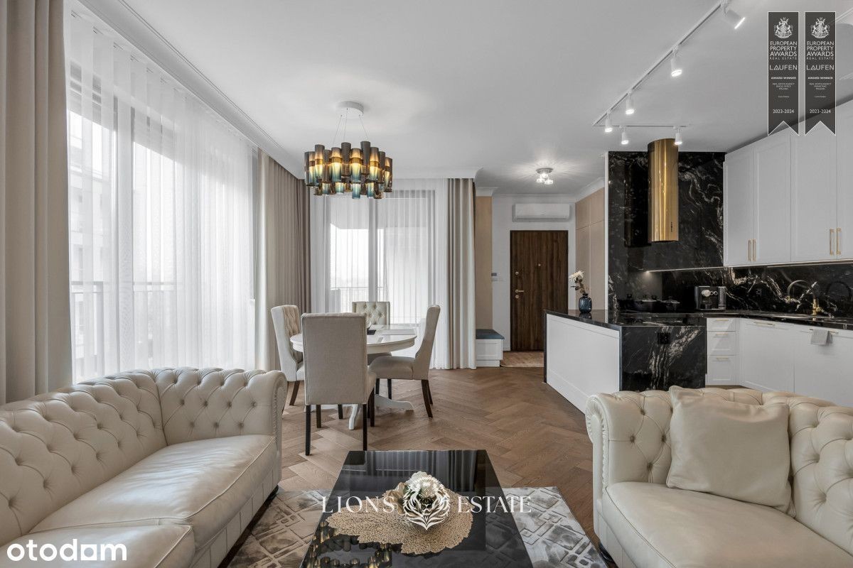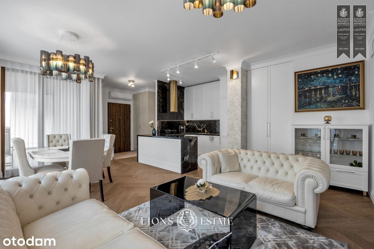 Mamy przyjemność zaprezentować piękny apartament na sprzedaż w Miasteczku Wilanów. 4 pokoje i pięknie zaaranżowana przestrzeń będą idealnym rozwiązaniem dla koneserów wyszukanego stylu. Apartament: Nieruchomość znajduje się na drugim piętrze nowego, prestiżowego osiedla Royal Residence. Budynek posiada takie udogodnienia jak sauna, siłownia, pokój do jogi, ochrona, monitoring, lobby, usługi concierge, dziedziniec, plac zabaw, klub malucha, sauna, klub fitness, stojaki rowerowe, stacja ładowania samochodów elektrycznych. Mieszkanie o powierzchni 90m2 składa się z przestronnego salonu połączonego z aneksem kuchennym oraz wyjściem na 14 metrowy balkon, dwóch łazienek oraz 3 sypialni. 2 sypialnie nie są umeblowane, istnieje możliwość ich doposażenia w zależności od potrzeb najemcy. Apartament jest zupełnie nowy i wykończony w bardzo wysokim standardzie. Poza klimatyzacją mieszkanie jest wyposażone w funkcję smart home oraz automatyczne rolety zewnętrzne. Materiały użyte do wykończenia cechuje wyjątkowa jakość oraz kunszt. Piękny, olejowany drewniany parkiet, kamienne blaty, pojemna zabudowa szafowa na wymiar to nie wszystkie atuty apartamentu. 2 łazienki dające wybór użytkowania, ponieważ zostały wyposażone odpowiednio w wannę wolnostojącą w łazience przynależącej do sypialni oraz prysznic w drugiej. Całość została wykończona spójnie w najwyższych standardach w stylu klasycznym z elementami stylu Hamptoms. Do mieszkania przynależy miejsce postojowe w garażu podziemnym. Do ceny najmu należy doliczyć czynsz administracyjny w wysokości 1200 PLN oraz opłaty za energię i pakiet internetu i TV. Nieruchomość zlokalizowana jest w kameralnej części jednego z najbardziej pożądanych miejsc Warszawy - Miasteczka Wilanów. Bliskość terenów zielonych, parków, oraz urokliwych alejek sprawia, że to miejsce jest idealne dla osób ceniących aktywny wypoczynek i rekreację. Poza bliskością natury, każdy znajdzie coś dla siebie - od sklepów, kafejek, restauracji, siłowni, po wszelkiego rodzaju lokale usługowe. Znajdują się tu również międzynarodowe szkoły i przedszkola. Z Wilanowa bardzo łatwo można dostać się do centrum Warszawy zarówno samochodem, jak i transportem publicznym. Prezentowane mieszkanie to propozycja szyta na miarę dla osób ceniących sobie elegancję oraz prestiż i komfortową infrastrukturę. Wilanów jest odpowiedzią na powyższe preferencje, będąc jedną z najbardziej prestiżowych rejonów Warszawy. Luksusowe wnętrze oraz funkcjonalny układ pomieszczeń sprawiają, że to idealne miejsce dla tych, którzy cenią sobie jakość premium idącą w parze z funkcjonalnością. Zapraszamy do kontaktu w celu uzyskania dodatkowych informacji oraz umówienia się na prezentację. We are pleased to present a beautiful apartment for sale in Miasteczko Wilanów. The 4 rooms and space with sophisticated taste will be perfect for connoisseurs of good taste. The property is located on the second floor of the new, prestigious Royal Residence development. The building has such amenities as sauna, gym, yoga room, security, monitoring, lobby, concierge services, courtyard, playground, toddler club, sauna, fitness club, bike racks, electric car charging station. The 90m2 apartment consists of a spacious living room combined with a kitchenette and access to a 14 meter balcony, two bathrooms and 3 bedrooms. 2 bedrooms are unfurnished, it is possible to retrofit them depending on the needs of the tenant. The apartment is brand new and finished to a very high standard. In addition to air conditioning, the apartment is equipped with a smart home function and automatic external blinds. The materials used for finishing are of exceptional quality and craftsmanship. Beautiful oiled wooden parquet, stone countertops, capacious custom cabinetry are not all assets of the apartment. 2 bathrooms giving choice of use, as they have been equipped respectively with a free-standing bathtub in the bathroom belonging to the bedroom and a shower in the other. The whole apartment has been finished consistently to the highest standards in classic style with elements of Hamptoms style. The apar
