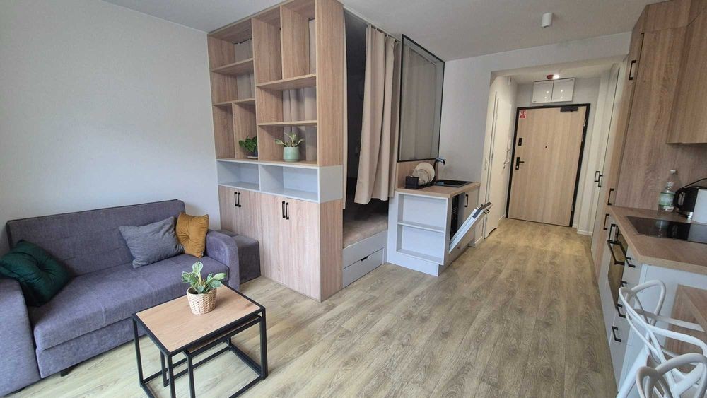 Kawalerka z sypialnią przy samym parku! Do wynajęcia kawalerka nowo powstałym budynku Partynicka Park przy samym Parku Klecińskim. Lokal o wielkości 23m2 oferuje: Pełne wyposażenie AGD Lodówka, zmywarka, płyta grzewcza, piekarnik z funkcją kuchenki mikrofalowej, pralka Akcesoria kuchenne Talerze, szklanki, kieliszki, sztućce, garnki, patelnie Telewizor z funkcją smart TV Sofę z funkcją spania Pojemne szafy Wydzielona sypialnia, z dużym łóżkiem i zasłonami do zaciemnienia Wyjątkowa lokalizacja: Bezpośrednie sąsiedztwo Parku Klecińskiego, znajdującego się bezpośrednio przy wejściu do budynku. Świetnie skomunikowana okolica - 5 min piechotą do pętli tramwajowej. W bezpośredniej okolicy znajdują się liczne przystanki autobusowe, stacja kolejowa Wrocław Partynice. 5 minut do strefy ekonomicznej Wrocław Bielany Ok. 10 min do Centrum miasta W budynku znajduje się m. in. Żabka Układ lokalu: Jasny pokój dzienny z kuchnią Łazienka z prysznicem Wydzielona sypialnia WARUNKI NAJMU: 1900 zł + 23% vat najem 700 zl + 23% vat oplaty ( czynsz + prąd ) Kaucja 3000 zł Umowa na okres zamknięty na 12 miesięcy