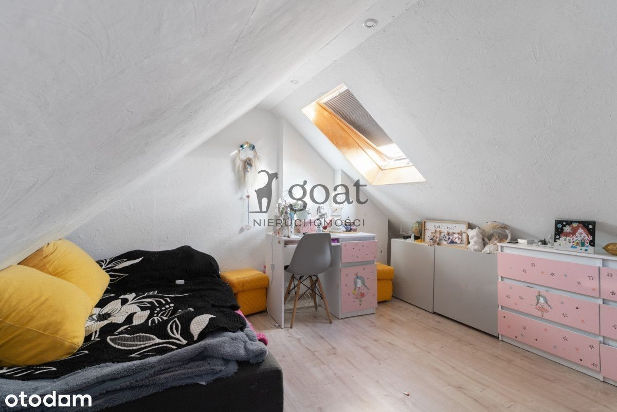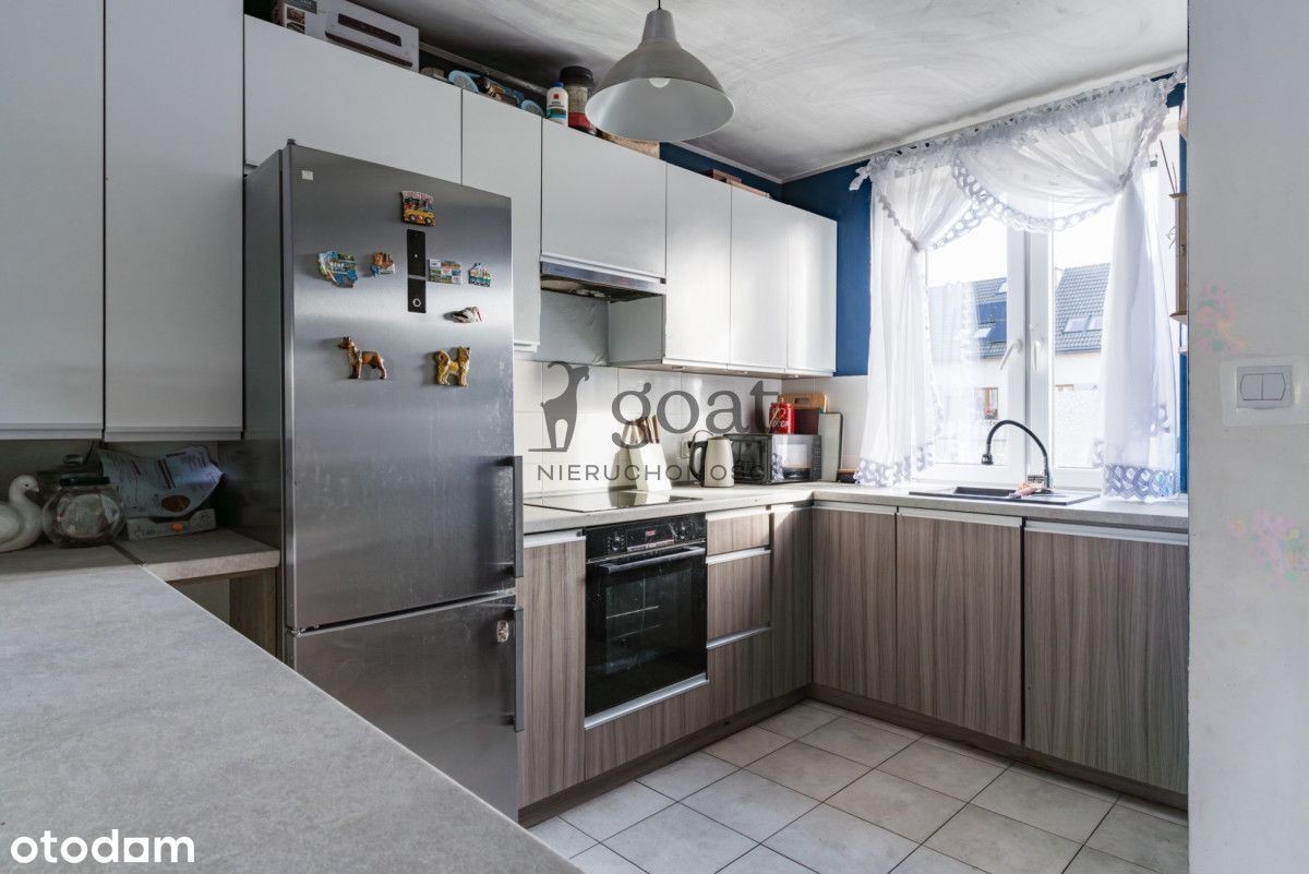 Dom: Nowoczesny dom 4-pok z dużym ogrodem - Banino, ul. Jeziorna Na sprzedaż przytulny, jasny dom o funkcjonalnym układzie pomieszczeń, położony w spokojnej części Banina. Nieruchomość znajduje się w budynku szeregowym i wyróżnia się przestronnym ogrodem oraz zagospodarowanym poddaszem. Powierzchnia: ok. m² (w tym użytkowe poddasze ok m²) salon z aneksem kuchennym i wyjściem na ogród, trzy sypialnie, osobno wc łazienka z wanną i prysznicem, przedpokój z zabudową. Budynek w zabudowie szeregowej został wybudowany w nowoczesnym stylu, z dbałością o komfort mieszkańców i estetykę przestrzeni. Powstał z wysokiej jakości materiałów, co zapewnia trwałość, dobrą izolację termiczną oraz niskie koszty eksploatacji. spokojna okolica Banina, w sąsiedztwie domów jednorodzinnych. Blisko sklepy, szkoła, przystanki komunikacji miejskiej oraz szybki dojazd do Gdańska. Z salonu wychodzi się na duży, zielony ogród z tarasem - idealne miejsce na relaks, zabawę z dziećmi czy grilla ze znajomymi. Okolica jest cicha i spokojna, otoczona zabudową jednorodzinną * duży ogród z tarasem i miejscem do relaksu, * poddasze zaadaptowane jako przestronny pokój lub biuro, * miejsce parkingowe przed domem plus garaż z poddaszem, które pełni funkcję pomocniczą - gospodarczo-magazynową * Idealne dla rodzin, par lub osób pracujących zdalnie, które cenią komfort, spokój i kontakt z naturą