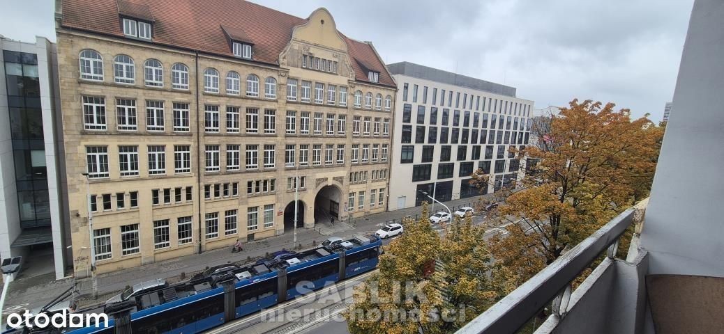 Do wynajęcia rozkładowe 2 pokojowe mieszkanie o powierzchni 52 m2, przy ul. Piłsudskiego przy Arkadach Wrocławskich w dzielnicy Stare Miasto we Wrocławiu. Mieszkanie składa się z: salonu z wyjściem na balkon, sypialni, oddzielnej kuchni, łazienki z WC, przedpokoju. Kuchnia jest w pełni wyposażona w sprzęt AGD: kuchenkę, piekarnik, lodówkę, mikrofalówkę oraz meble w zabudowie. W salonie rozkładana sofa, stolik kawowy, szafa, szafka RTV. W sypialni sofa, szafa. Łazienka z WC oraz wanną i pralką. Do mieszkania przynależy rowerownia.