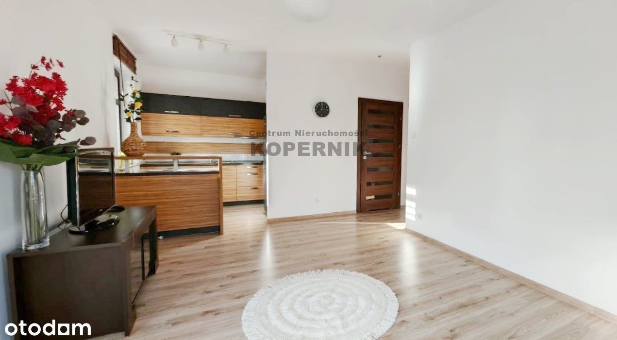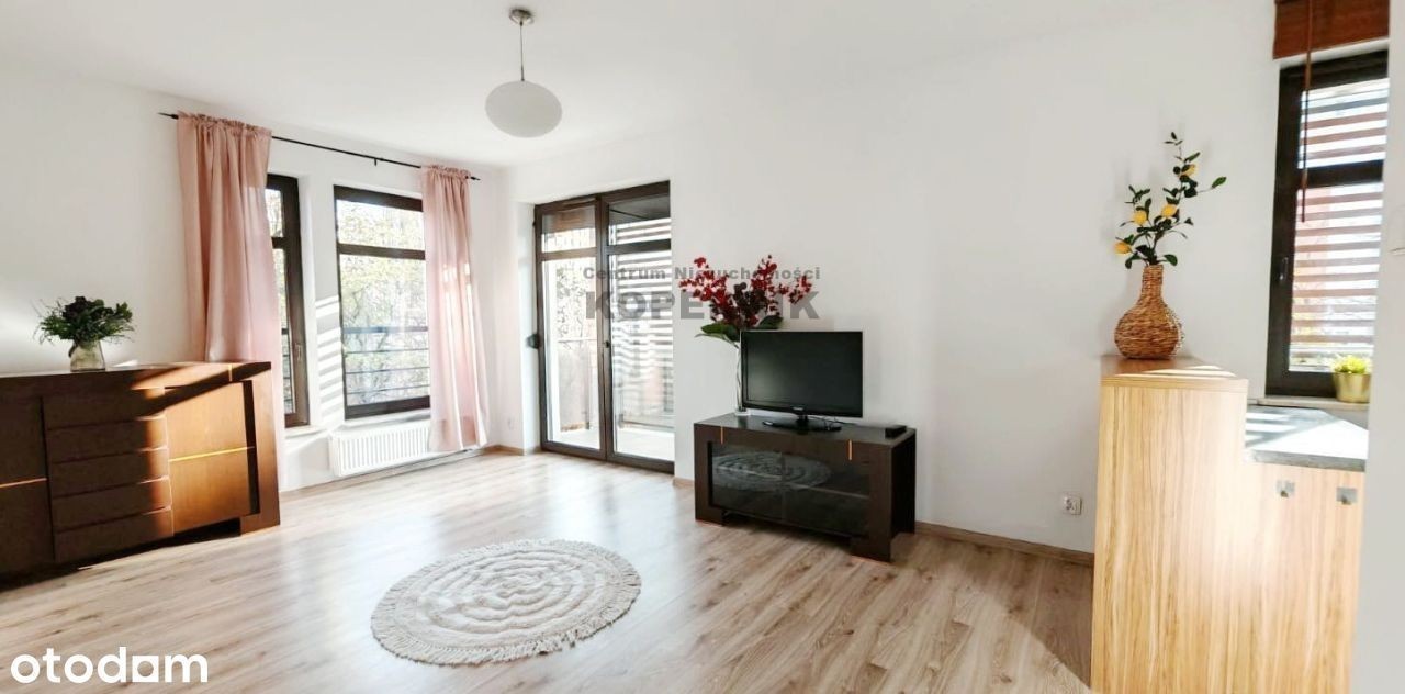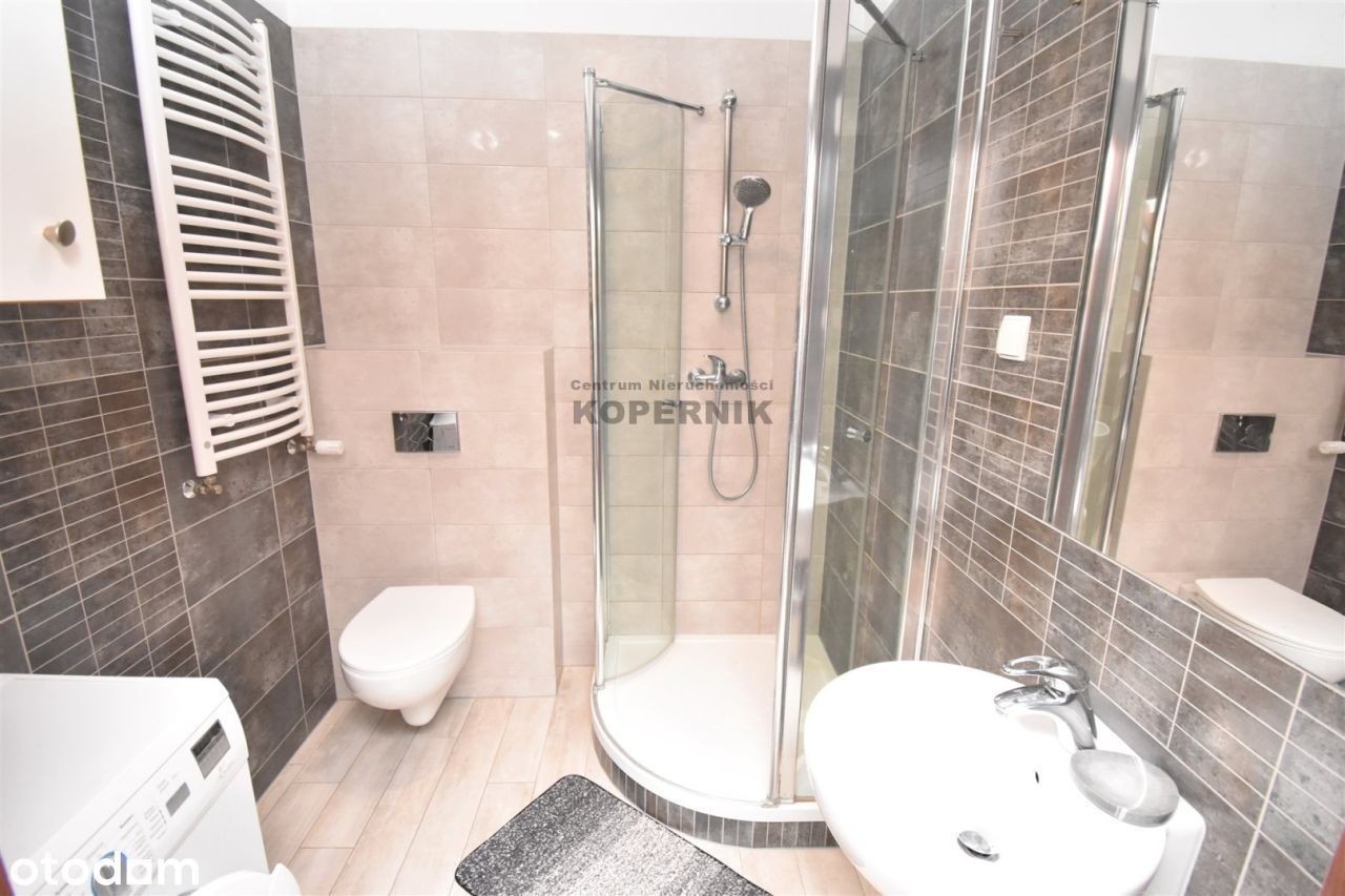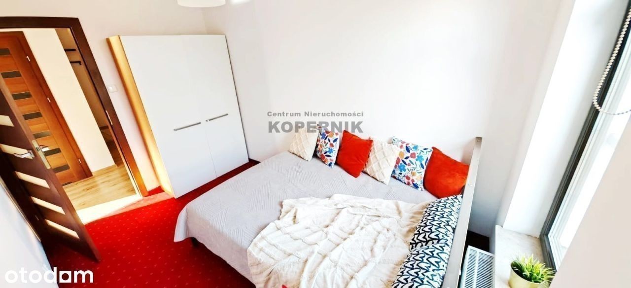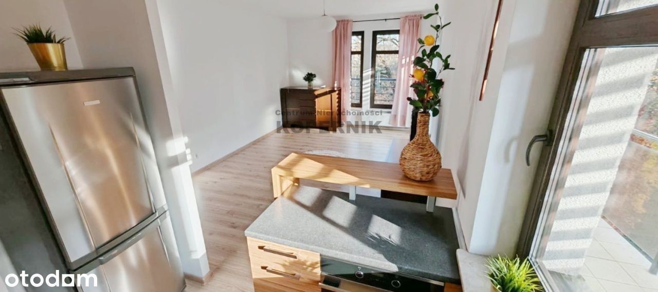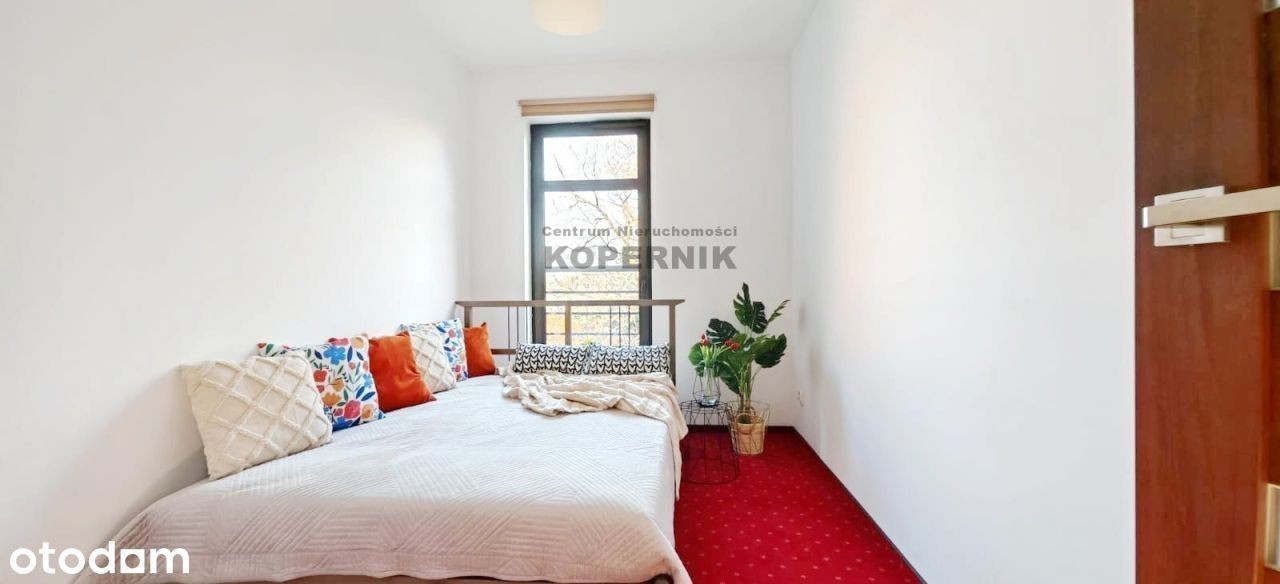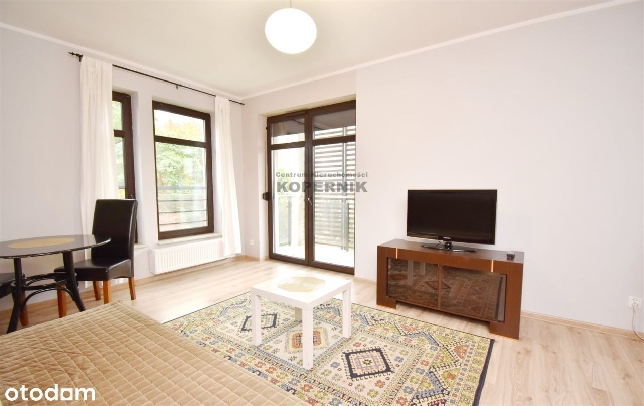 REWELACYJNA OFERTA W SERCU TORUNIA - widok na skwer z przepięknymi drzewami i podświetlony kościół Toruń, ul. Podgórna, osiedle Mokre