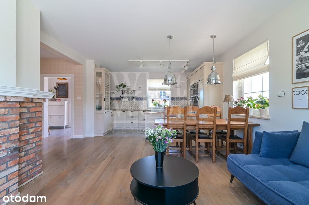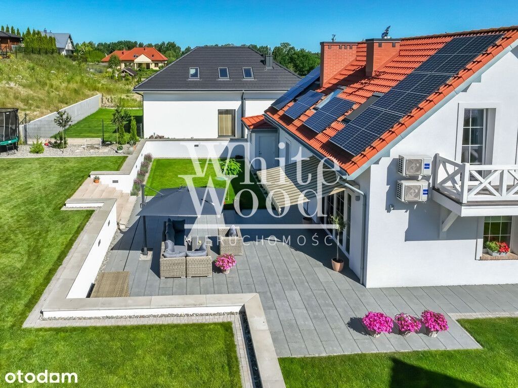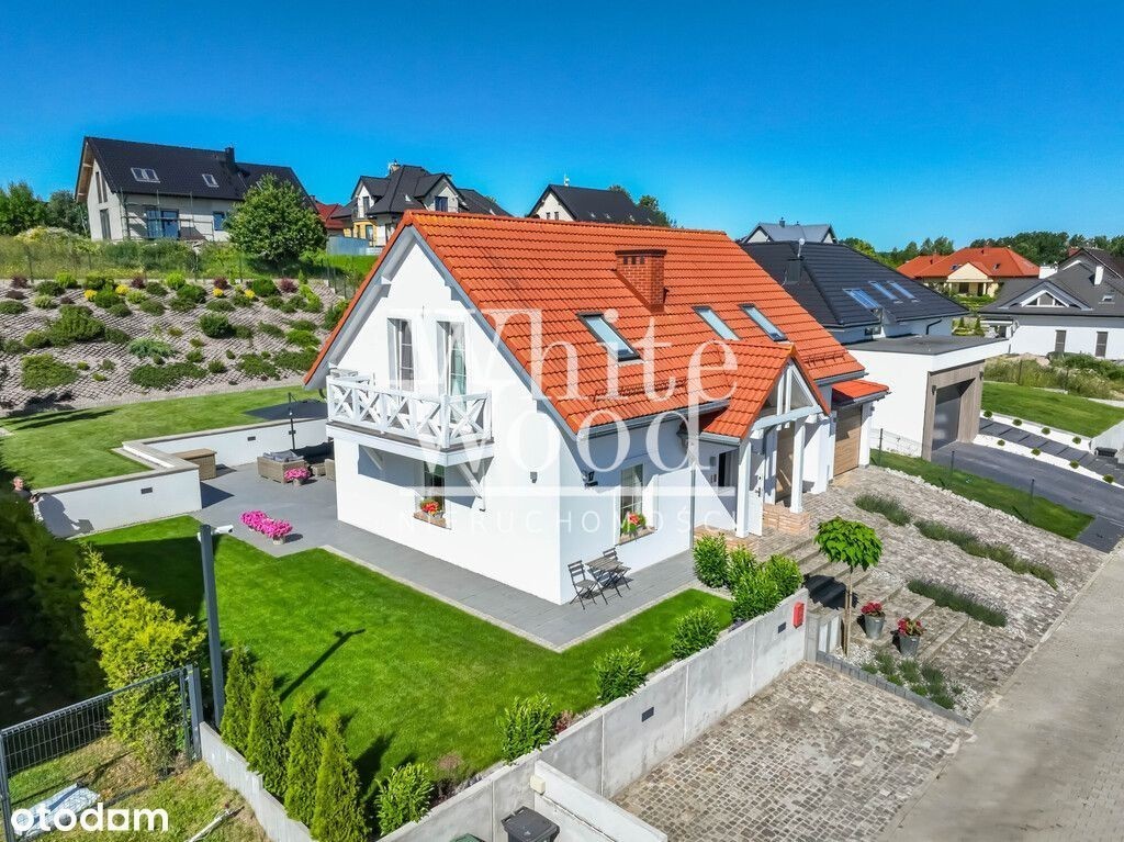Piękny dom wolnostojący nad jeziorem Tuchomskim. Efektowny ogród, dwa garaże, osiedle zamknięte! Lokalizacja: Warzno to miejscowość, która stała się ze względu na urokliwe położenie wśród jezior i terenów zielonych pożądaną lokalizacją do życia. To miejsce zapewnia mieszkańcom doskonałą równowagę między spokojem wiejskiego otoczenia, a dostępem do atrakcji i udogodnień pobliskich, trójmiejskich miast. Ogromnym atutem lokalizacji jest fakt oddanej niedawno do użytku Trasy Kaszubskiej wraz z węzłami Chwaszczyno oraz Koleczkowo, znacznie ułatwiającej i skracającej podróż do Gdańska, Sopotu oraz Gdyni, do której dojedziemy w zaledwie 15 minut. Dzięki temu mieszkańcy Warzna mają możliwość korzystania z bogatej oferty kulturalnej, rozrywkowej i edukacyjnej, jednocześnie zachowując spokój i urok wiejskiego życia. Nieruchomość położona na dużej działce ( 950 m2 ) z pięknie zagospodarowanym ogrodem zorientowanym na stronę południowo - zachodnią. To doskonała przestrzeń do wypoczynku po całym dniu pracy wśród idealnie wypielęgnowanej trawy i skrupulatnie dobranej roślinności. Budynek wolnostojący o klasycznej bryle, wyróżnia się zarówno swoją funkcjonalnością, jak i estetyką. Powierzchnia użytkowa wynosząca 115 m2 spełnia potrzeby rodziny, zapewniając wygodną przestrzeń części dziennej jak i kameralność strefy prywatnej - sypialnianej. - przestronny salon z kominkiem, który stanowi serce domu. Od wejścia wnętrze przytula pastelowymi kolorami. Duże okna tarasowe zapewniają nie tylko doskonałe doświetlenie, ale również bezpośrednie wyjście na zielony ogród. W tej części domu mieści się także w pełni wyposażona, stylowa kuchnia wraz z jadalnią. Dolną łazienkę, dla wygodny mieszkańców, wyposażono w prysznic oraz toaletę. Na poziomie zero zlokalizowano garaż z przejściem do pralni oraz kotłowni. Warto w tym miejscu dodać, że właściciele zrealizowali dodatkowo projekt kolejnego garażu, a zatem komfortowo parkują tu w sumie dwa auta oraz dwa z parkingu tuż przed domem. Niezwykle stylowo zaaranżowana przestrzeń dwóch sypialni, pokoju gościnnego oraz pokoju kąpielowego z wolnostojącą wanną. Z balkonów rozpościera się obłędny widok na pobliskie jezioro. Funkcję przechowalnictwa spełnia oddzielna, pojemna garderoba z oknem. Nie sposób oprzeć się klimatowi tego domu. Przyjemne barwy drewnianej podłogi oraz schodów i podsufitowych desek, w połączeniu z kolorami i wzorami ścian, przywołują na myśl ducha angielskich, gustownych wnętrz. O ciepło zimą ( poza kominkiem ) dba ogrzewanie podłogowe dolnej części domu oraz łazienek, latem natomiast komfortowe temperatury zapewni wysokiej klasy klimatyzacja Haier ( która pełni także funkcje dogrzewania). Pod kątem wizualnym, technicznym oraz funkcjonalnym to miejsce absolutnie bez zastrzeżeń! Widoczna jest tu dbałość właścicieli o każdy detal. Śmiało trzeba przyznać, że można wprowadzić się tu dosłownie od ręki! Nieruchomość w pełni podłączona do mediów: gaz, prąd, kanalizacja, Internet. Dla komfortu i bezpieczeństwa mieszkańców osiedla na wjeździe zastosowano zamykaną bramę oraz monitoring. Dodatkowo budynek chroniony alarmem. Dojazd do osiedla i posesji: droga asfaltowa + kostka brukowa. Przedstawione powyżej propozycje nie stanowią oferty handlowej w rozumieniu przepisów prawa, lecz mają charakter informacyjny. Wszelkie dane dotyczące nieruchomości uzyskano na podstawie oświadczeń właściciela. Zespół White Wood dokłada starań, aby każda z ofert była rzetelnie sprawdzona i aktualna. Oferta wysłana z programu dla biur nieruchomości ASARI CRM ()