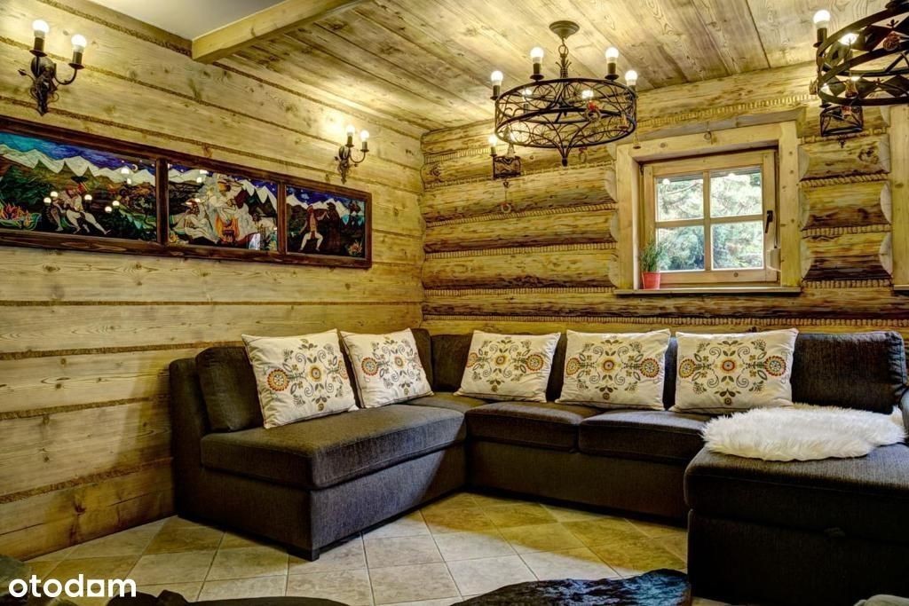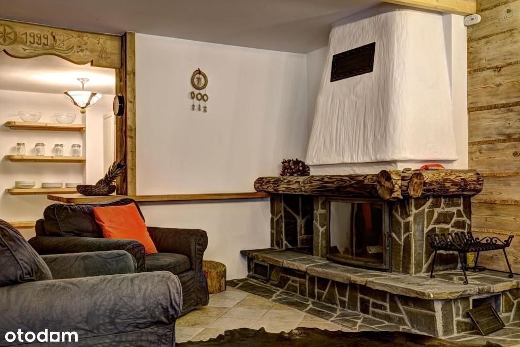 Urokliwe mieszkanie w budynku wielorodzinnym położone na parterze. Budynek wchodzi w skład osiedla domów tego samego rodzaju (Wspólnota mieszkaniowa). Teren ogrodzony zabezpieczony automatyczną bramą. Apartament o łącznej powierzchni 95m2 składa się z przestronnego salonu z półotwartą kuchnią, sypialnią, łazienką, oraz holu, w którym usytuowana jest sauna. Całość urządzona w góralskim stylu. Dla jeszcze lepszego klimatu kominek na biopaliwo. Całe wyposażenie widoczne na zdjęciach jest wliczone w cenę zakupu.