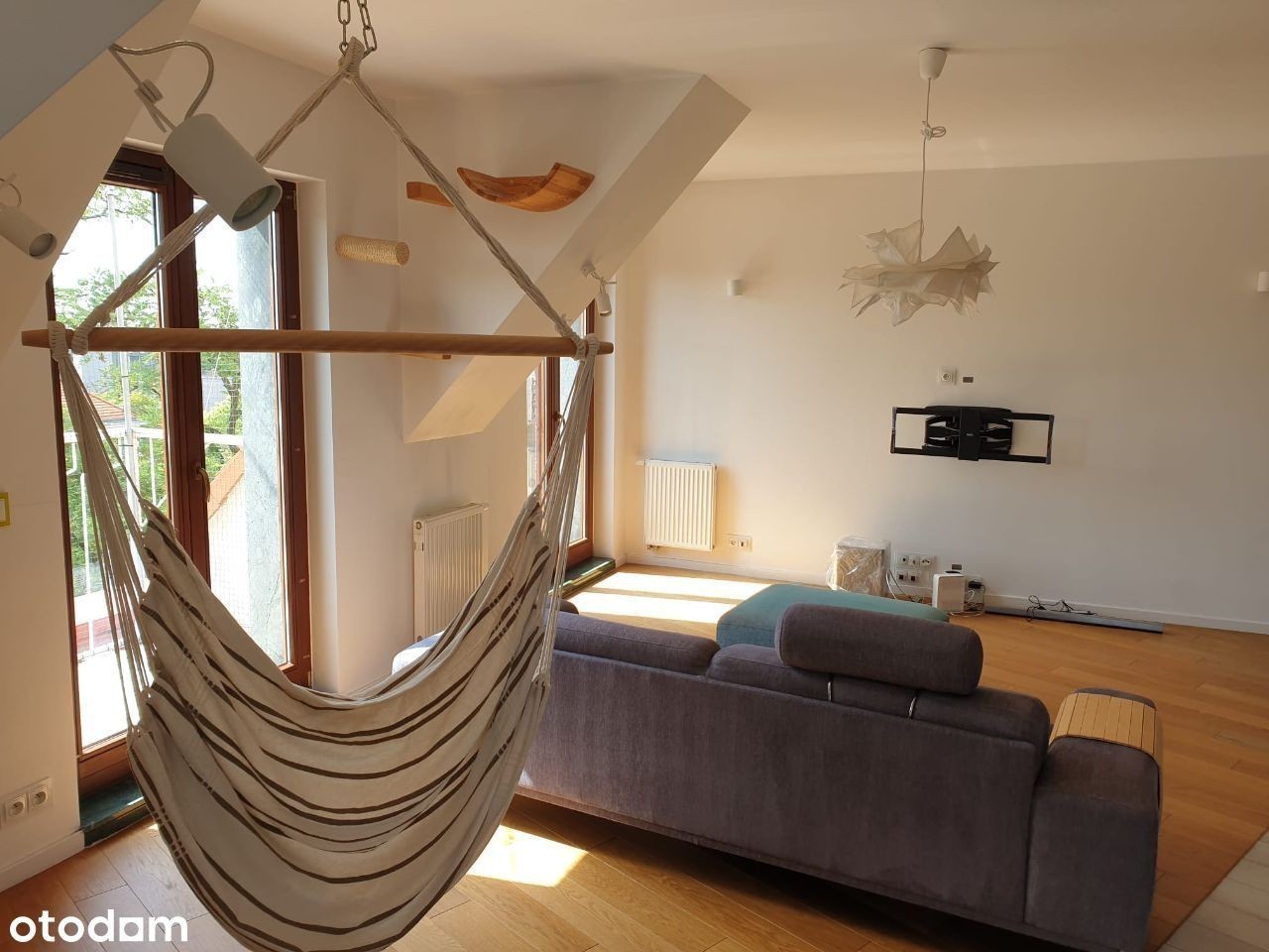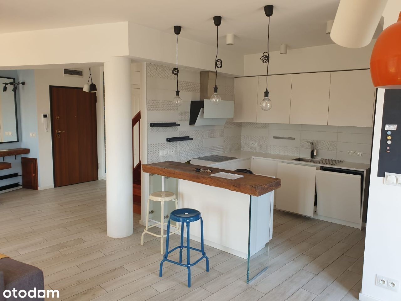Do wynajęcia luksusowy apartament przy pl. Powstańców Śląskich. Apartament posiada 2 poziomy i mieści się na najwyższym 5 piętrze budynku z 2008 r. 1 poziom - kuchnia, toaleta, salon 30 m2, 3 niewielkie balkony, pomieszczenie gospodarcze