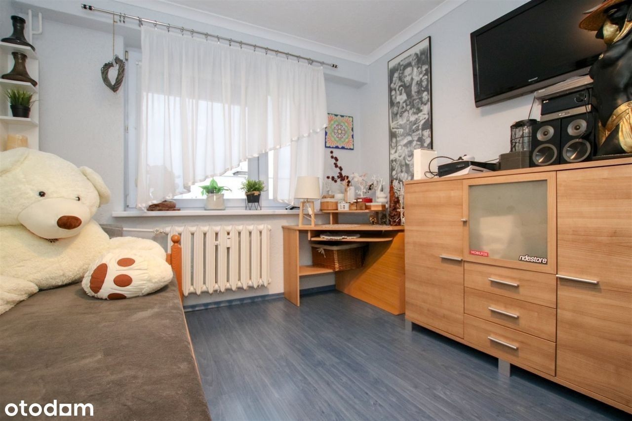 Przestronna i gotowa do zamieszkania nieruchomość 3-pokojowa o powierzchni 61,80 m2 z balkonem na Osiedlu Niepodległości przy ulicy Małcużyńskiego w Słupsku. Zapraszam do zapoznania się z ofertą sprzedaży mieszkania o powierzchni 61,80 m², które znajduje się na czwartym piętrze budynku położonego w jednym z najbardziej pożądanych miejsc w Słupsku - na Osiedlu Niepodległości przy ulicy Małcużyńskiego. Mieszkanie usytuowane jest w spokojnej, zielonej okolicy, co zapewnia ciszę i komfort przyszłym mieszkańcom. - salon - sypialnia - pokój - kuchnia - łazienka - toaleta - korytarz. Układ pomieszczeń Mieszkanie oferuje doskonały, przemyślany układ pomieszczeń, co wpływa na jego funkcjonalność. Składa się z trzech przestronnych pokoi, które są w pełni rozkładowe, zapewniając wygodę i możliwość swobodnego urządzenia wnętrza. Każdy z pokoi jest jasny i ustawny, co umożliwia przyszłym właścicielom pełną dowolność aranżacyjną. Kuchnia jest oddzielnym, zamkniętym pomieszczeniem, które zostało wyposażone w zabudowę kuchenną oraz sprzęt AGD. Dzięki temu można komfortowo przygotowywać posiłki a także usiąść przy wysokim stoliku z hokerami. Łazienka po remoncie oraz toaleta są osobnymi pomieszczeniami, co zwiększa funkcjonalność mieszkania i sprawia, że jest ono wygodne w użytkowaniu. To szczególnie praktyczne rozwiązanie dla rodzin oraz osób ceniących sobie komfort i prywatność. W przedpokoju znajduje się duża, przesuwna szafa na odzież wierzchnią, dzięki czemu nie ma niepotrzebnego bałaganu w tym pomieszczeniu. Największy pokój pełni funkcję salonu oraz jadalni. Dzięki swoim wymiarom jest tu miejsce na strefę wypoczynkową na wygodnej kanapie przed telewizorem, a także spełnia funkcję jadalni dzięki dużemu stołowi z krzesłami. Idealna przestrzeń zarówno do codziennego odpoczynku, jak i do spotkań towarzyskich. Z salonu prowadzi wyjście na duży balkon od strony zachodniej, który jest dodatkowym atutem tego mieszkania. Balkon jest na tyle przestronny, że można wygospodarować na nim miejsce na stolik kawowy, krzesła lub niewielki ogródek balkonowy. To idealne miejsce do relaksu na świeżym powietrzu, przy filiżance kawy lub herbaty. Mieszkanie jest sprzedawane z wyposażeniem. Dodatkowe pomieszczenie Do mieszkania przynależy duża piwnica, co zapewnia dodatkową przestrzeń do przechowywania rzeczy sezonowych, sprzętu sportowego, rowerów i innych przedmiotów. Klatka schodowa jest estetyczna i zadbana, a także zabezpieczona domofonem, co podnosi bezpieczeństwo mieszkańców. Dla właścicieli samochodów przewidziano wygodne miejsca parkingowe przed budynkiem. Doskonała lokalizacja dla rodzin z dziećmi Położenie mieszkania w tej lokalizacji gwarantuje pełen dostęp do infrastruktury. W pobliżu znajdują się liczne sklepy, punkty usługowe, szkoły, przedszkola oraz tereny zielone. Spokojna okolica sprzyja relaksowi i wypoczynkowi, a jednocześnie zapewnia bliskość wszelkich niezbędnych udogodnień. Bliskość komunikacji miejskiej oraz łatwy dostęp do głównych arterii miasta umożliwiają szybkie dotarcie do centrum oraz innych części Słupska. To duży atut zarówno dla osób pracujących, jak i dla rodzin z dziećmi. To mieszkanie stanowi wyjątkową okazję dla osób, które szukają nieruchomości do urządzenia według własnych upodobań i gustu. Dzięki swojej dużej powierzchni, funkcjonalnemu rozkładowi, estetycznej klatce schodowej z domofonem, dodatkowej przestrzeni w postaci piwnicy oraz dogodnym miejscom parkingowym, nieruchomość ta posiada ogromny potencjał zarówno inwestycyjny, jak i do komfortowego życia na co dzień. Dodatkowe informacje: - stan prawny - spółdzielczo-własnościowe prawo do lokalu, - mieszkanie dwustronne, w pełni rozkładowe, - mieszkanie sprzedawane z wyposażeniem, - czynsz na rzecz Spółdzielni Mieszkaniowej Kolejarz - ok. 850 zł (ciepła i zimna woda, ogrzewanie, fundusz remontowy, wywóz nieczystości, sprzątanie klatek, wynagrodzenie zarządcy, eksploatacja, piwnica, gaz, podatek od nieruchomości) - ogrzewanie oraz ciepła woda z sieci miejskiej, - wszystkie okna PCV, - przynależna do mieszkania piwnica, - ogólnodostępne miejsca parkingowe wokół bu