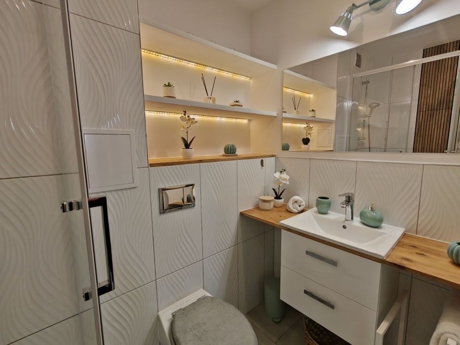 Doskonała, dobrze skomunikowana lokalizacja: Niegocińska 14 4 minuty pieszo od OSiR Moktów z pływalnią i sauną oraz do Szkoły Podstawowej nr 270, 2 minuty pieszo do Przedszkola, 11 minut pieszo od Galerii Mokotów, 10 minut komunikacją miejską do Metra Służew lub 20 minut pieszo, 12 minut pieszo do Wydziału Zarządzania Uniwersytetu Warszawskiego, 6 minut samochodem do Lotniska Chopina, 16 minut samochodem do Dworca Centralnego, Parking: Do dyspozycji mieszkańców rotacyjny parking pod budynkiem, w pobliżu parkingi osiedlowe płatne oraz Społecznie Strzeżone. Budynek: Budynek z 1969 roku, z betonu, ogrzewanie miejskie, okna plastikowe. W bloku oraz mieszkaniu została wymieniona instalacja elektryczna. Spółdzielnia co roku sukcesywnie przeprowadza kolejne remonty. Dwie windy. Mieszkanie 49,39 m² (rzut mieszkania na zdjęciu) -> 18,06 m² Salon z kuchnią na wymiar -> Dwie sypialnie 10,81 m² oraz 13,12 m² -> Łazienka 3,03 m² -> piwnica ok 3m² -> balkon 1.22m² W całym mieszkaniu zostały wyrównane podłogi oraz położone nowe panele podłogowe na wyciszającym podkładzie. W cenie mieszkania wyposażenie: Nowoczesne meble kuchenne z systemami Blum. Zmywarka w zabudowie, cicha lodówka marki Toschiba, piekarnik marki Elektrolux. W łazience nowa, elegancka kabina prysznicowa i pralka. W większej sypialnie szafa wnękowa na wymiar z przemyślanym wnętrzem - pomieści nie tylko odzież, ale i sprzęty (odkurzacz, deskę do prasowania, suszarkę), łóżka z pojemnymi przestrzeniami do przechowywania. Do mieszkania został doprowadzony ultraszybki światłowód schowany w skrzynce przy wejściu, gdzie można podłączyć router (operator Orange), zapewniający stabilne połączenie - kluczowe dla pracy zdalnej, streamingu i rozrywki. Niski czynsz 782zł przy 3 osobach zameldowanych. Całość wyposażenia w cenie mieszkania 936 000 zł STAN PRAWNY: SPÓŁDZIELCZE WŁASNOŚCIOWE PRAWO DO LOKALU Z KSIĘGĄ WIECZYSTĄ. Brak obciążeń. Kupno bezpieczne - możliwość kredytowania (hipoteka na bank). Zapraszam do Kontaktu Zadzwoń już dziś, aby umówić się na prezentację! SPRZEDAŻ BEZPOŚREDNIA UWAGA DLA POŚREDNIKÓW: Uprzejmie dziękujemy za współpracę. Prosimy o NIEkontaktowanie się w sprawie oferty i NIEkopiowanie treści ogłoszenia oraz zdjęć. Sprzedaż prowadzona jest wyłącznie bezpośrednio.