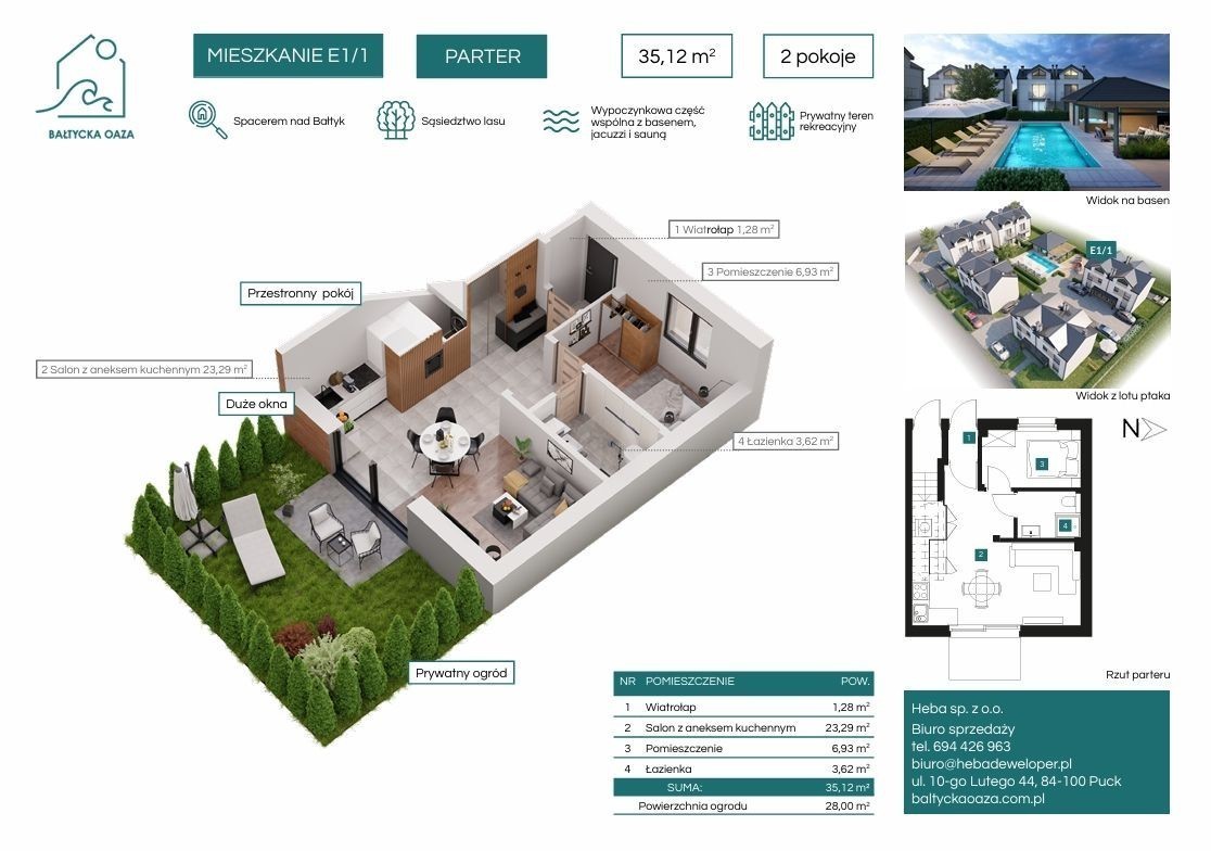 2-pokojowe mieszkanie numer E11 na parterze w budynku E w Inwestycji Bałtycka Oaza Dewelopera HEBA Nowoczesne udogodnienia Kompleksowe wykończenie