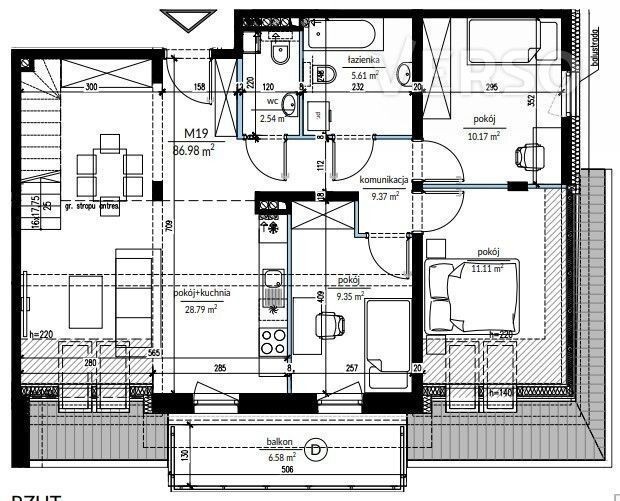 Lokalizacja: Wrocław, Ołtaszyn, Brylantowa Opis: Na sprzedaż komfortowe mieszkanie (M19), rozkładowe, 4 pokojowe o powierzchni użytkowej 86,98 mkw., usytuowane na 2 piętrze w nowym, kameralnym budynku wielolokalowym z windą który zostanie oddany do użytku najpóźniej w lutym 2025. Mieszkanie składa się z salonu połączonego z otwartą kuchnią (o powierzchni 28,79 mkw.), ustawnej sypialni z oknami połaciowymi (11,11 mkw.), osobnych 2 pokoi (9,35 i 10,17 mkw.), łazienki z WC (5,61 mkw.), osobnej toalety (2,54 mkw.), komunikacji (9,37 mkw.) oraz antresoli (10,04 mkw.) Do nieruchomości przynależy balkon (6,58 mkw.). Ekspozycja północno-wschodnia. Ogrzewanie i ciepła woda za pomocą pieca dwufunkcyjnego z zamkniętą komora spalania, winda z garażu, dźwig przystosowany dla osób niepełnosprawnych, parapety z konglomeratu. Wszystkie mieszkania wyposażone w rolety zewnętrzne elektryczne. Każde mieszkanie z wyjściem pod instalację klimatyzacji. Inwestycja to kameralny i elegancki budynek mieszkalno-usługowy (20 mieszkań i 7 lokali usługowych na parterze) zlokalizowany na willowym osiedlu Ołtaszyn. Inwestycję charakteryzuje położenie w spokojnej i bezpiecznej okolicy w bliskiej odległości od centrum miasta, jak również do obwodnicy Wrocławia czy autostrady A4. Atuty: Kameralne i ciche osiedle, inwestycja położona w sąsiedztwie niskiej zabudowy domów wielorodzinnych, miejsce dobrze skomunikowane z pozostałą częścią miasta, bliskość terenów zielonych, szybki dojazd zarówno do AOW, A4 jak i do centrum miasta. Pełna infrastruktura. Przystanek autobusowy. Cena: 930 000 PLN do negocjacji ! Polecam i zapraszam do kontaktu ! Kontakt: Michał Zagórski |