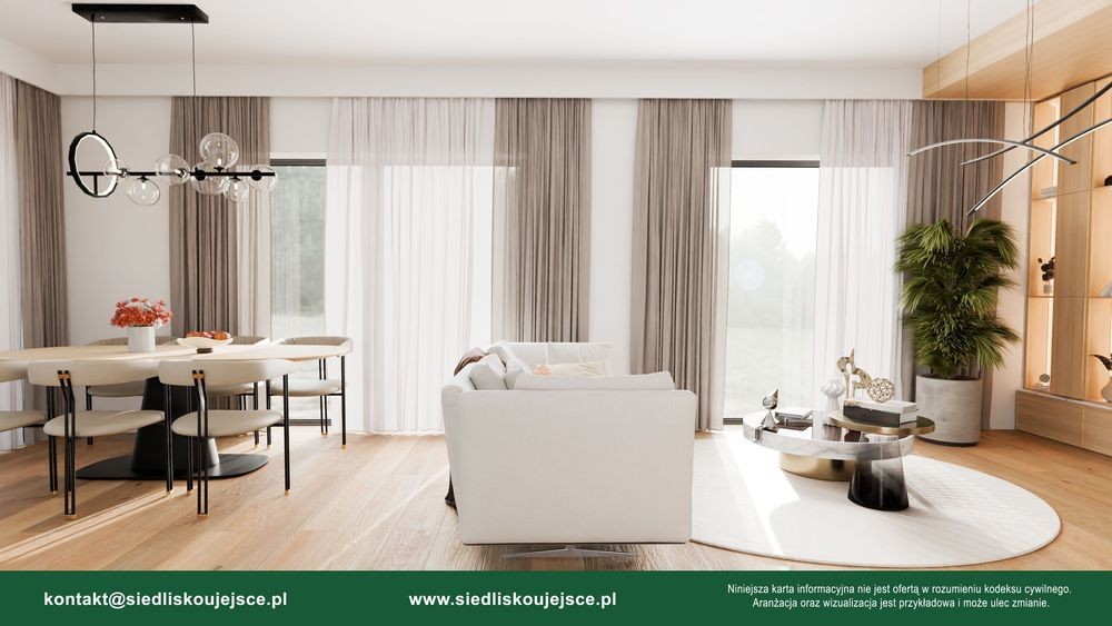 Szukasz miejsca, gdzie rano słyszysz ptaki zamiast głośnego otoczenia, a wieczorem możesz usiąść z kawą na tarasie i po prostu… oddychać? To właśnie tutaj - w spokojnej, zielonej dzielnicy Dąbrowy Górniczej - Ujejscu znajdziesz Twój wymarzony dom. Dąbrowa Górnicza - Ujejsce to jedna z najbardziej pożądanych dzielnic Dąbrowy Górniczej.! BEZ POŚREDNIKÓW! KUPUJĄCY ZWOLNIONY Z PODATKU PCC ! Na sprzedaż oferujemy wyjątkowy dom jednorodzinny dwulokalowy (typu bliźniak) - oferta dotyczy jednego lokalu (do wyboru: segment prawy lub lewy). Nieruchomość położona jest w atrakcyjnej i spokojnej dzielnicy Dąbrowy Górniczej, co gwarantuje komfort codziennego życia w otoczeniu zieleni, a jednocześnie dogodny dostęp do miejskiej infrastruktury. Ten nowoczesny i przestronny dom to idealna propozycja dla rodzin poszukujących funkcjonalnych rozwiązań i wysokiego standardu. Wnętrze obejmuje aż pięć ustawnych pokoi, przestronny salon oraz dwie komfortowe łazienki, zaprojektowane z myślą o wygodzie domowników. Dodatkowym atutem jest duży taras oraz ogród, które tworzą doskonałą przestrzeń do relaksu, spotkań z bliskimi i spędzania czasu na świeżym powietrzu. - Powierzchna użytkowa domu wraz z garażem wynosi 146,92 m2. - Powierzchnia zagospodarowanej działki wraz z wybrukowanym podjazdem: około 370 m2 - dla Segmentu PRAWEGO, dla Segmentu LEWEGO istnieje możliwość dokupienia powierzchni działki. W bezpośrednim sąsiedztwie zabudowa jednorodzinna. Lokalizacja zapewnia doskonałą komunikację z centrum miasta oraz całą aglomeracją śląską. W pobliżu znajdują się drogi wylotowe oraz trasa ekspresowa S1, dzięki której dojazd do centrum Katowic zajmuje jedynie około 25 minut, a do Międzynarodowego Portu Lotniczego Katowice-Pyrzowice - zaledwie 15 minut. Dom położony jest w miejscu, które łączy spokój z doskonałą komunikacją. Wszystko, czego potrzebujesz, masz w zasięgu kilkunastu minut: - do Pogorii IV dotrzesz w 3 minuty, - do centrum Dąbrowy Górniczej w 10 minut, - do lotniska w Pyrzowicach w 15 minut, - a do centrum Katowic w zaledwie 25 minut. Parter składa się z przestronnego salonu z jadalnią oraz kuchnią, łazienki, gabinetu, wiatrołapu, pomieszczenia technicznego, garażu, schodów na piętro, schowka pod schodami. Dodatkowo na parterze znajduje się przestronny taras z możliwością zadaszenia lub wykonania ogrodu zimowego - letniego z widokiem na piękno natury. Piętro składa się z 4 sypialni oraz dużej łazienki i korytarza. BUDYNEK W STANIE DEWELOPERSKIM O PODWYŻSZONYM STANDARDZIE: Oferujemy dom o wysokim standardzie wykonania m.in: • domy posadowione na monolitycznej płycie fundamentowej; • pompa ciepła zewnętrzna, która posłuży do ogrzewania budynku oraz ciepłej wody użytkowej; • drzwi zewnętrzne energooszczędne antywłamaniowe; • brama garażowa segmentowa automatyczna; • płytki gresowe w pomieszczeniu technicznym oraz garażu; • konstrukcja dachu dostosowana pod instalację paneli fotowoltaicznych; • dach pokryty blachodachówką; • zagospodarowana działka wraz z wykończonym podjazdem, miejscem do składowania odpadów, posianą trawą, opaską wokół budynku, nasadzeniami, taras wykończony płytkami betonowymi; • ogrodzenie działki wraz z podwaliną betonową; • zbiornik na wodę opadową; • dren wraz ze studniami drenarskimi; • bezodpływowy zbiornik na nieczystości ciekłe; • duże przeszklenia firmy ALUPLAST NEO 76 AD - szyby 3-komorowe wraz z nawietrzakami w kolorze od zewnątrz: AP75 DĄB SHEFFIELD JASNY, białe od wewnątrz; • szczelny montaż okien za pomocą doszczelnień w postaci taśm zewnętrznych i wewnętrznych; • przesuwne okno tarasowe w salonie w systemie PSK; • stalowe parapety zewnętrzne z blachy powlekanej; • konglomeratowe parapety wewnętrzne; • miejsce na parterze pod kominek; • zsyp na ubrania do pralni; • nowoczesna elewacja wraz z balustradami francuskimi i przeszkleniami; • elewacja ocieplona styropianem grafitowym 20 cm i wykończona tynkiem silikonowym wraz z dekoracyjnymi wstawkami; • ogrzewanie podłogowe; • grzejnik elektryczny w łazience; • instalacje elektryczne (zakończone białym montażem - gniazdka / włączniki); • wideofon przy drzwiach wejśc