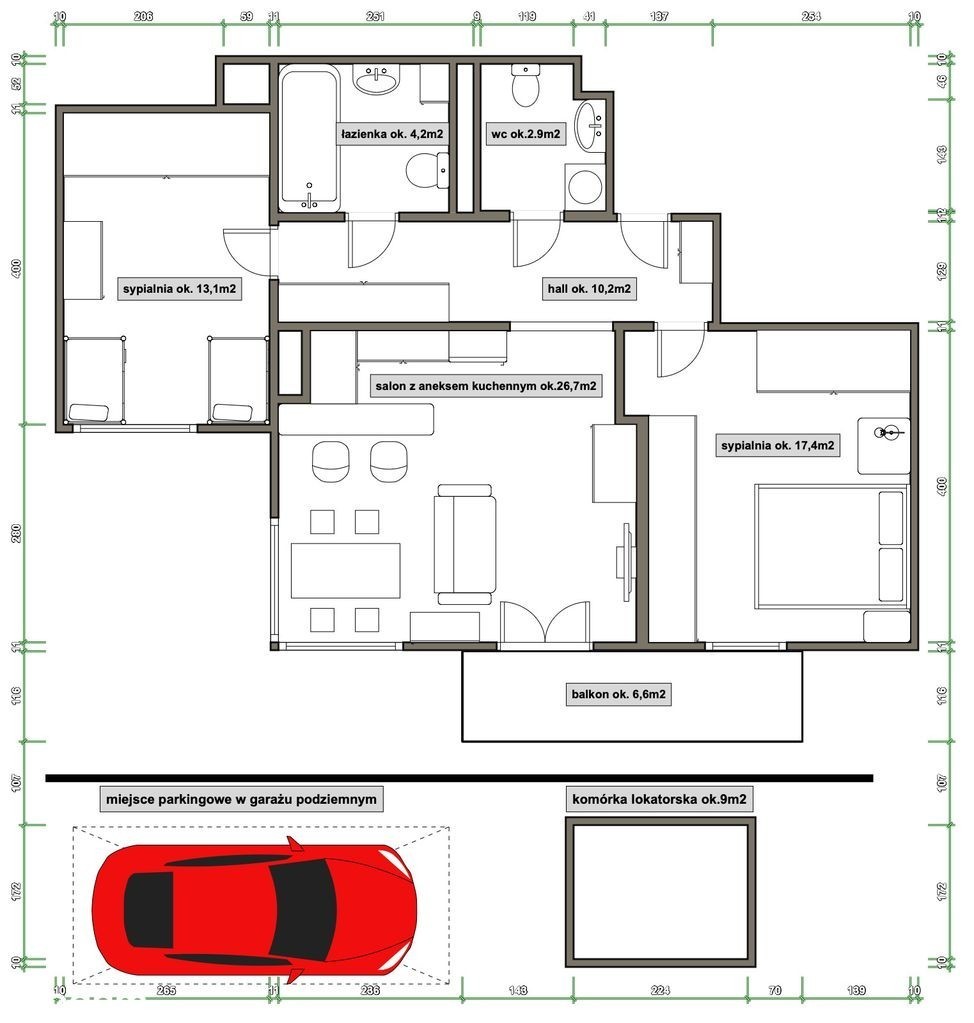 3 pok. | balkon | msc. post. + komórka | Mokotów Przed prezentacją koniecznie zapoznaj się z wirtualnym spacerem po nieruchomości