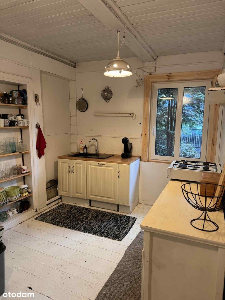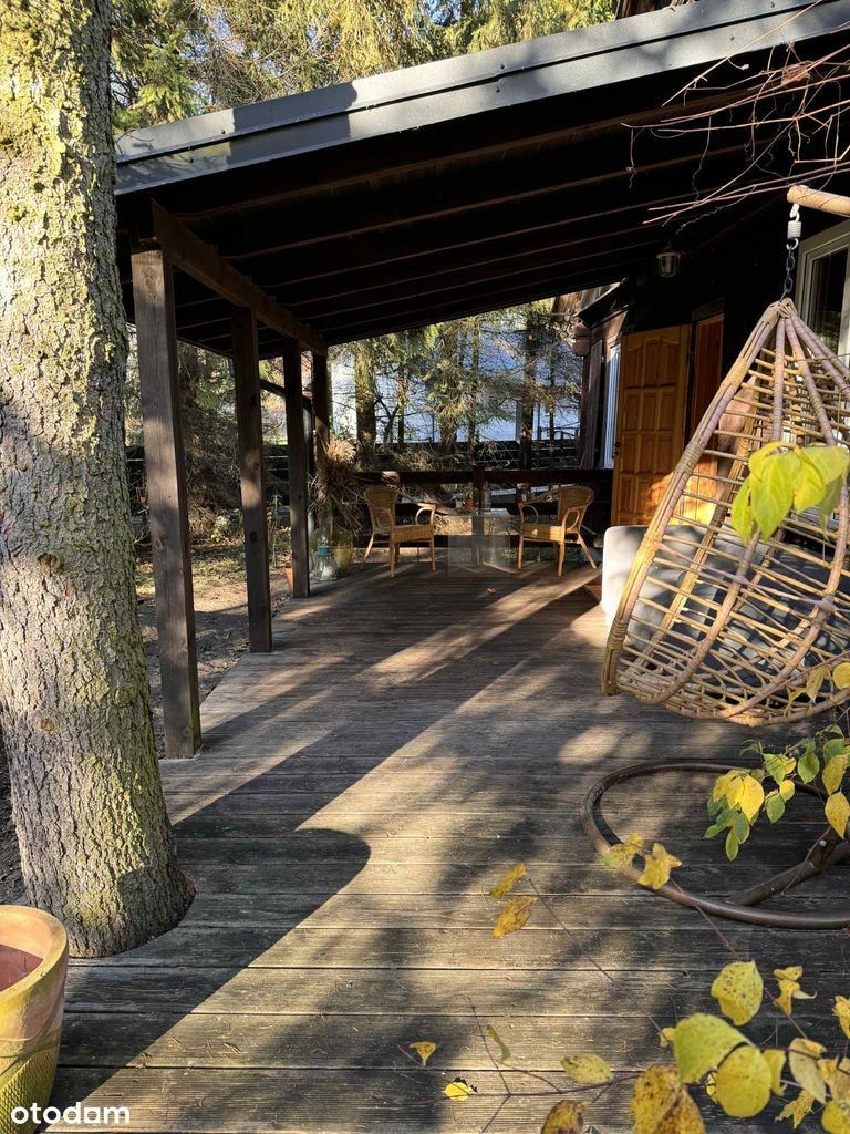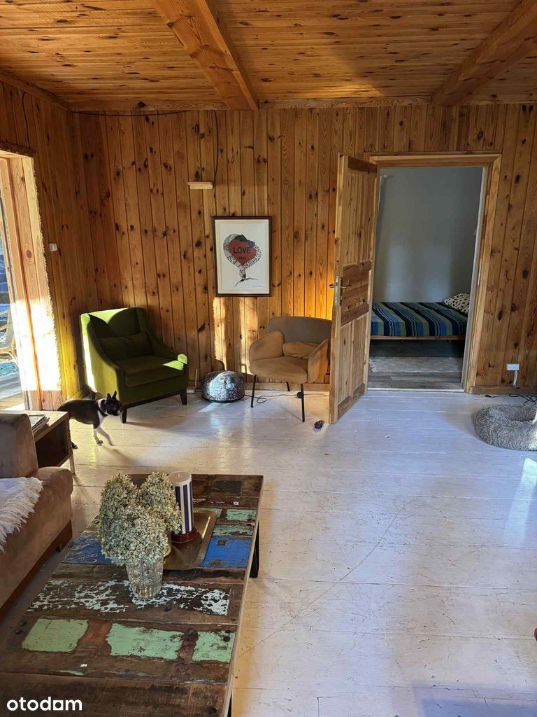 Z wielkim sentymentem wystawiamy na sprzedaż nasz ukochany dom, gdyż przenosimy się w inne miejsce Polski. Jest to przeniesiony z Kurpiów drewniany dom o powierzchni 110m na parterze + drugie tyle na zaadaptowanym poddaszu. Na parterze znajdują się: przestronny salon, hol, 2 sypialnie, kuchnia, łazienka, ganek i taras. Na 1 piętrze bardzo przestrzenne poddasze gotowe na wykończenie. Dach został wymieniony - pozostaje jeszcze do zrobienia izolacja - ale latem już teraz jest to super sypialnia z 2 dodatkowymi łóżkami. Na parterze wszystkie okna wymienione na PCV. Obecnie jest to dom letni, dogrzewany kominkiem, ale można doprowadzić go do całoroczności (my spędzaliśmy w nim czas od kwietnia do końca października). Podłączony kablowy światłowód (bardzo szybki, pracowalismy stad zdalnie). Woda miejska (nie potrzeba studni, ani pompy). Wymieniony płot na nowy. Przestronny garaż, którego używamy jako przestrzeń do przechowywania rzeczy (kajaki, rowery etc.). Do centrum Warszawy jedzie się 50 minut. 3 minuty piechotą od domu plaża nad rzeką Narew gdzie latem kąpiemy się. Mamy 2 kajaki. Dokładny adres to: Holendry, Makowa 2 (gmina Zatory). Wspaniali sąsiedzi i letniskowa zżyta społeczność. Przepiękne otoczenie lasów, rzeki i małych plaż kąpielowych. Kuchnia wymaga remontu. Sprzedamy bez pośredników. Proszę o kontakt telefoniczny (jeśli nie dam rady odebrać w tygodniu w porze pracy, poproszę o przesłanie smsa):