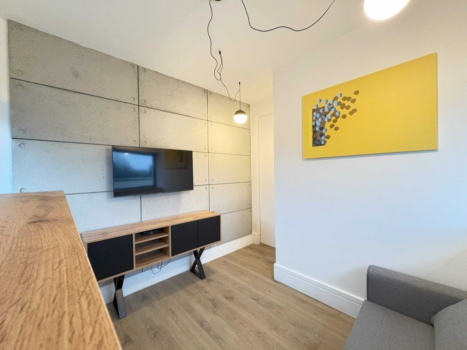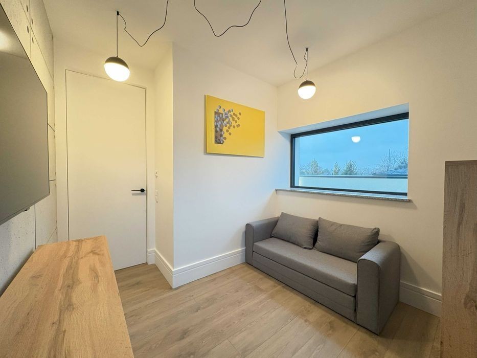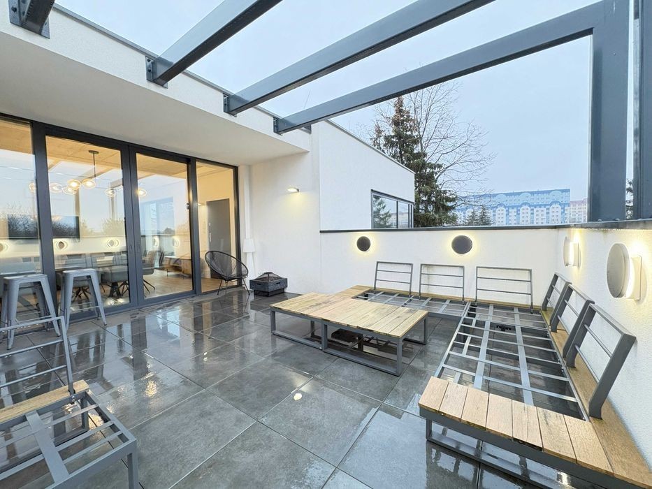 Do wynajęcia trzypokojowy luksusowy apartament z jacuzzi i ogromnym tarasem o powierzchni 85m2 znajdujący się na najwyższym piętrze nowo wybudowanego kameralnego apartamentowca przy ul. Biegańskiego. Mieszkanie składa się z sypialni z wanną, mniejszego pokoju, który może pełnić funkcję pokoju gościnnego bądź miejsca do home office, ogromnego salonu, półotwartej kuchni, łazienki z WC oraz tarasu. Jest w pełni umeblowany i wyposażony w niezbędne sprzęty oraz meble wysokiej jakości z dbałością o wygląd wizualny lokalu. Dla dodatkowego komfortu w mieszkaniu znajduję się również klimatyzacja. Do apartamentu przynależy również komórka lokatorska oraz miejsce parkingowe w cenie najmu. Budynek jest jeszcze w trakcie udoskonalania. Na piętrze -1 ma powstać miejsce zabaw dla dzieci bądź strefa rekreacyjna dla mieszkańców. W budynku znajduję się również pralnio - suszarnia, ponieważ bezpośrednio w mieszkaniu nie ma pralki. Lokalizacja jest świetna dla kogoś kto szuka stylowego apartamentu na obrzeżach miasta. W pobliżu tereny zielone, park im. Adama Mickiewicza, punkty usługowe oraz sklepy spożywcze. OPŁATY: Kwota najmu: 6000 PLN Opłaty administracyjne: 1000 PLN Komórka lokatorska + dwa miejsca + TV wraz z internetem: 500 PLN + prąd i woda. Kaucja: 10 000 PLN ZAPRASZAM NA PREZENTACJĘ