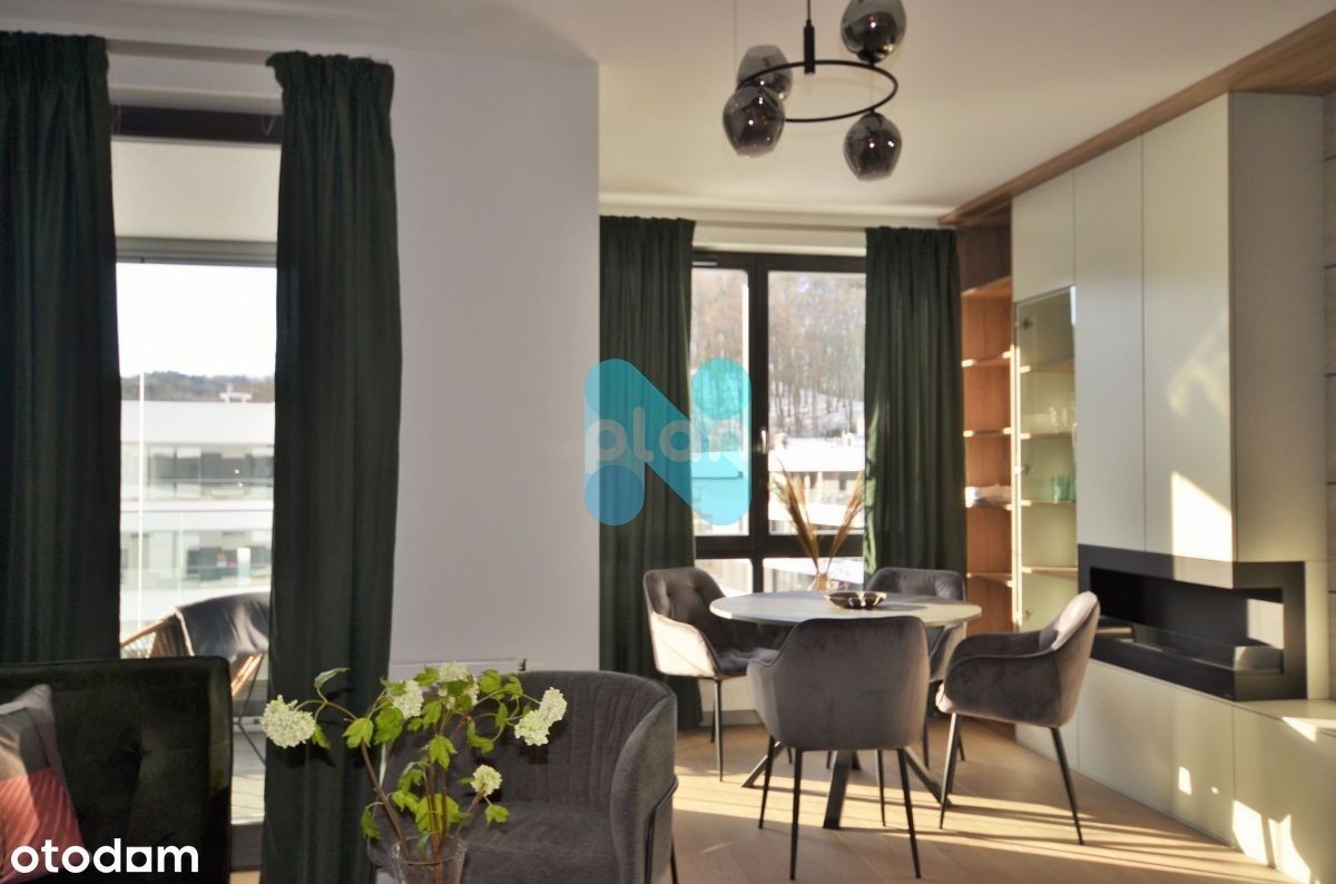 Pięknie urządzony, słoneczny apartament z przeszkloną dużą loggią z widokiem na las. Położony na osiedlu SILVA zbudowanym przez firmę Invest Komfort, która słynie ze atrakcyjnych projektów i starannego wykonania, części wspólne osiedla są zadbane i obsadzone zielenią. Teren graniczy z Trójmiejskim Parkiem Krajobrazowym, do centrum handlowego Riviera jest 350 m, do plaży i Bulwaru Nadmorskiego 9 min. samochodem, 19 min. pieszo. Mieszkanie składa się z salonu z aneksem kuchennym, sypialni, łazienki i przedpokoju. Okna od strony południowo-zachodniej. Kompletnie umeblowane i wyposażone, w idealnym stanie. W sypialni i holu duże szafy. W cenie najmu miejsce parkingowe w hali garażowej oraz komórka lokatorska. Kaucja 6500 zł, dodatkowe opłaty administracyjno-eksploatacyjne ok. 600 zł miesięcznie plus prąd i Internet. Oferta 11340231 z systemu LocumNet-OnLine.