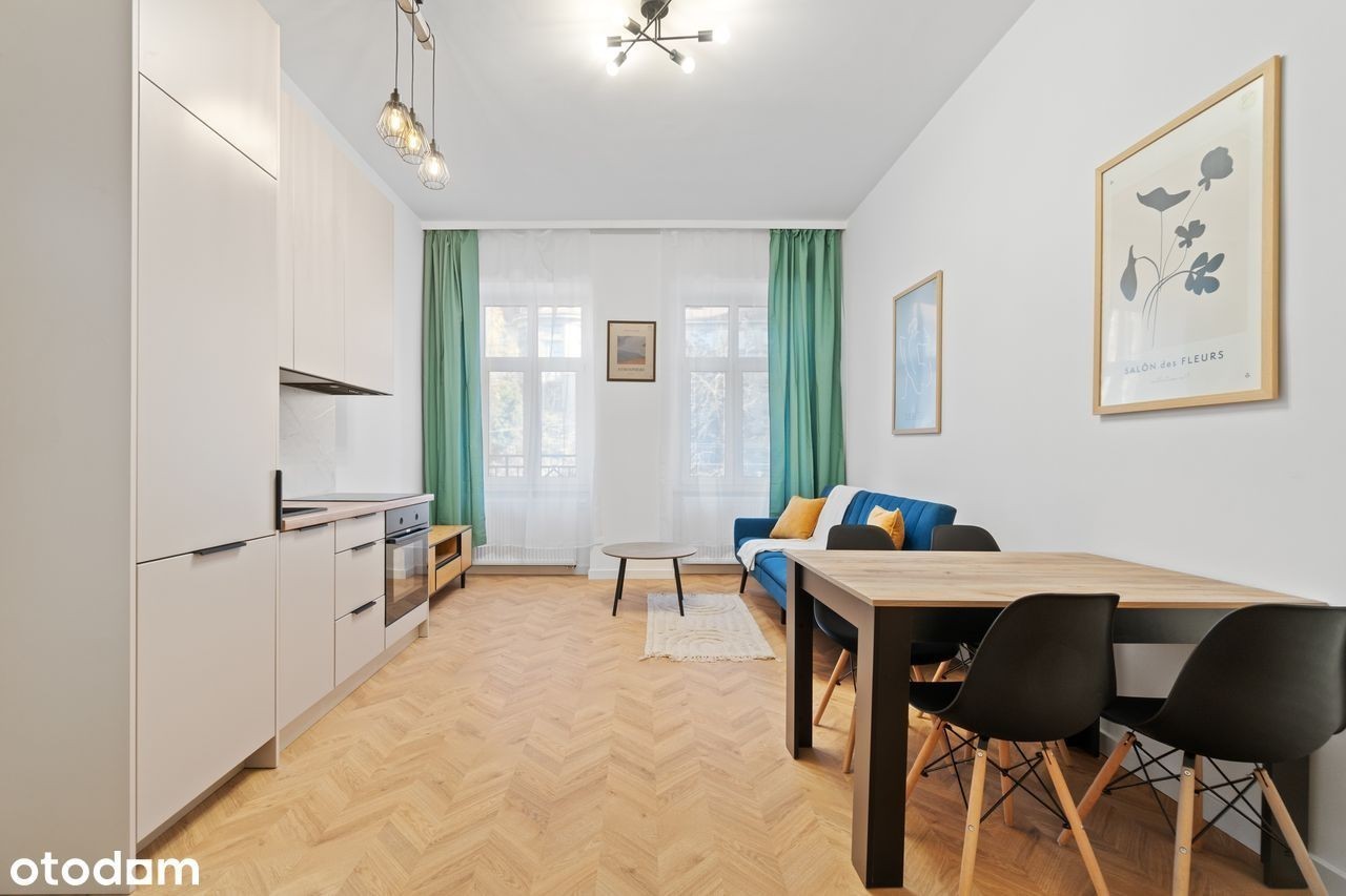 Do wynajęcia przytulna, świeżo wyremontowana kawalerka o wysokim standardzie, położona na 1. piętrze kamienicy przy ul. Traugutta 129 we Wrocławiu. Mieszkanie jest w pełni umeblowane i wyposażone - tak jak na zdjęciach. Kuchnia posiada kompletne wyposażenie AGD, a do dyspozycji najemcy jest szybki internet światłowodowy.