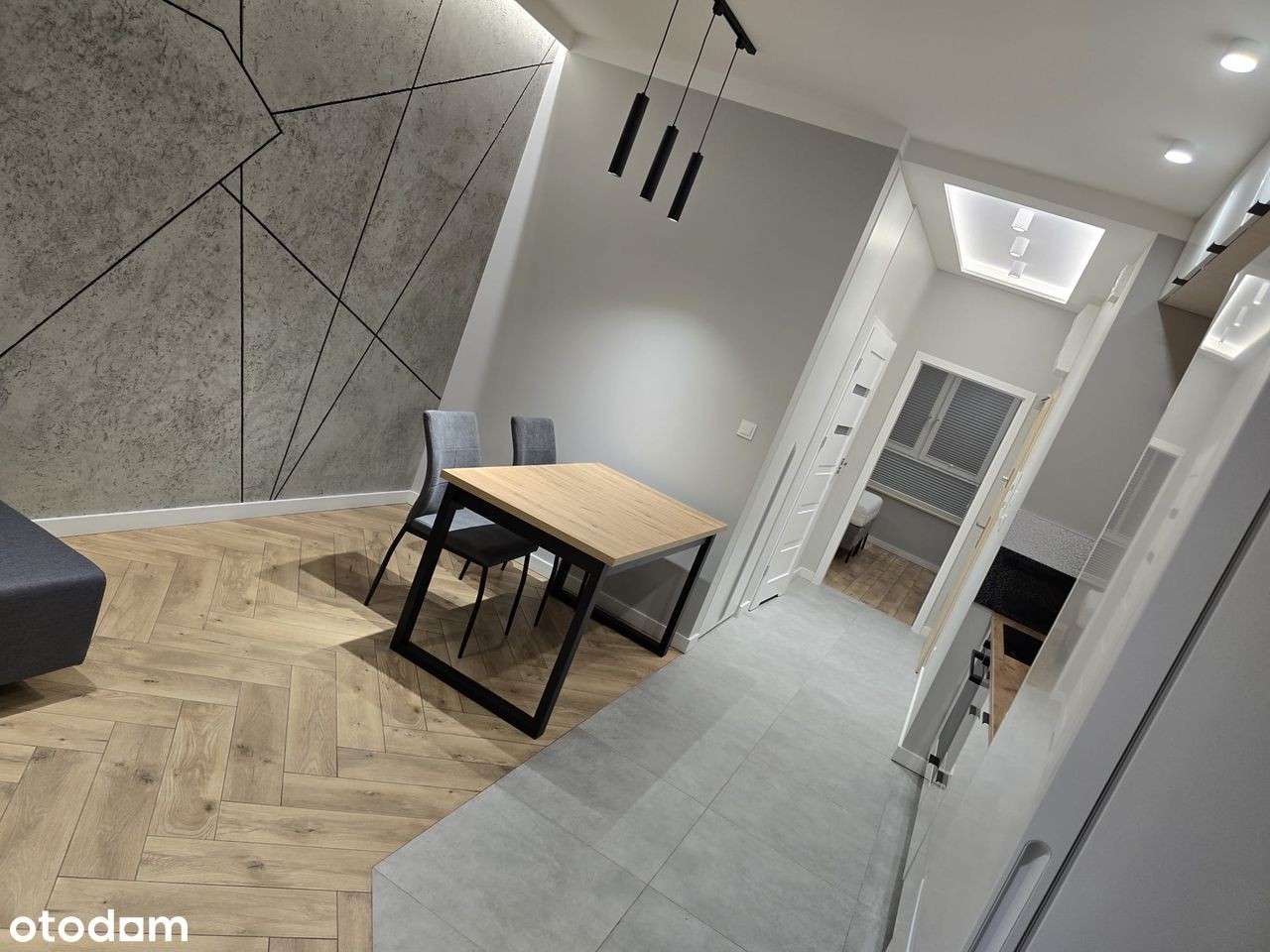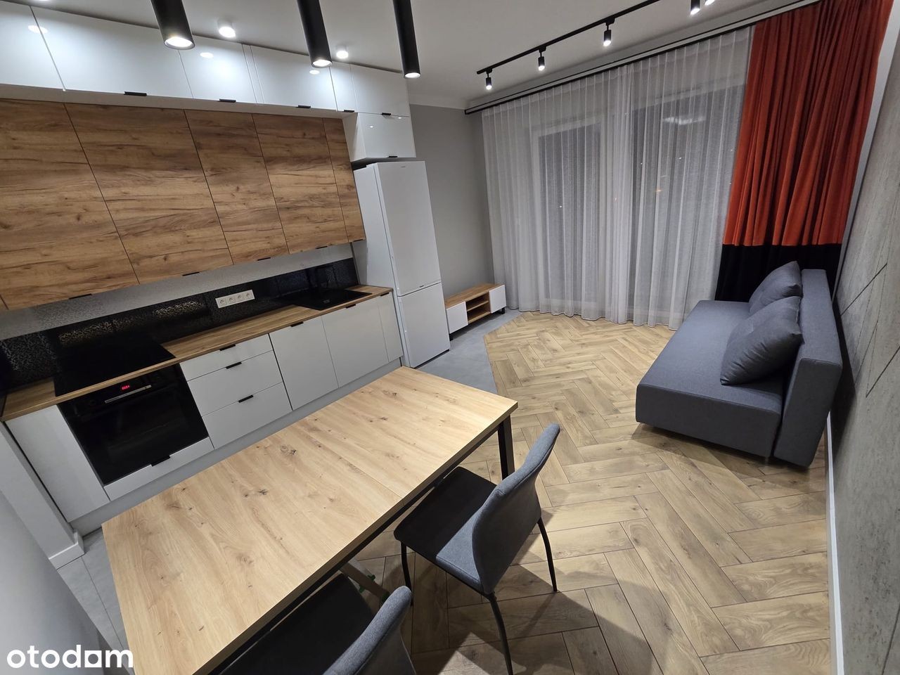 Wynajmę dwupokojowe mieszkanie - świeżo po wykończeniu (oddane do użytkowania w marcu br.). W nowym budynku z pięknym i dużym tarasem (9 m2). Mieszkanie wyposażone w nowe meble - dwa pokoje: