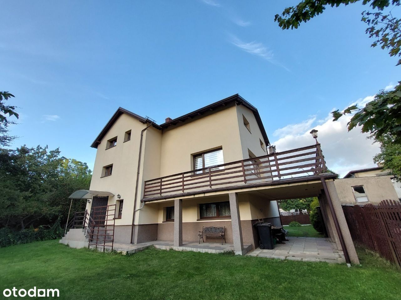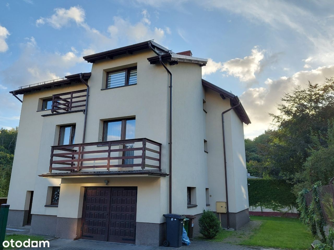 Oferujemy na sprzedaż wygodny dom wolnostojący położony w spokojnej, kameralnej części Orłowa. Budynek piętrowy i całkowicie podpiwniczony z 1990 roku (z cegły) posadowiony działce o powierzchni 602 m2. Piwnice "wyciągnięte" powyżej gruntu dzięki czemu pomieszczenia znajdujące się w przyziemiu są widne. W tej części domu jest duży garaż z kotłownią, toaleta i pomieszczenia gospodarcze. Na posadzce terakota. Na kolejnej kondygnacji jest pokój dzienny o powierzchni około 34,5 m2 z wyjściem na taras ok. 25 m2, kuchnia z jadalnią 25,40 m2, obszerny korytarz i wc. W hallu pod schodami szafa. Pokój dzienny położony jest nieco niżej - schodzi się do niego po dwóch stopniach. Okna i taras są od strony południowo - zachodniej, pokój jest świetnie doświetlony. Kuchnia jest wygodna i ustawna - ma balkon o powierzchni ok. 6 m2. Na kolejną kondygnację prowadzą bardzo solidne drewniane schody. Na piętrze (wg planów "poddaszu") znajdują się trzy sypialnie o powierzchniach: 25,40 m2 + 18, 90 m2 + 16,90 m2, łazienka z oknem dachowym 6,80 m2 i wygodny hall. W największym pokoju jest balkon. W łazience jest wanna, pozostawiono przyłącza umożliwiające wstawienie dodatkowo kabiny prysznicowej. Na podłogach w pokojach i korytarzach są deski. Dom był etapami modernizowany. W 2007 roku wymieniono okna i wyremontowano dach - między innymi został docieplony. W 2010 roku docieplono dom styropianem "12". Zamontowano odpowietrzniki dla kaloryferów. Remontu wymaga taras - podłoga i balustrady. Niewątpliwym atutem domu jest położenie w drugiej linii zabudowy - jest oddalony od ulicy. Dom jest wygodnie zorganizowany, daje poczucie przestrzeni. Pokoje są duże i ustawne a korytarze przestronne. Za służebność związaną z drogą dojazdową na działkę wnoszona jest w styczniu każdego roku opłata stała w wysokości 600 zł. Działka jest dobrze utrzymana, ogrodzona siatką. W sąsiedztwie zabudowa jednorodzinna, przedszkole, park. Jest spokojnie i zielono. Niedaleko do środków komunikacji miejskiej (autobusy i trolejbusy), sklepów i targu na Placu Górnośląskim. Polecam! (Pośrednik odpowiedzialny licencja nr 3851).