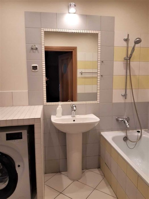 Do wynajęcia mieszkanie 40 mkw. na trzecim piętrze bez windy, z miejscem parkingowym w garażu podziemnym. Przytulna i cicha lokalizacja w Warszawie na Grochowie, przy ulicy Sztabowej. Wystawiam fakturę VAT. Możliwość wynajmu również na biuro. Mieszkanie typu studio składa się z dużego salonu z aneksem kuchennym i częścią sypialno-wypoczynkową, łazienki z WC i wanną, przedpokoju z dużą szafą wnękową, balkonu. Wykończone w wysokim standardzie, w pełni wyposażone w meble, wyposażenie kuchenne i urządzenia AGD. Domofon przy wejściu na klatkę schodową. Opłaty za wynajem miesięcznie: - czynsz najmu wraz z miejscem parkingowym w garażu 2400 zł, - opłata eksploatacyjna do spółdzielni mieszkaniowej ok. 900 zł ( w tym m.in. za wodę i CO, śmieci), - koszty mediów: prąd, gaz wg zużycia (średnio ok. 200 zł miesięcznie), - jednorazowa kaucja zwrotna w wysokości 3500 zł. Mieszkanie przytulne. Idealne dla singla, pary lub jako mieszkanie służbowe dla pracownika. Z balkonu widok na niską zabudowę okolicznych kamienic i domów jednorodzinnych. Na dalszym planie las rezerwatu Olszynka Grochowska. W odległości ok. 200 m. znajduje się stary park, kryte korty tenisowe, kompleks basenów z siłownią, szkoła podstawowa. Ok. 150 m. do pętli autobusowej przy Szaserów, ok. 250 m. do pętli tramwajowej na Gocławku, przystanków autobusowych oraz centrum handlowego z Castoramą i supermarketem Auchan. Wynajem bezpośredni, bez prowizji. Zapraszam serdecznie do kontaktu! Joanna, tel. 50*******01.