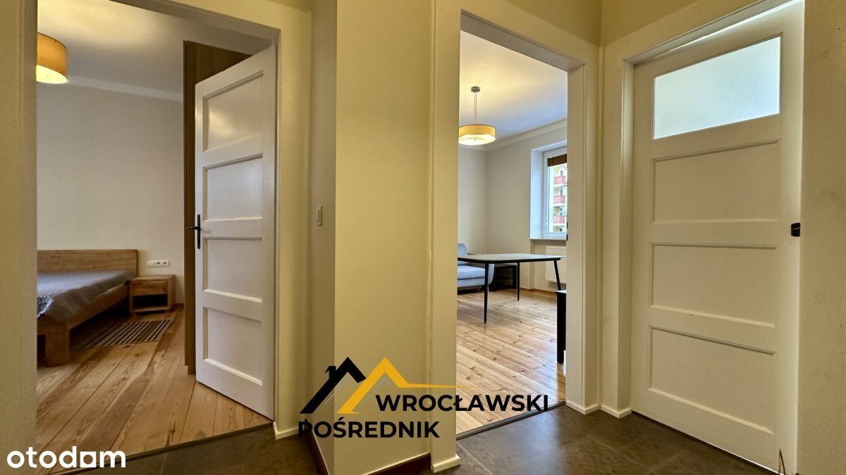 Do wynajęcia świeżo wyremontowane 2-pokojowe mieszkanie | Pierwszy najem | ul. ks. Konstantego Damrota - Śródmieście Wyobraź sobie, że jako pierwszy wchodzisz do mieszkania po generalnym remoncie - wszystko pachnie nowością, nikt wcześniej tu nie mieszkał, a Ty zaczynasz swoją codzienność od „czystej karty”. To idealna propozycja dla osób szukających komfortu, świetnej lokalizacji oraz wnętrza przygotowanego z dbałością o detale. Nieruchomość znajduje się w zadbanej kamienicy w samym sercu Śródmieścia, przy ul. ks. Konstantego Damrota - zaledwie kilka minut od Placu Grunwaldzkiego, terenów uczelni, komunikacji tramwajowej oraz pełnej infrastruktury usługowej. Powierzchnia: 47,41 m² Układ: 2 oddzielne pokoje + jasna, osobna kuchnia Piętro: 2/4 (budynek mieszkalny / kamienica) Dodatkowo: piwnica ok. 4 m² Stan: mieszkanie po generalnym remoncie - pierwszy najem Ogrzewanie: gazowe Umeblowanie: pełne Kuchnia: osobna, zamykana z oknem, kompletnie wyposażona w AGD Łazienka: po remoncie, wykończona w nowoczesnym standardzie Okna: PCV Ekspozycja: SALON (pólnocny-wschód) Sypialnia (Południowy Zachód) Czynsz najmu: 2 700 zł Opłaty dodatkowe: Czynsz administracyjny: 400 zł Prąd ok. 110 zł Gaz (ogrzewanie + ciepła woda): ok. 350 zł w sezonie grzewczym Kaucja: 3 500 zł Forma umowy: najem okazjonalny Dostępność: od zaraz Dla par, singla, osób pracujących, studentów wyższych lat, osób szukających spokojnego i świeżo wyremontowanego mieszkania w świetnym punkcie miasta. Wnętrze przygotowane tak, aby wprowadzić się „z walizką”. Piotr Buda Wrocławski Pośrednik tel.