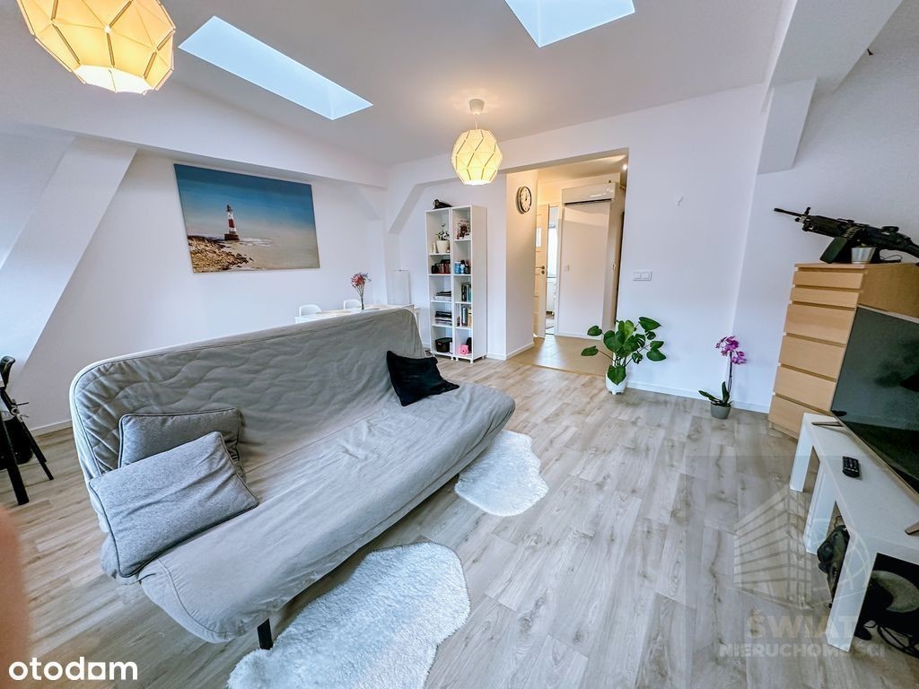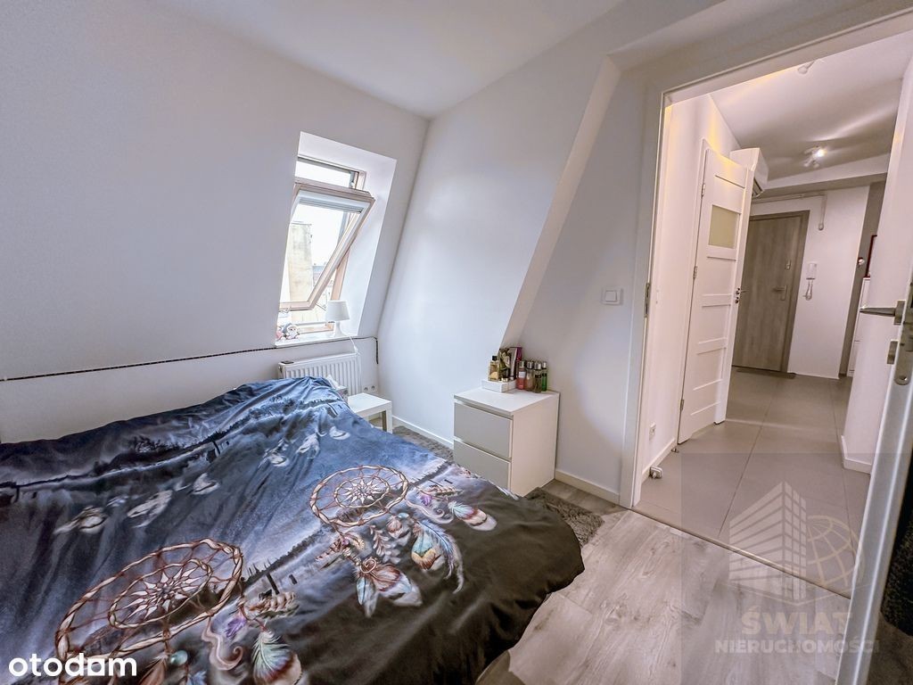 Na wynajem mieszkanie o pow. 49.34 m2 na poddaszu w kamienicy z 1903 roku, w którego skład wchodzą: - pokój pełniący rolę salonu - pokój sypialnia - kuchnia z oknem - łazienka z oknem - przedpokój Mieszkanie powstało w 2018 roku podczas kompletnej modernizacji poddasza, wszystkie instalacje są nowe. W lokalu mamy duży jasny salon - okna z widokiem na ulicę, oraz sypialnia - okna połaciowe. Budynek został docieplony, okna od strony ulicy wykonane z PCV, od strony podwórka (kuchnia i łazienka) połaciowe. Mieszkanie jest w pełni umeblowane, z bardzo niskim czynszem 483zł (w tym fundusz remontowy) ogrzewane piecem gazowym. Rachunki płatne dodatkowo. Kuchnia to oddzielne pomieszczenie z oknem, łazienka również z oknem posiada kabinę prysznicową, umywalkę i toaletę. W mieszkaniu została zamontowana klimatyzacja, jest bardzo ciepłe zimą i doskonale schłodzone latem. W pobliżu galeria handlowa Turzyn, liczne sklepy, szkoły, banki, pełna infrastruktura miejska. Przystanki tramwajowe i autobusowe. Do centrum miasta tylko kilka minut jazdy tramwajem. Zapraszam do prezentacji mieszkania. Tworzymy Twój Świat Nieruchomości - bezpiecznie i skutecznie.
