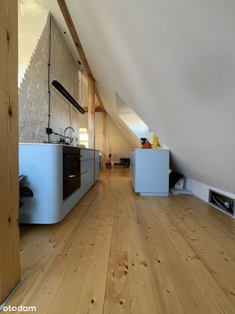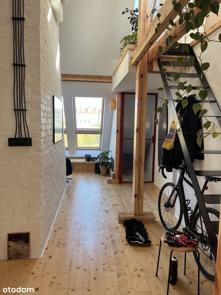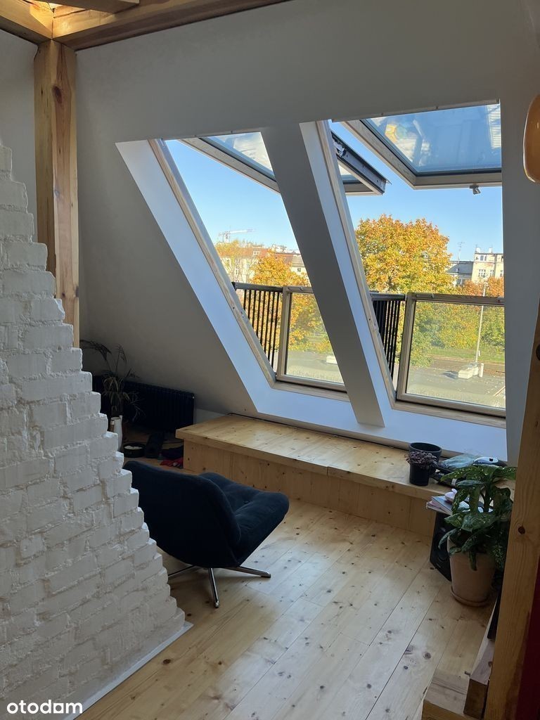 Na wynajem adaptacja strychu, świeżo po remoncie. Mieszkanie o powierzchni 70 m² po podłodze, dwupoziomowe, położone przy Pl. Staszica. na wrocławskim Nadodrzu. Cena: 3900 PLN (w tym czynsz] + prąd, gaz, internet.