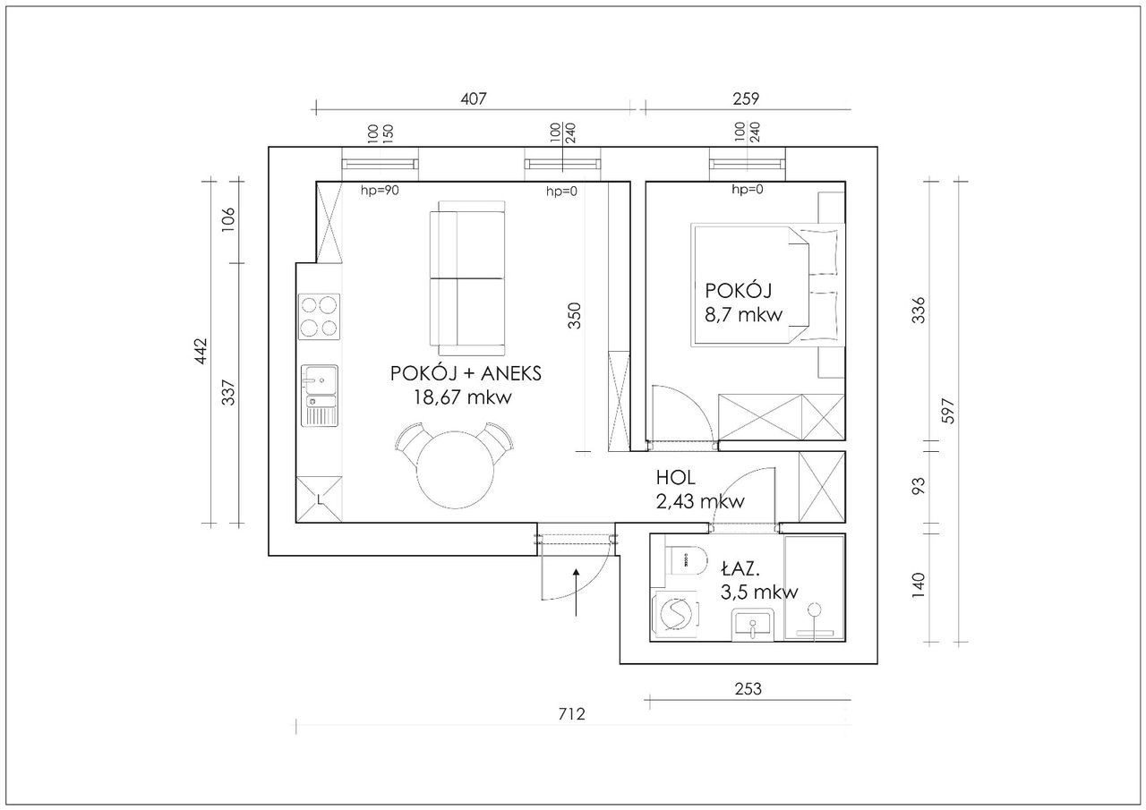 Perełka inwestycyjna w centrum Grodziska Mazowieckiego, mieszkanie 33,36 m², niska cena Przedstawiam Państwu wyjątkową ofertę sprzedaży lokalu mieszkalnego który składa się z sypialni, salonu z aneksem kuchennym, łazienki oraz korytarza. Znajduje się na 2, ostatnim piętrze w kameralnej inwestycji w której usytuowane jest zaledwie 15 lokali. Mieszkanie w stanie deweloperskim, dzięki czemu mogą Państwo urządzić je z własnym pomysłem. Dzięki dużym oknom mieszkanie jest wspaniale doświetlone. Wysokość pomieszczeń to 2,80 cm co zapewnia dodatkowe poczucie przestrzeni. Bardzo niski czynsz- 333 zł. Mieszkanie posiada bardzo funkcjonalny rozkład, co jest jego kolejnym atutem. W cenie mieszkania projekt wykończenia lokalu gratis.