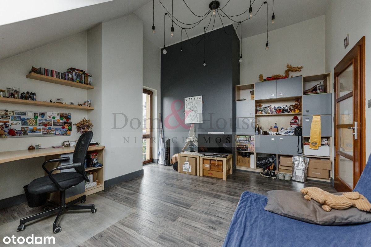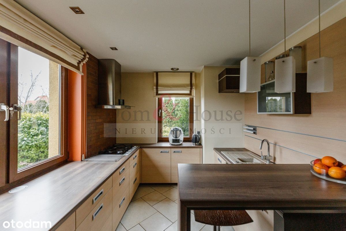 Dom w spokojnej okolicy zaprojektowany według indywidualnego projektu w pełni wykorzystującego walory działki. Jeśli cenisz ciszę i walory przyrody tutaj to znajdziesz. Dom posiada piękny, zadbany ogród od południa zapewniający intymność, gdyż jest osłonięty od działek sąsiednich. Dom jest na końcu wewnętrznej, ślepej drogi. Prosta, tradycyjna bryła, wewnątrz sporo otwartej przestrzeni dającej wrażenie przestrzenności. Wszystkie pomieszczenia w budynku są przestronne i ustawne. W łazienkach wykorzystano płytki włoskie, wszystkie drzwi wewnętrzne fornirowane naturalnym drewnem. W salonie drewno egzotyczne na podłodze, taras wyłożony również drewnem egzotycznym. Budynek posiada dwustanowiskowy garaż oraz kotłownie z piecem na gaz z sieci miejskiej. Obecnie dom zasilany jest z indywidualnego ujęcia wody, istnieje jednak możliwość do podłączenia wody z sieci miejskiej (przyłącze na terenie działki). Podjazd do garażu wyłożony z kostki betonowej, dojście do domu wyłożone kostką granitową. Działka ogrodzona murowanym płotem z metalowymi przęsłami. Automatyczna brama na posesję oraz brama garażowa. - salon z wyjściem na drewniany taras i ogród (31,4 m2) - kuchnia z oknem otwarta częściowo na salon (11 m2) - gabinet - pokój gościnny (15,6 m2) - łazienka z prysznicem (3,1 m2) - wiatrołap (5 m2) - garaż na dwa samochody (33 m2) - kotłownia (7,8 m2) - sypialnia główna (23,2 m2) - 2 pokoje (12,9 m2 i 12,8 m2) - garderoba (8,2 m2) - pralnia/suszarnia (3,7 m2) - łazienka z wanną i prysznicem (12,1 m2) - hall z wyjściem na balkon (18,4 m2) - nieużytkowe, idealne do przechowywania rzeczy rzadko używanych. Nieruchomość położona na przedmieściach Gdyni, w Mostach. Szybki dojazd do Estakady oraz Obwodnicy Trójmiasta a zarazem Gdańska i Sopotu. Do centrum Gdyni zaledwie 20 min drogi samochodem. W sąsiedztwie sklep spożywczy, placówki przedszkolne oraz szkoła podstawowa, przystanek autobusowy. Na plażę w Mechelinkach zaledwie 2,5 km, niewiele dalej do Rewy. - bliskość morza - Mechelinek oraz Rewy oraz Gdynia Babie Doły oraz Bulwar Oksywski - piękny, zadbany ogród od strony południowej - dom wybudowany oraz wyposażony materiałami wysokiej jakości - dom na końcu ślepej, wewnętrznej drogi - Dom & House - Specjaliści od marzeń. - Gwarantujemy bezpieczeństwo transakcji - Znajdziemy najtańszy kredyt - Pomoc prawna dzięki współpracy z najlepszymi kancelariami notarialnym i prawnymi - Znajdziemy najtańsze ubezpieczenie nieruchomości Prezentowana oferta ma charakter informacyjny, nie stanowi oferty handlowej w rozumieniu Art. 66 par. 1 Kodeksu Cywilnego.