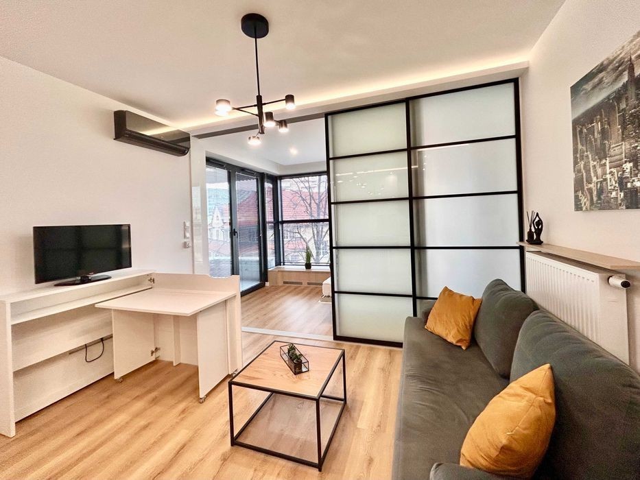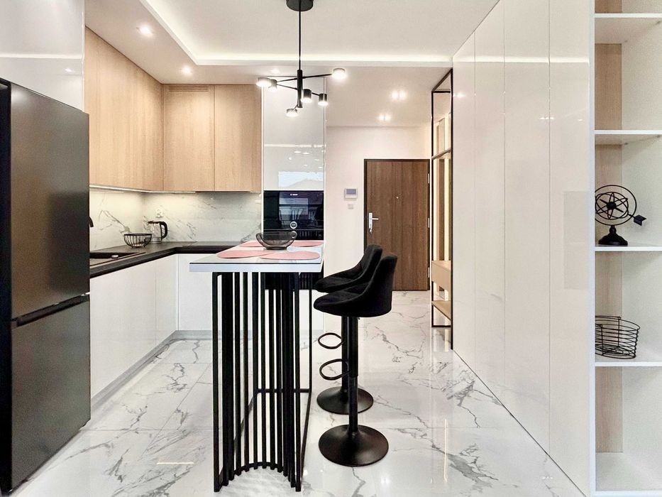 PL\UKR\RUS\ENG Ekskluzywne mieszkanie zlokalizowane na Wisłanych Tarasach. Nowoczesny design, wysoki poziom komfortu, panoramiczne okna. LOKALIZACJA: Mieszkanie znajduje się przy ul. Grzegórzeckiej. W prestiżowym osiedlu z całodobowym monitoringiem. W odległości 5 minut od przystanku autobusowego oraz tramwajowego. W okolicy znajdują się także punkty handlowo-usługowe, restauracje, kawiarnie, siłownie, kluby fitness, tereny spacerowe, bulwary wiślane, gabinety lekarskie i stomatologiczne. MIESZKANIE: Mieszkanie jednopokojowe z wydzieloną sypialnią, o powierzchni 40 m2 znajduje się na 3 piętrze i składa się z: - Salon: sofa, stolik kawowy, rozkładane biurko, TV, bardzo duża szafa. - Aneks kuchenny: lodówka, płyta grzewcza, piekarnik, mikrofalówka, zmywarka, barek i dwa hokery. - Sypialnia: łóżko podwójne rozkładane. - Łazienka: prysznic, pralka, WC, umywalka. - Balkon CENA: • 3 500 PLN - czynsz najmu • 750 PLN - czynsz administracyjny • prąd - wg zużycia • 300 PLN - miejsce parkingowe w garażu podziemnym • 3 500 PLN - kaucja zwrotna BRAK PROWIZJI