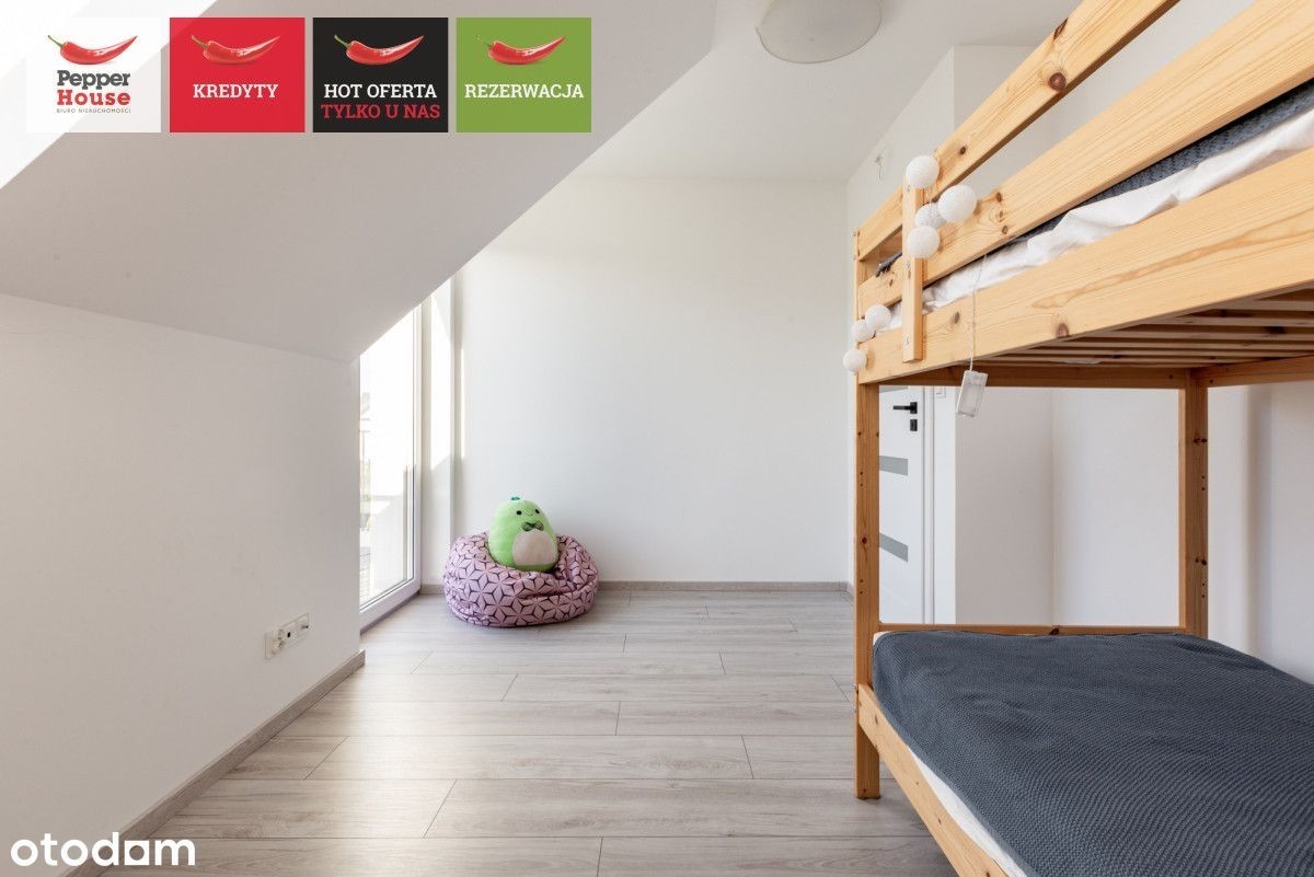 Tylko w Pepper House! Dom położony w spokojnym Osiedlu Bursztynowym w Pierwoszynie, zaledwie kilka minut od morza. Kameralne otoczenie z niską zabudową zapewnia prywatność i ciszę, a ogród od strony zachodniej pozwala cieszyć się popołudniowym słońcem. To idealne miejsce dla osób szukających codziennego spokoju, kontaktu z naturą i wygody życia w nadmorskiej miejscowości. • Segment środkowy w zabudowie szeregowej, powierzchnia 92,54 m², z poddaszem i własnym ogrodem. • Ekspozycja wschód-zachód, z ogrodem od strony zachodniej - światło od świtu do zachodu. • 2 miejsca postojowe naziemne przed budynkiem - wygodnie i pod samym wejściem. • Stan deweloperski dotyczy wyłącznie łazienki na piętrze - reszta gotowa do aranżacji według Twojego stylu. • Parter (49,1 m²) : wiatrołap, kuchnia, salon z jadalnią i wyjściem do ogrodu, pokój (idealny gabinet lub pokój gościnny), przedpokój, praktyczny schowek, łazienka. • Piętro (43,4 m²) : trzy pokoje (w tym jedna sypialnia z możliwością wydzielenia garderoby), łazienka w stanie deweloperskim, przedpokój. • Poddasze: funkcjonalna przestrzeń do przechowywania (sezonowe rzeczy, sprzęt domowy). • Pierwoszyno, gmina Kosakowo - cicha, bezpieczna okolica z niską zabudową i pełnym nadmorskim urokiem. • Zaledwie 15 minut spacerem na piaszczystą plażę - wygodna, zielona trasa idealna na codzienne spacery. • W pobliżu tereny chronione i rezerwat przyrody - świeże powietrze, ścieżki spacerowe i kontakt z naturą na co dzień. • Własny dom nad morzem z prywatnym ogrodem i pełną swobodą życia. • Funkcjonalny układ: dodatkowy pokój na parterze, trzy sypialnie na piętrze i poddasze na przechowywanie. • Słońce przez cały dzień dzięki ekspozycji wschód-zachód; ogród świetny na popołudniowy relaks. Opłaty eksploatacyjne wraz z mediami kształtują się na poziomie 800 miesięcznie zimą oraz 400 zł latem. Ogłoszenie ma charakter wyłącznie informacyjny i nie stanowi oferty handlowej w rozumieniu Kodeksu Cywilnego.