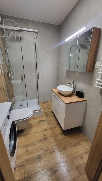 BEZ POŚREDNIKÓW Do wynajęcia funkcjonalne mieszkanie o powierzchni 37 m2 w nowo wybudowanym budynku przy ulicy Malborskiej 29. Doskonale skomunikowane - przystanek autobusowy (linie: 144, 169, 173, 469, 904) znajduje się bezpośrednio przed budynkiem, a przystanek tramwajowy (linie: ********* jest oddalony o zaledwie 4 minuty pieszo. Mieszkanie: Mieszkanie składa się z sypialni, salonu połączonego z kuchnią, łazienki, przedpokoju oraz dwóch balkonów. Jest w pełni wyposażone w niezbędny sprzęt RTV/AGD, takie jak telewizor, pralka, zmywarka, płyta indukcyjna, piekarnik, i lodówka. Istnieje możliwość wynajęcia garażu w tym samym budynku. Location: For rent, a functional apartment with an area of 37 m2 in a newly constructed building on Malborska Street 29. Well-connected - the bus stop (lines: 144, 169, 173, 469, 904) is right in front of the building, and the tram stop (lines: ********* is only a 4-minute walk away. Apartment: The apartment consists of a bedroom, a living room connected to the kitchen, a bathroom, a hallway, and two balconies. It comes fully equipped with essential appliances such as a washing machine, dishwasher, induction stove, oven with microwave, and refrigerator. There is a possibility to rent a garage in the same building. Do wynajęcia mieszkanie 2-pokojowe o powierzchni 37 m² 3 piętro w 4-piętrowym bloku z windą Dostępne do wynajęcia od zaraz Kraków, Podgórze Duchackie, ul. Malborska Balkon, garaż/miejsce parkingowe, aneks kuchenny Mieszkanie do zamieszkania Wyposażenie: telewizor, pralka, lodówka, piekarnik, zmywarka
