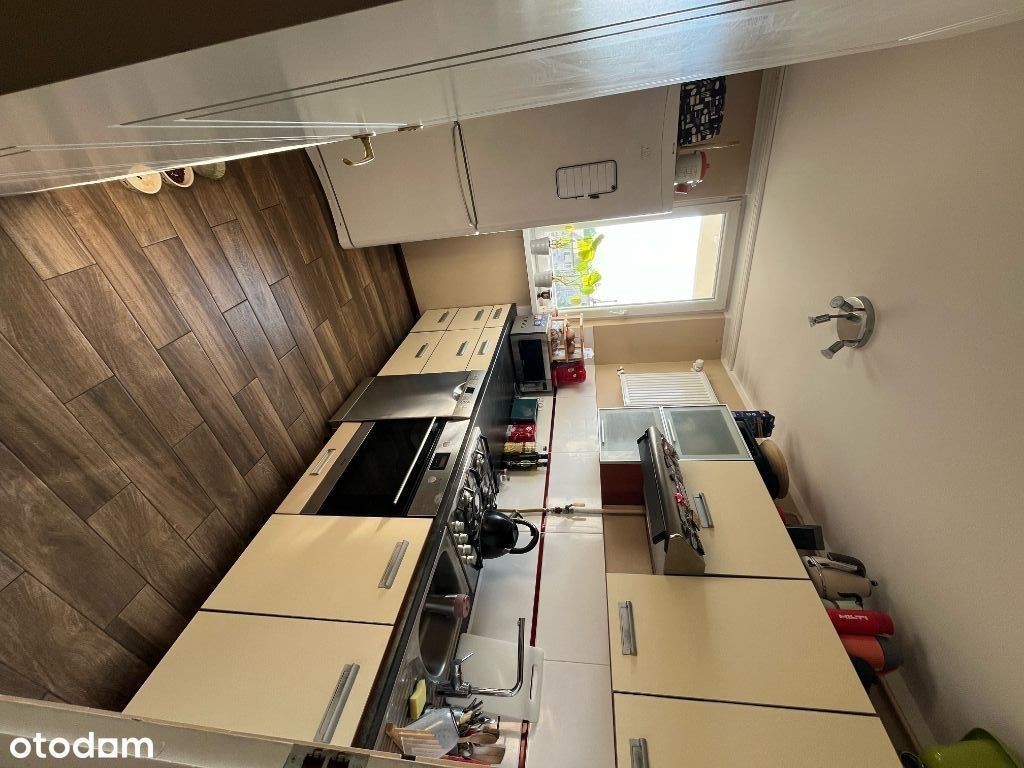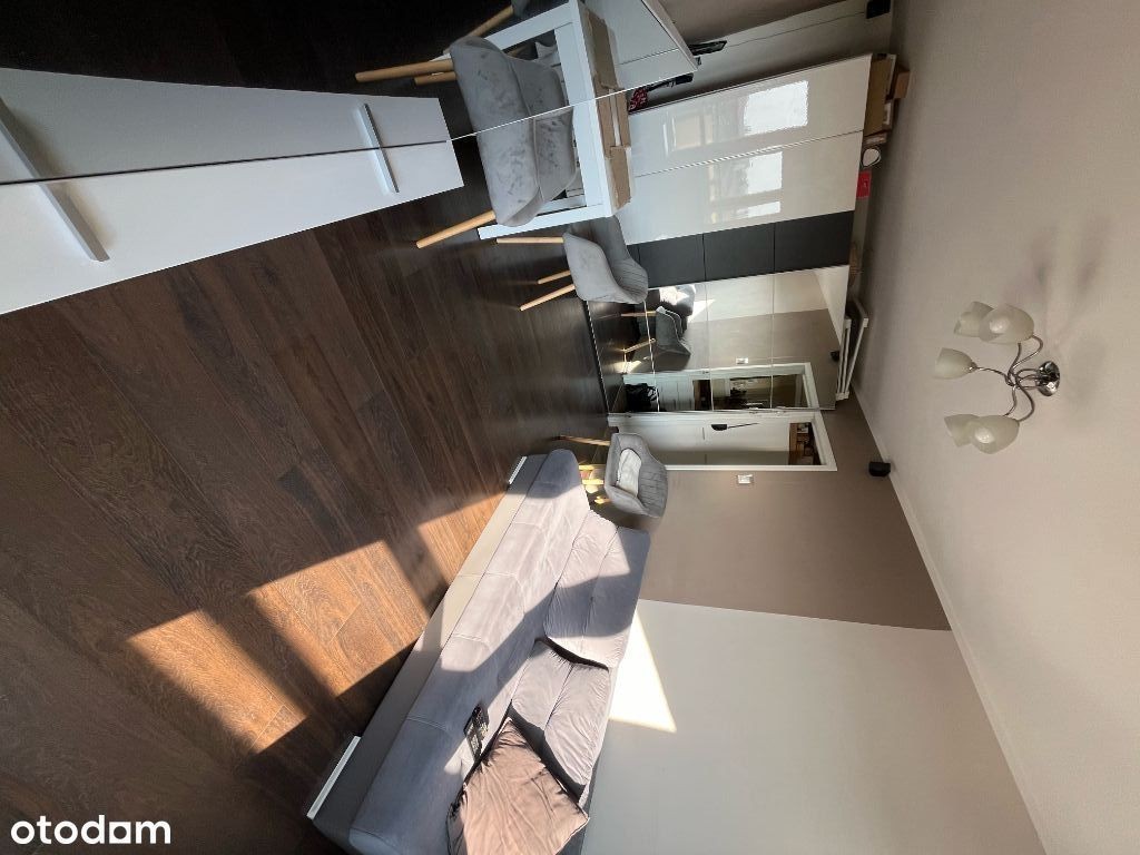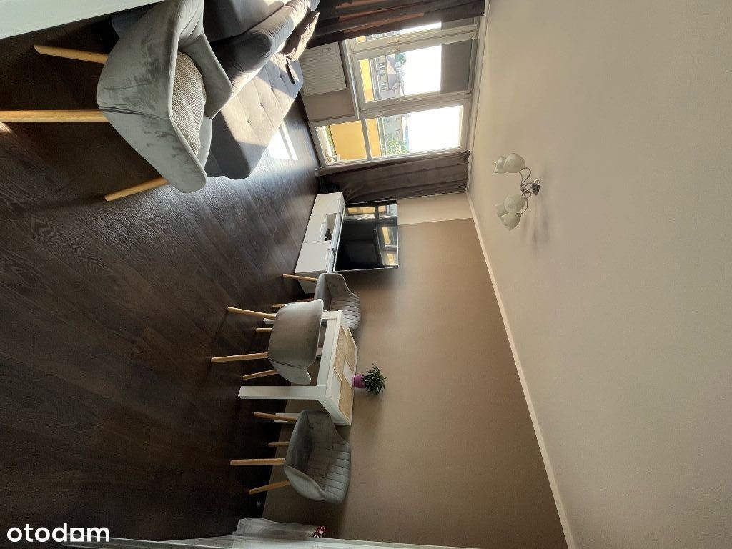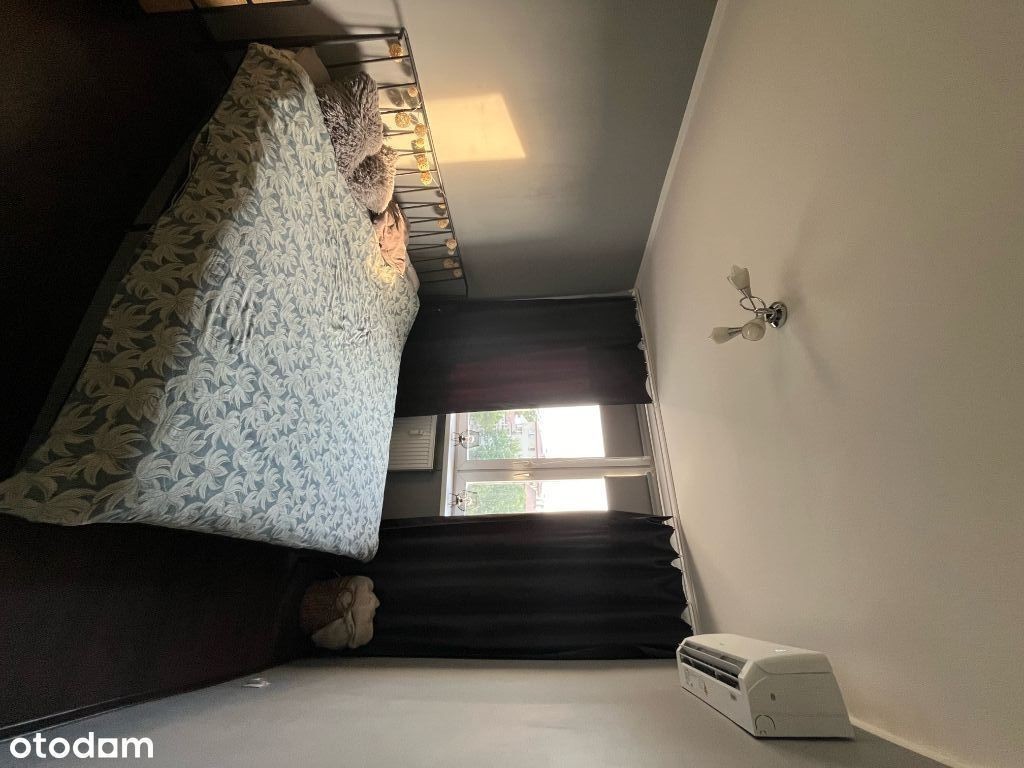 Słoneczne, dwupokojowe mieszkanie z oddzielną kuchnią od strony zachodniej, o powierzchni 43m2. Na wejściu do mieszkania znajduję się mały korytarz z którego wchodzimy bezpośrednio do łazienki, małego pokoju, kuchni oraz salonu. Kuchnia jest w pełni wyposażenia w sprzęty AGD (lodówka z zamrażalnikiem, zmywarka, kuchenka mikrofalowa, płyta gazowa). W łazience znajduję się wanna z deszczownicą, umywalka oraz pralka. W mniejszym pokoju zrobiona jest sypialnia, pomieszczenie posiada klimatyzację. Z salonu wychodzi się na balkon, znajduję się tam duża szafa, kanapa, stół wraz z krzesłami oraz komoda z TV.